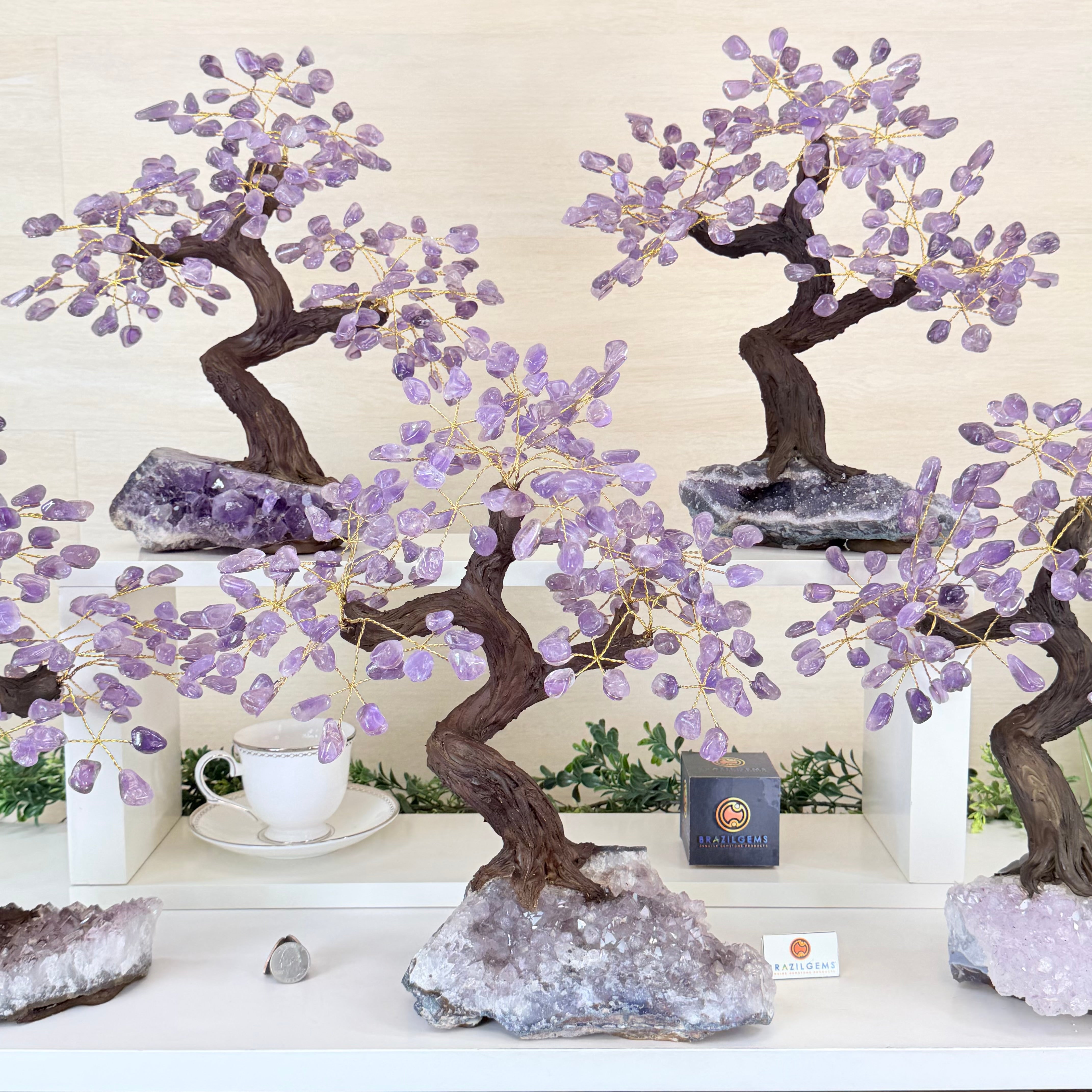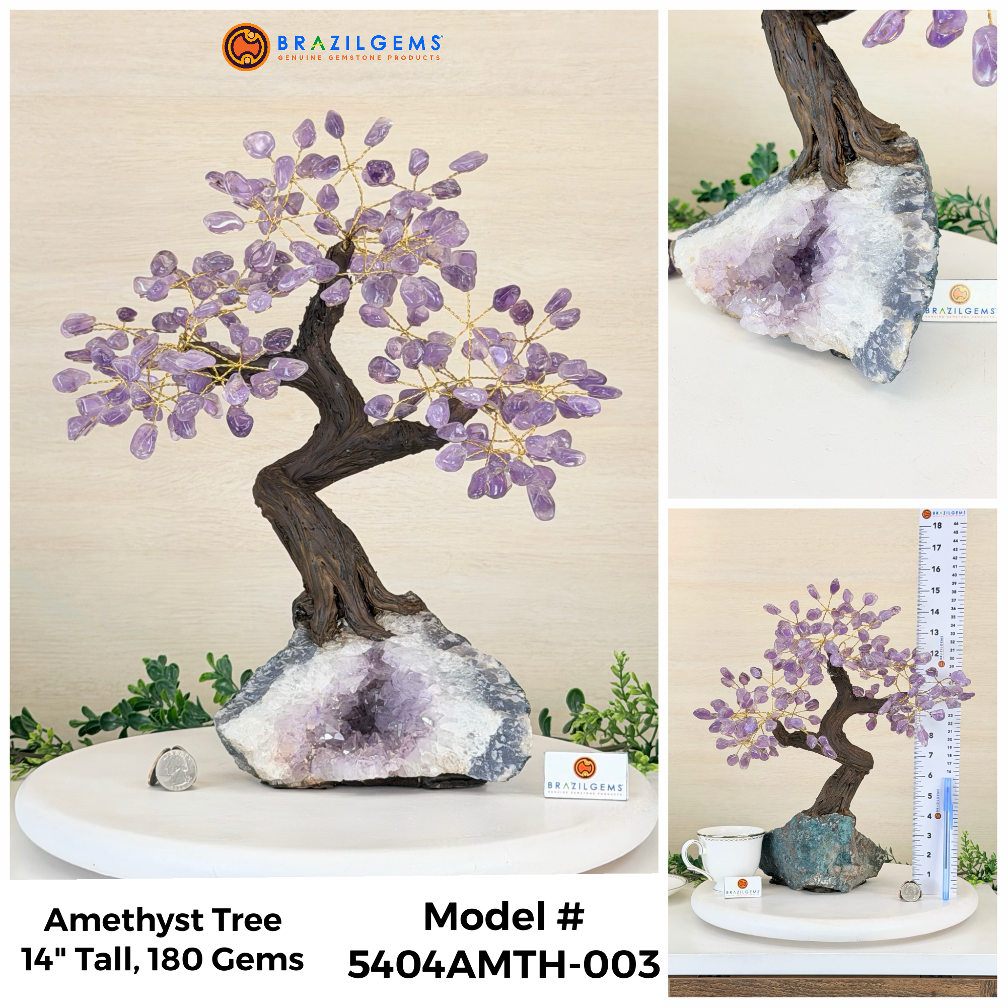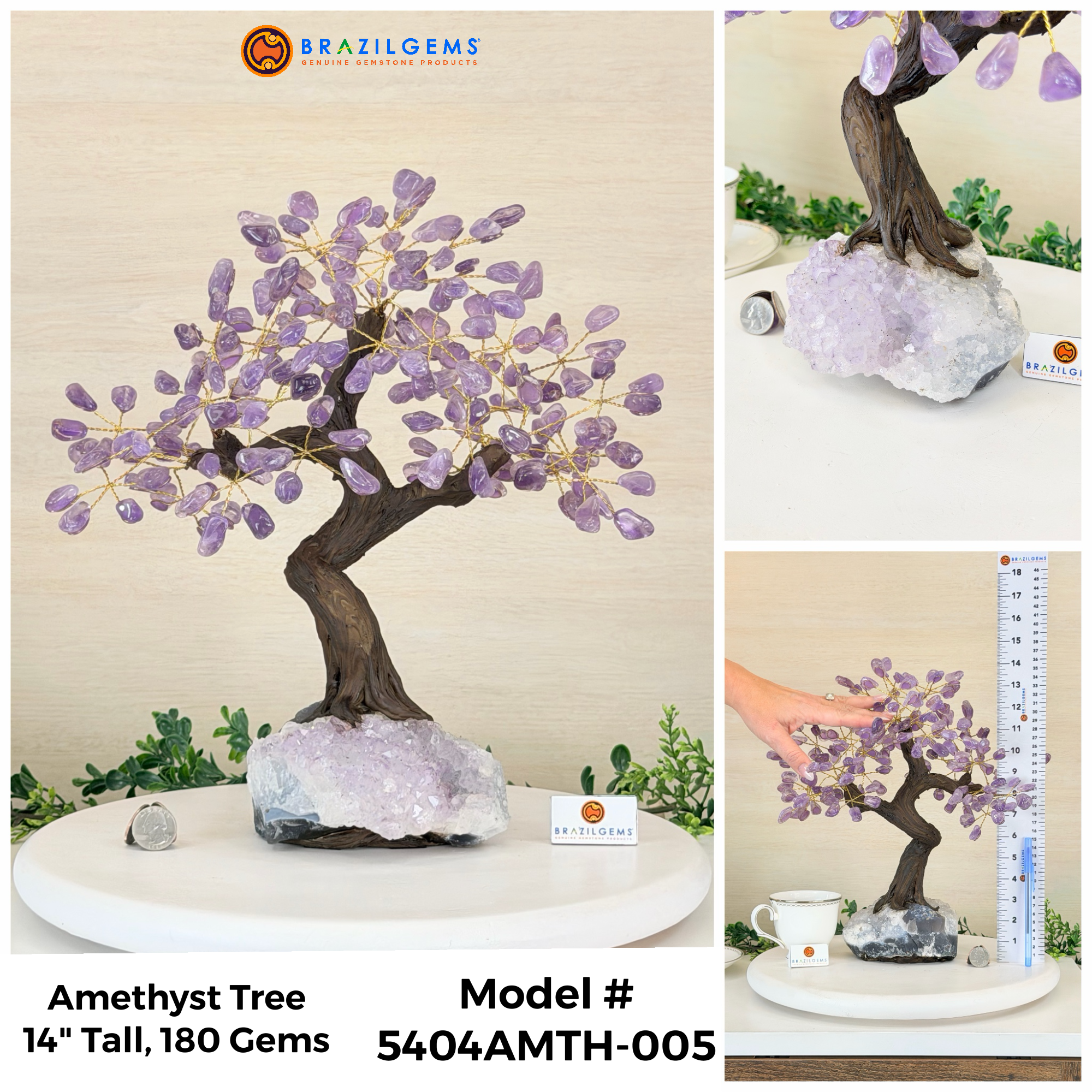 Handmade 14" Tall Gemstone Trees. They are a stunning testament to the natural beauty and artistic craftsmanship that defines Brazil Gems®.