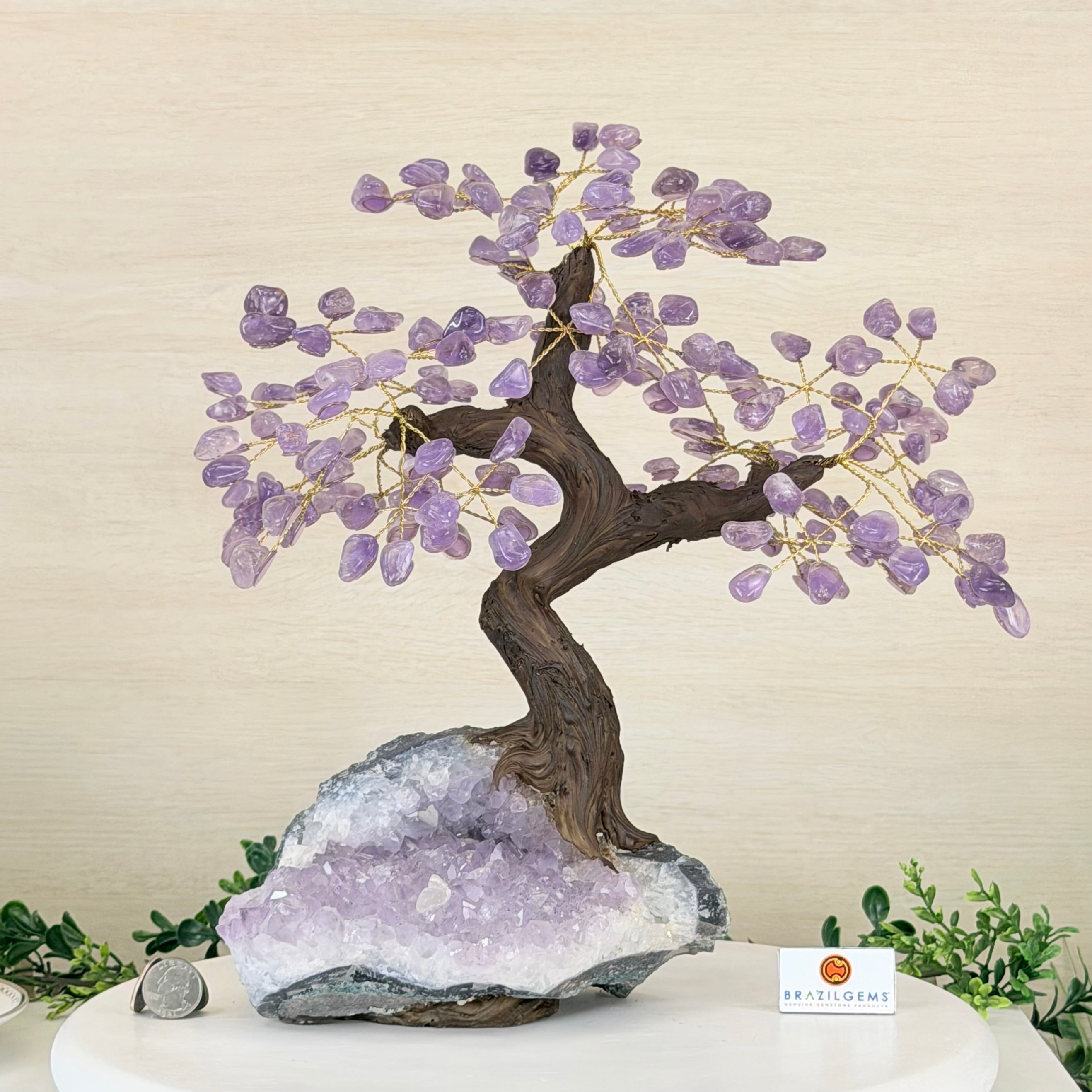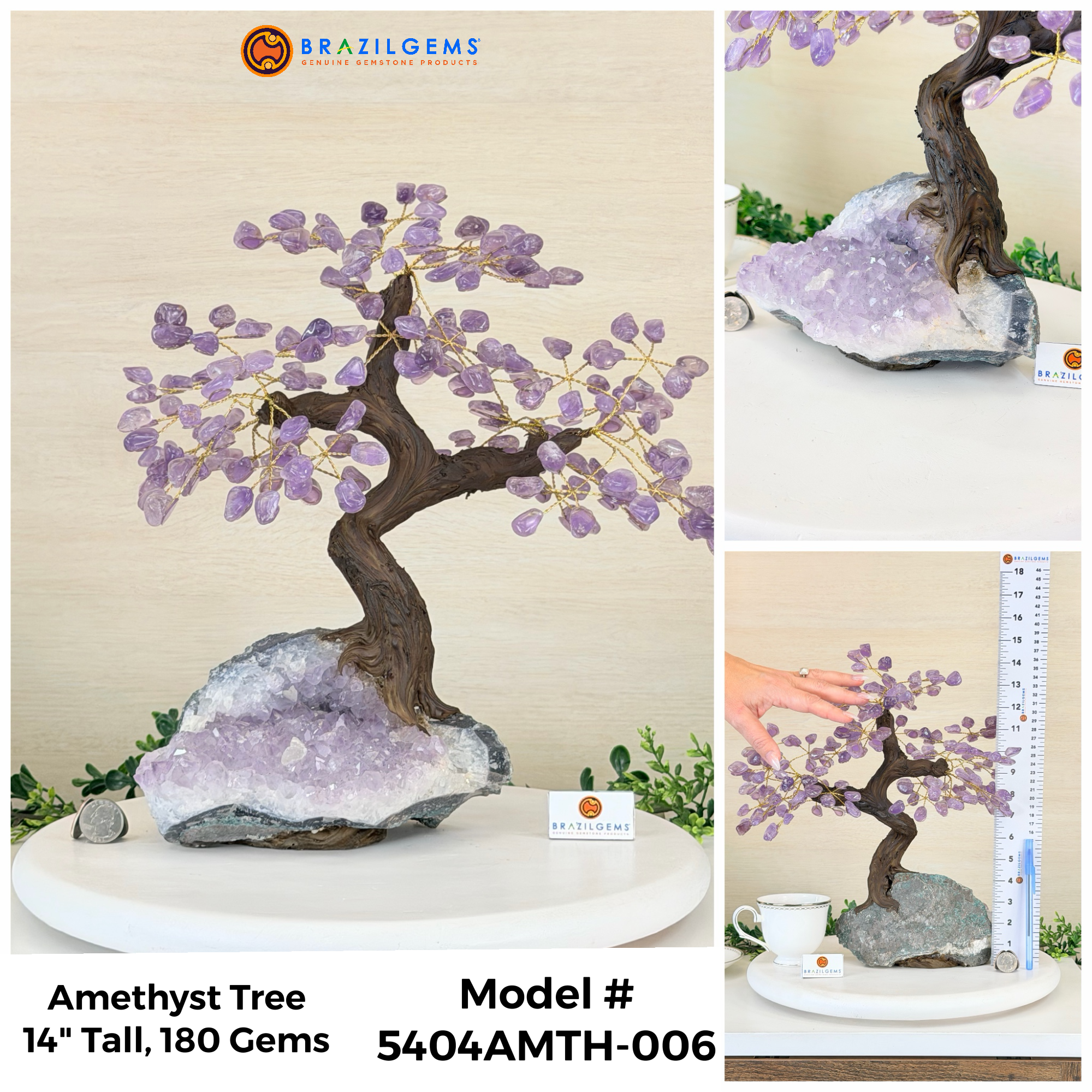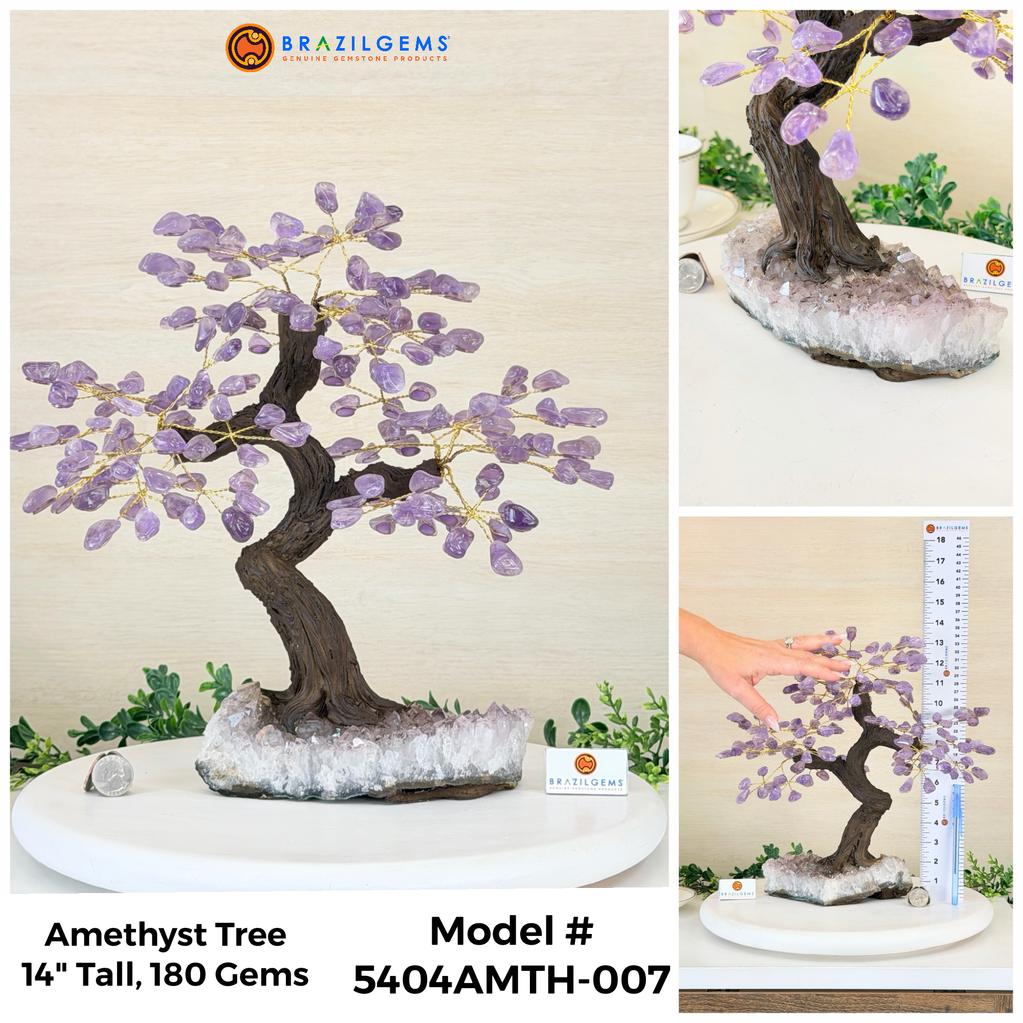 Handmade 14" Tall Gemstone Trees. They are a stunning testament to the natural beauty and artistic craftsmanship that defines Brazil Gems®.