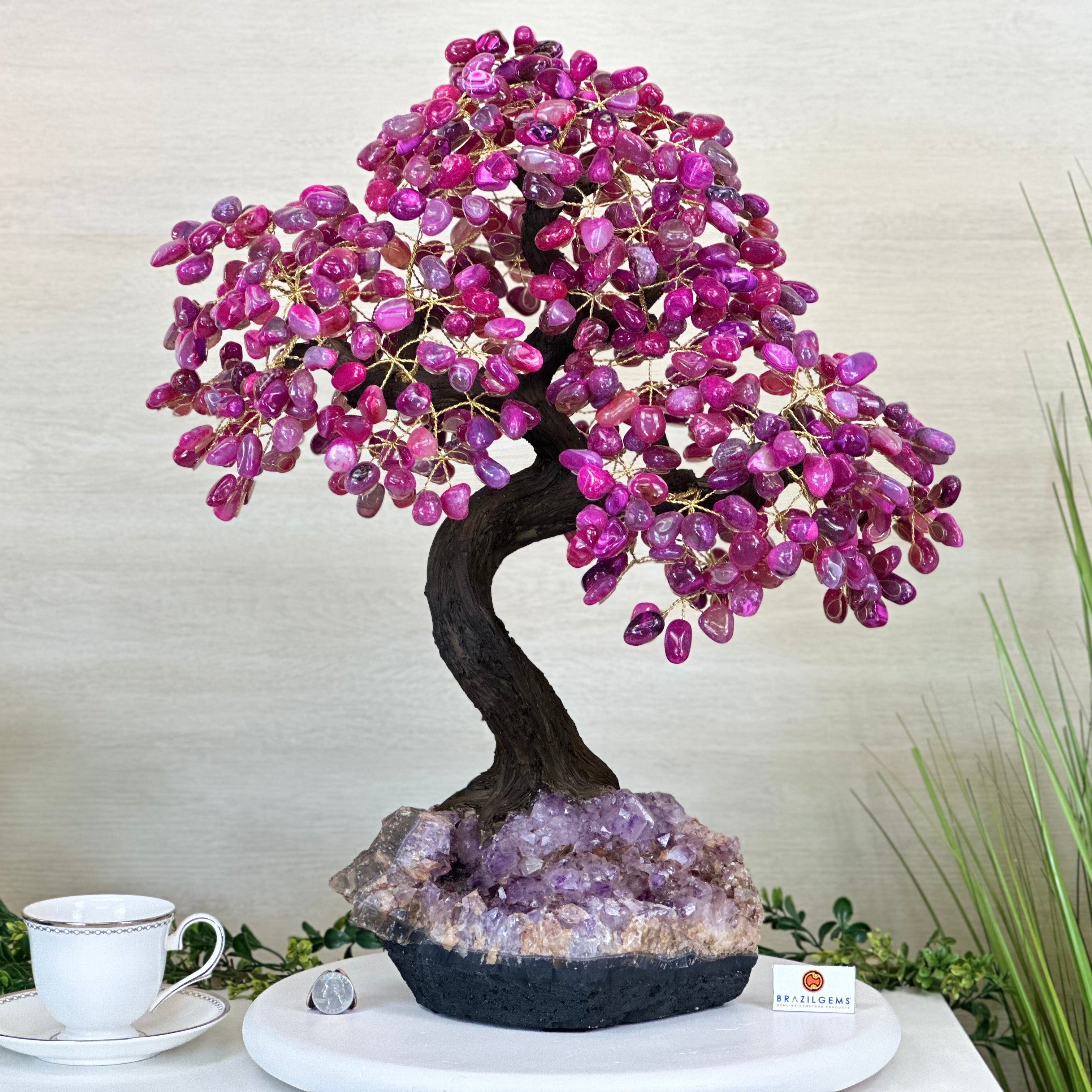 Handmade 20" Tall Gemstone Trees. They are a stunning testament to the natural beauty and artistic craftsmanship that defines Brazil Gems®.