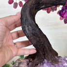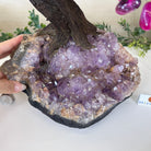 At approximately 22" tall to the top of its bark style branches this gemstone tree is both big and a design statement that will impact any room in your home or office. The amethyst clusters used as bases for this size of our gemstone trees are substantial gemstones on their own.