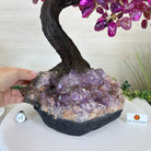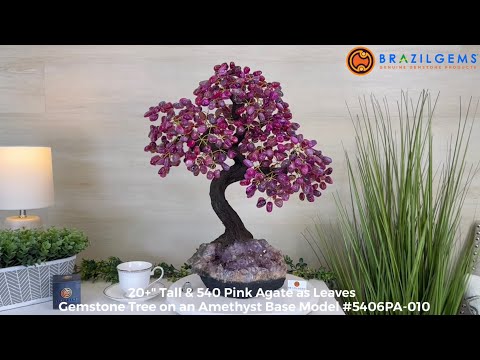 Disclaimer: This is a genuine gemstone handmade item sold by Brazil Gems® as is and as you see it in its images and video. It is the exact tree you will receive. The base may contain natural imperfections as well as imperfections, repairs and broken edges from the extraction, polishing, and prepping processes and the branches and leaf gemstones may contain imperfections as well. To allow for it to stand on its own the amethyst cluster base may have a small amount of cement added to the bottom then painted black. Pink Agate gemstones are dyed gemstones. At Brazil Gems® we make every effort to get measurements as exact as possible but they are done by human hands and eyes and therefore may have minor discrepancies.