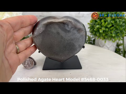 Polished Agate Heart Geode on a Metal Stand, 1.9 lbs & 4.5" Tall, Model #5468-0033 by Brazil Gems