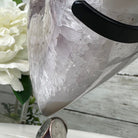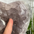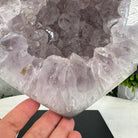 This is a polished Brazilian Agate Geode perfectly handcrafted into the shape of a Heart then placed on a black metal stand. With its polished edges, and natural crystals shining through you'll enjoy this piece for years to come.
