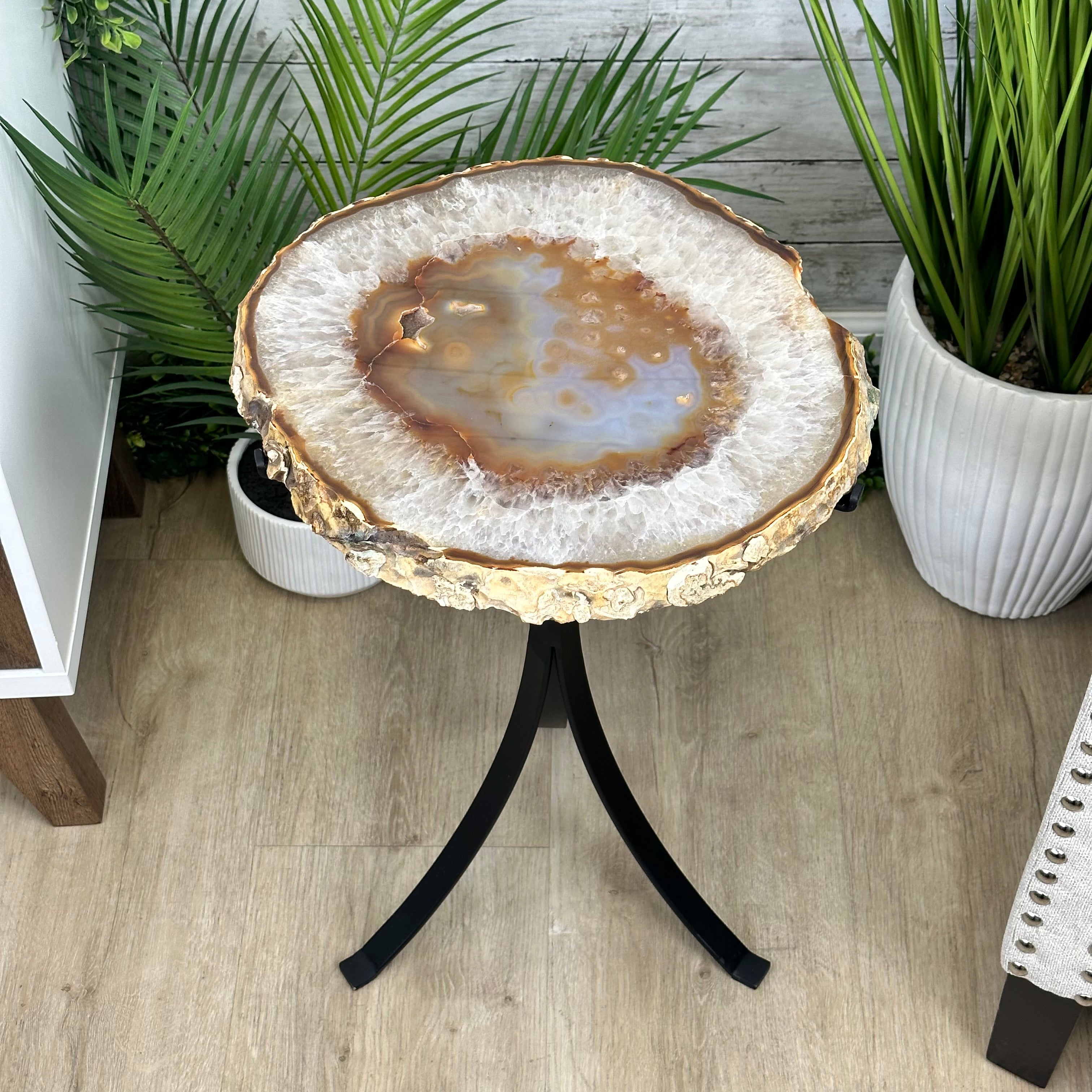 Brazil Gems® offers a vast selection of Natural Brazilian Agate Tables on metal bases set as side tables, coffee tables and dining tables.