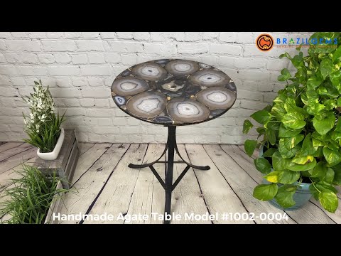 Handmade Natural Agate Round Side Table, black metal base, 22" diameter, 26" tall #1002-0004