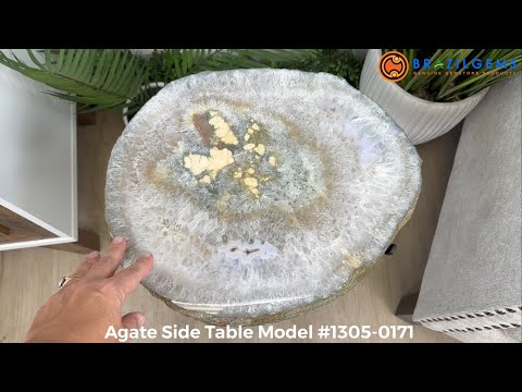 Large Natural Brazilian Agate side table w/ one slice of stone on a black metal base. Rough, natural edges complement its look. It can be used as a side table, corner table or accent table.