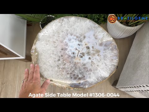 Large Natural Brazilian Agate side table w/ one slice of stone on a black metal base. Rough, natural edges complement its look. It can be used as a side table, corner table or accent table.