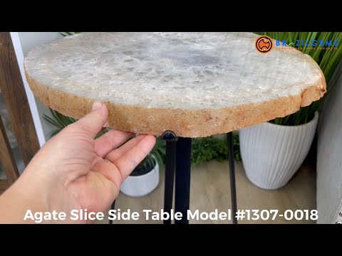 Large Natural Brazilian Agate side table w/ one slice of stone on a black metal base. Rough, natural edges complement its look. It can be used as a side table, corner table or accent table.