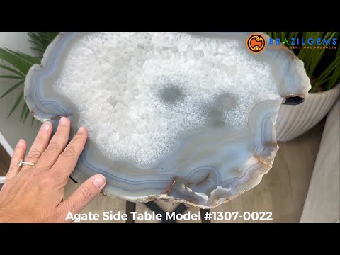 Large Natural Brazilian Agate side table w/ one slice of stone on a black metal base. Rough, natural edges complement its look. It can be used as a side table, corner table or accent table.