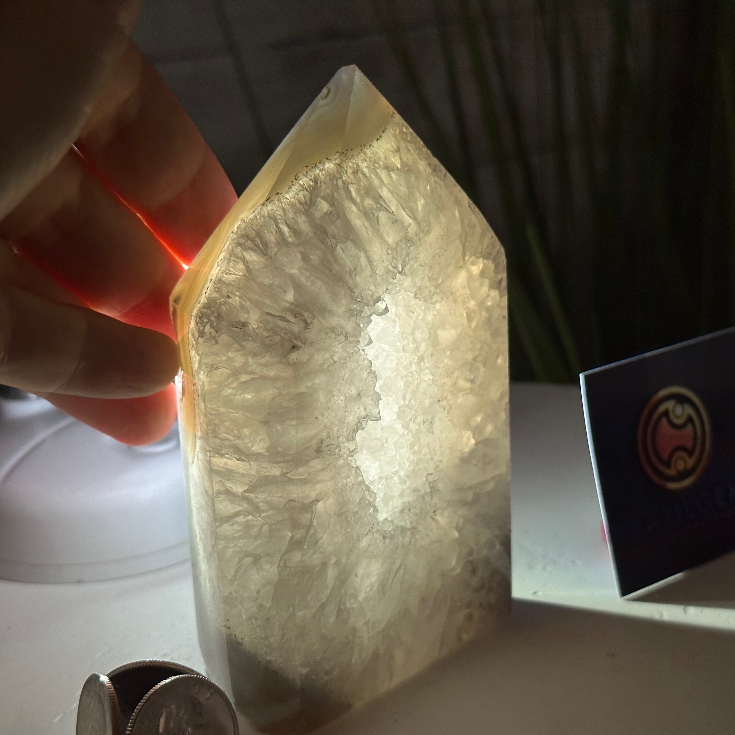 Our agate crystal slices offer a talisman for courage through times of sunshine and shadow. It offers protection and grounding energy, enhancing feelings of security. If you are in a season of worry or overthinking, agate can invite healing energy to your inner world. Agate is formed in the cavities of ancient volcanic rocks. After the rock cools, microcrystal fibers collect as water pools or passes through. The layers build up over time, with different colors reflecting differences in the water’s composition. The result is a colorful reminder of the power of strength built with time.