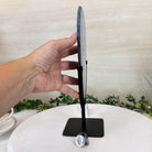 Brazilian Blue Agate Slice on a Metal Stand, 11.5" Tall #5055-0178