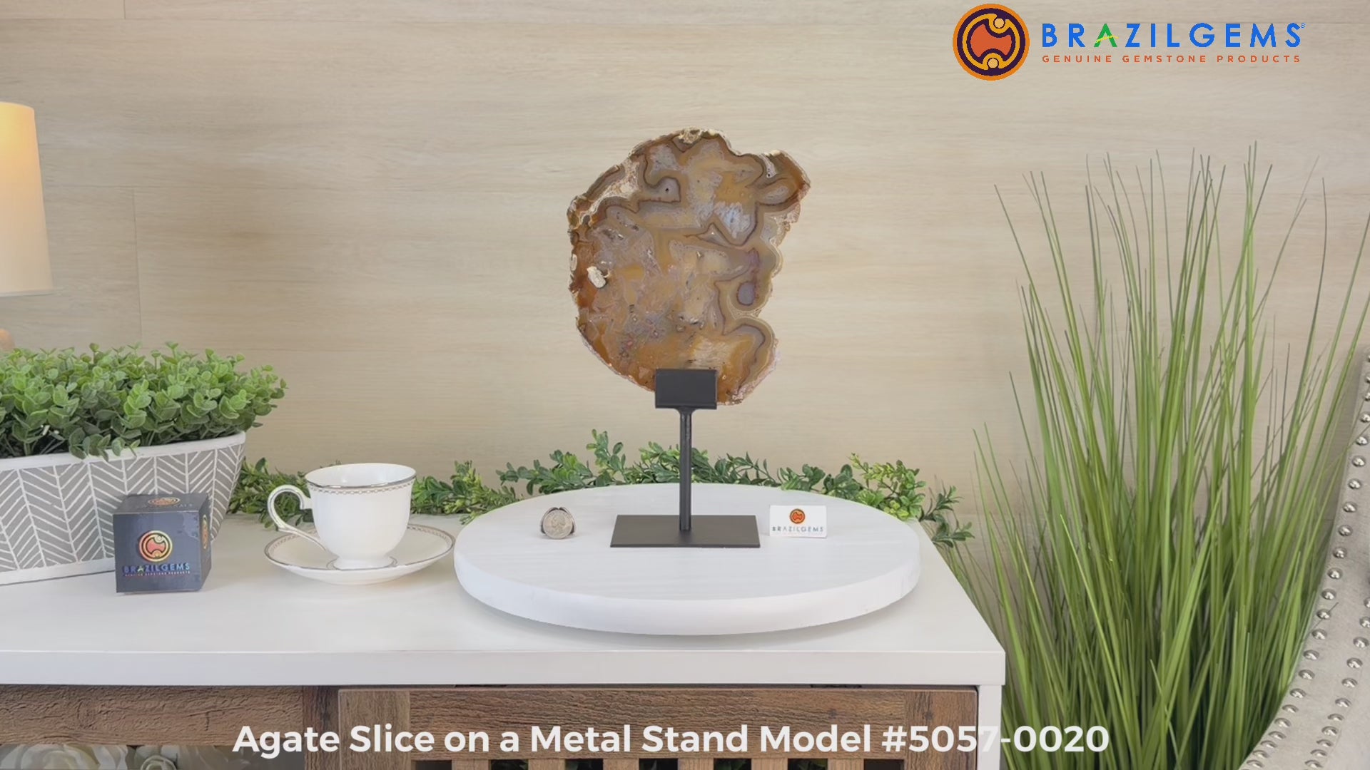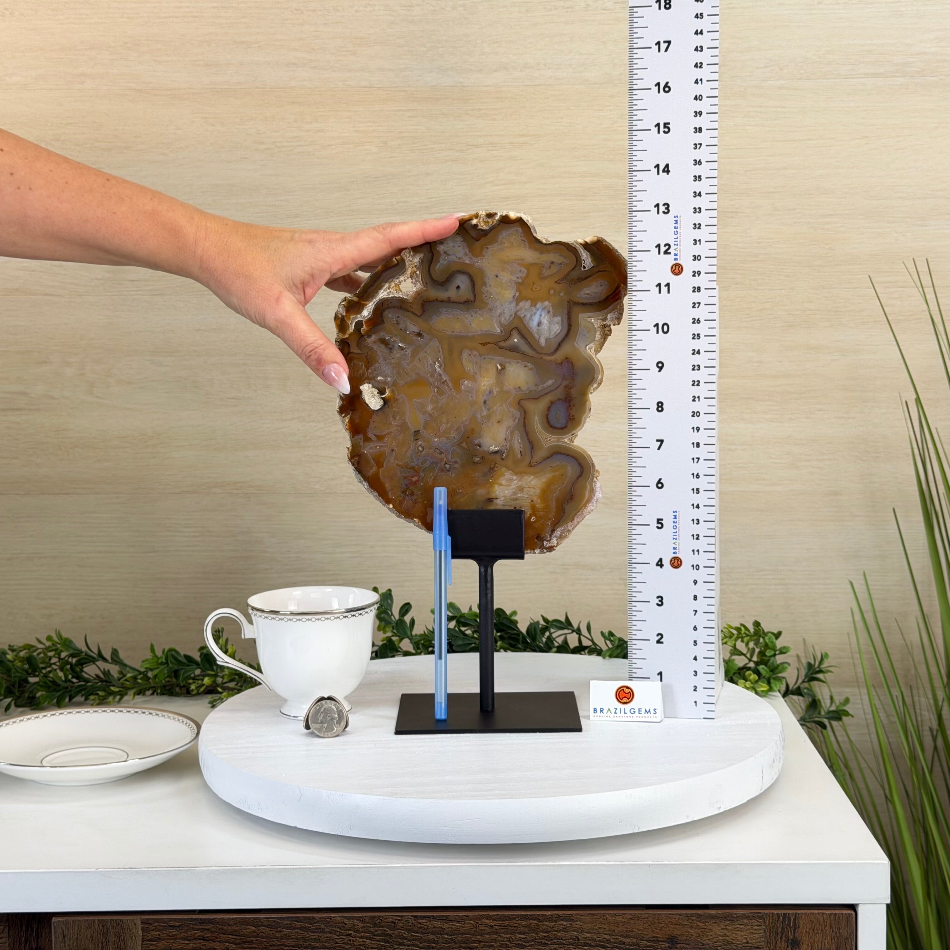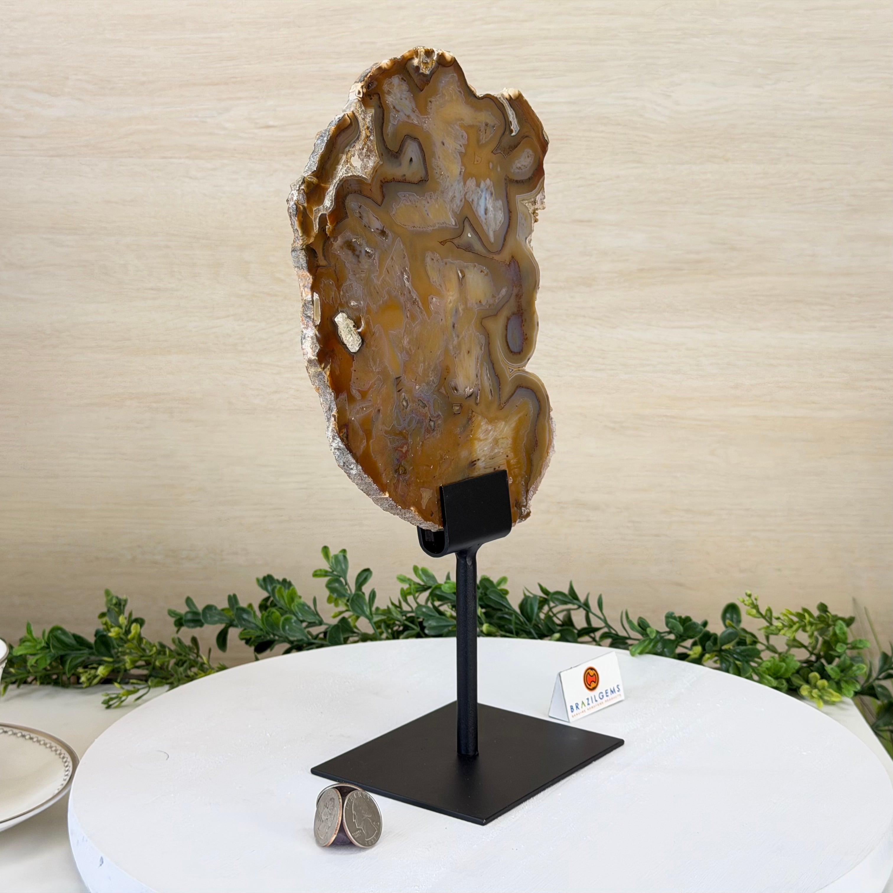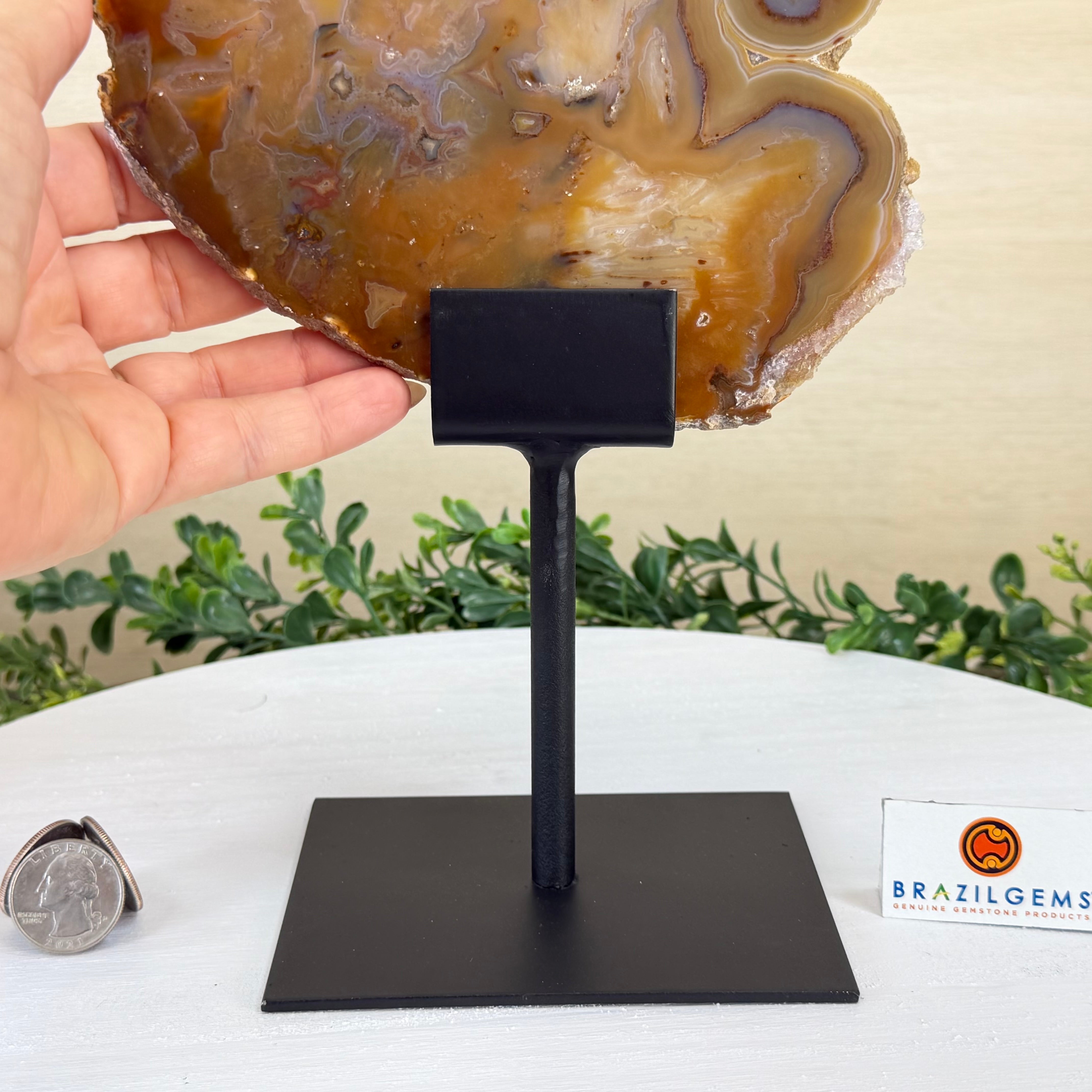 Natural Brazilian Agate Slice on metal base, 13.4" Tall #5057-0020