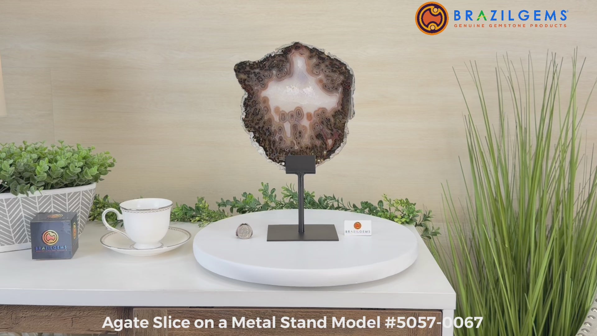 Natural Brazilian Agate Slice on metal base, 12.9" Tall #5057-0067