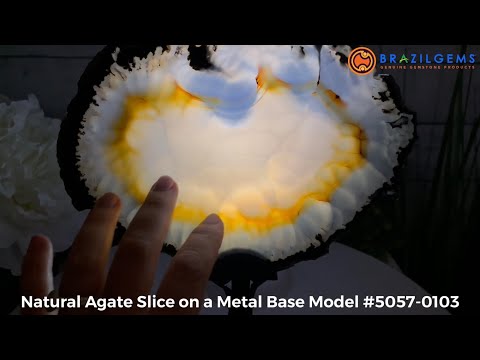 Natural Brazilian Agate Slice on metal base, 9.5" tall Model #5057-0103 by Brazil Gems