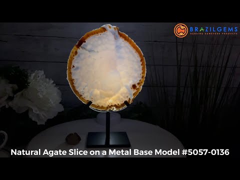 Natural Brazilian Agate Slice on metal base, 11" tall Model #5057-0136 by Brazil Gems