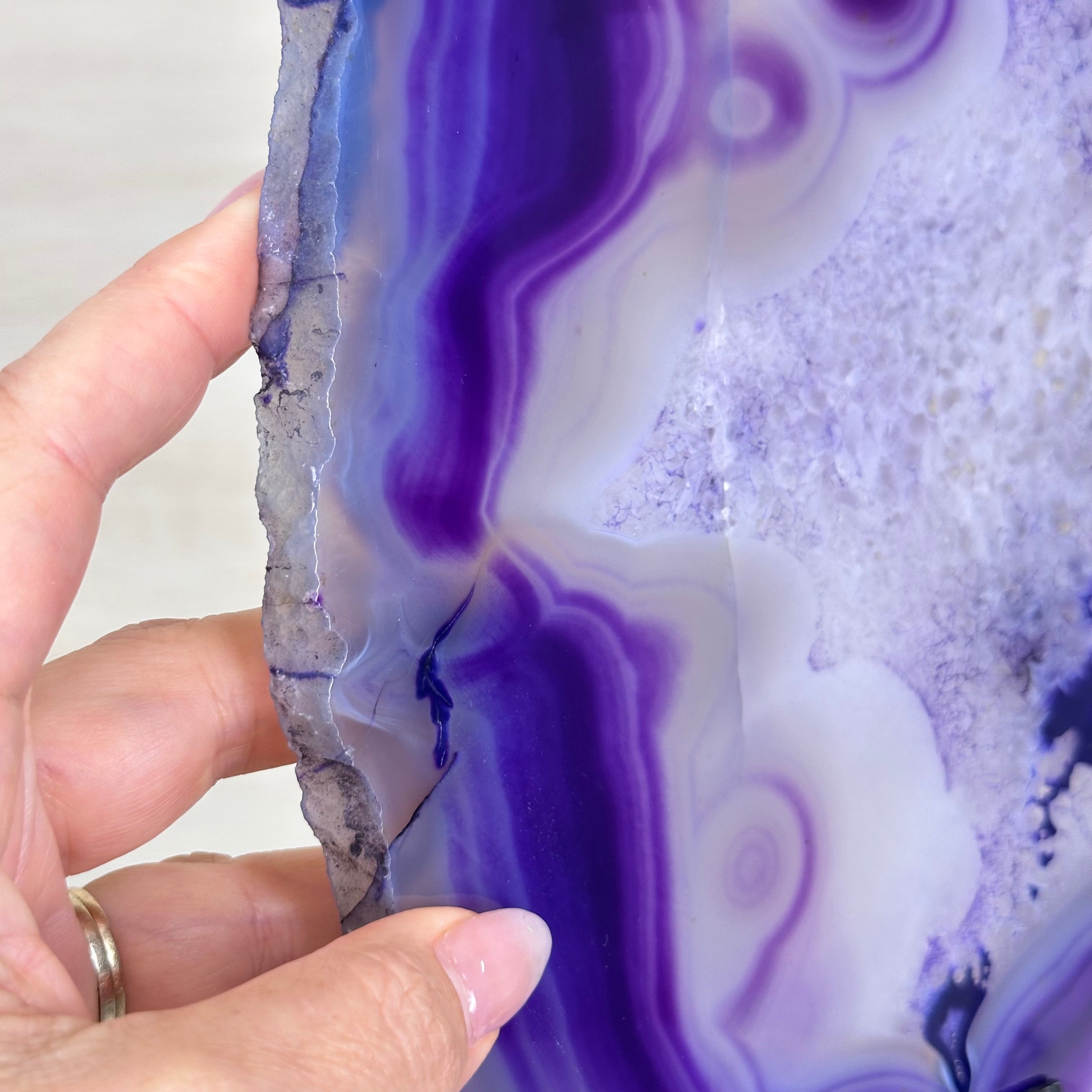Place this gemstone by a window or with a light behind it to see it really come to life. The translucent nature of agate is what makes it one of our favorite stones.