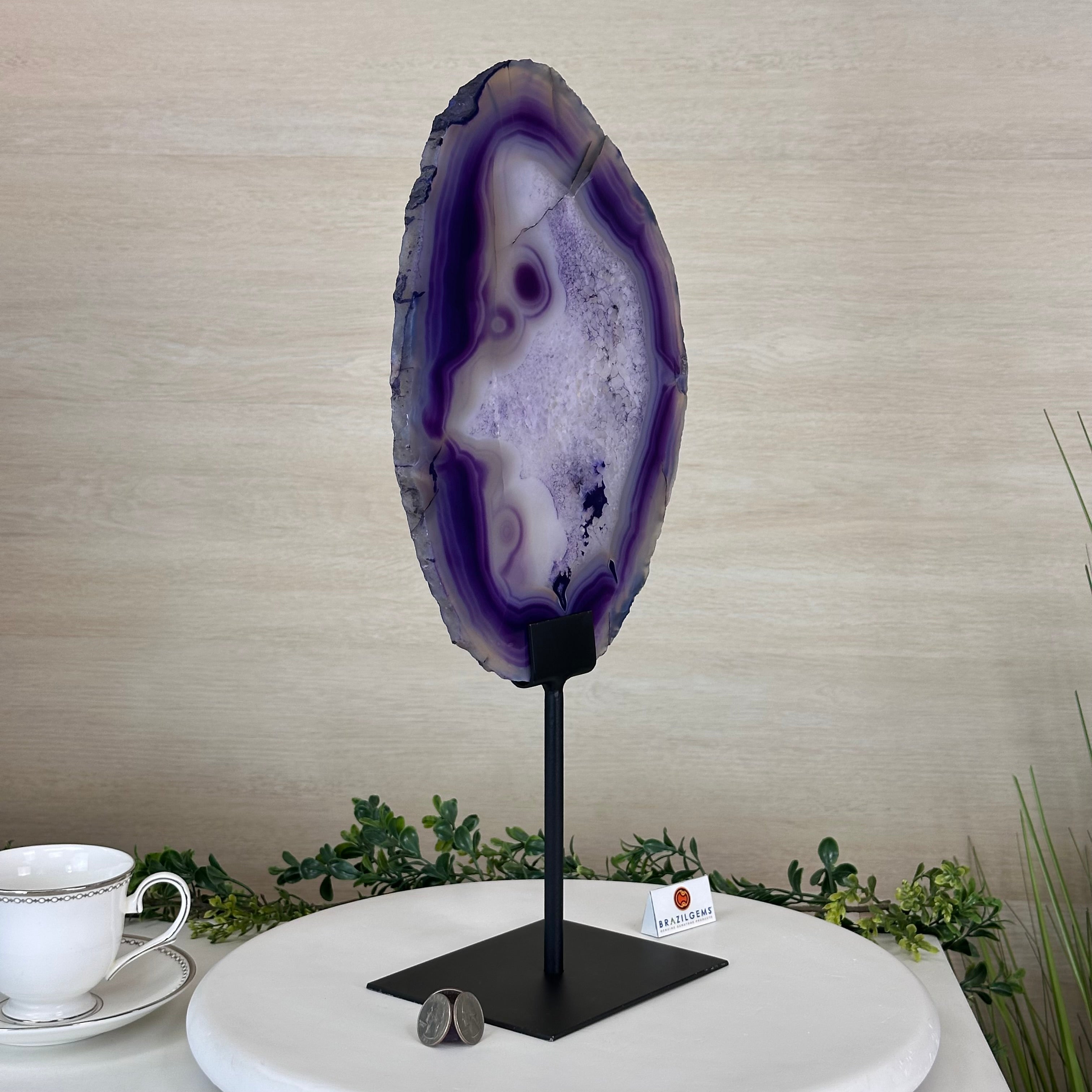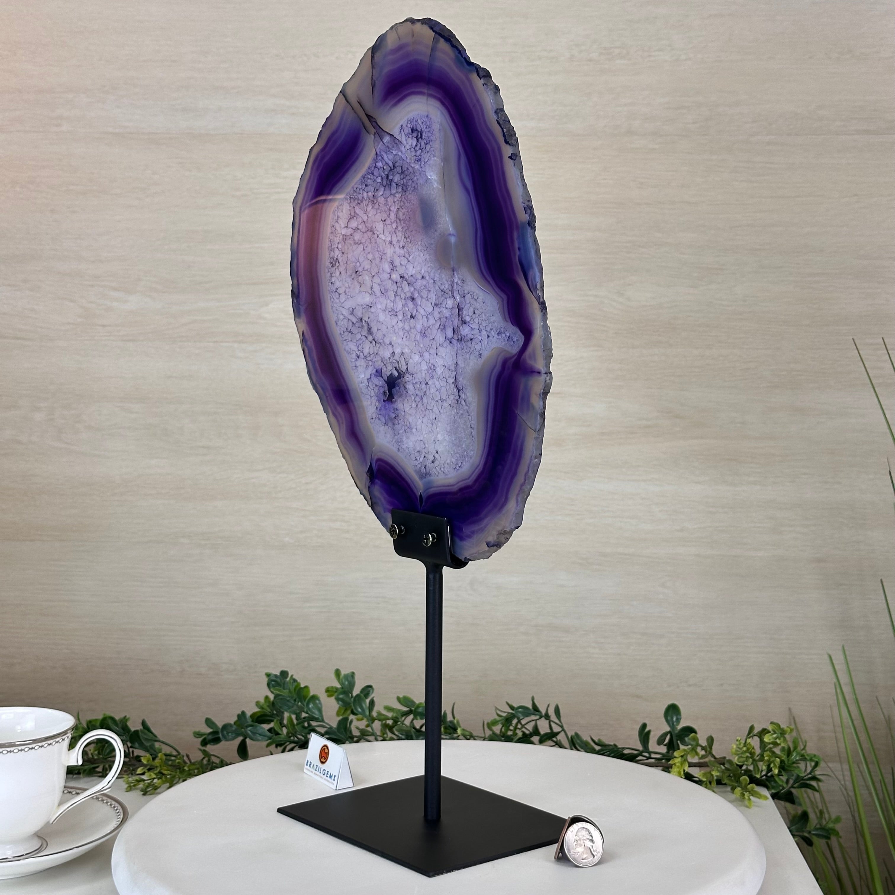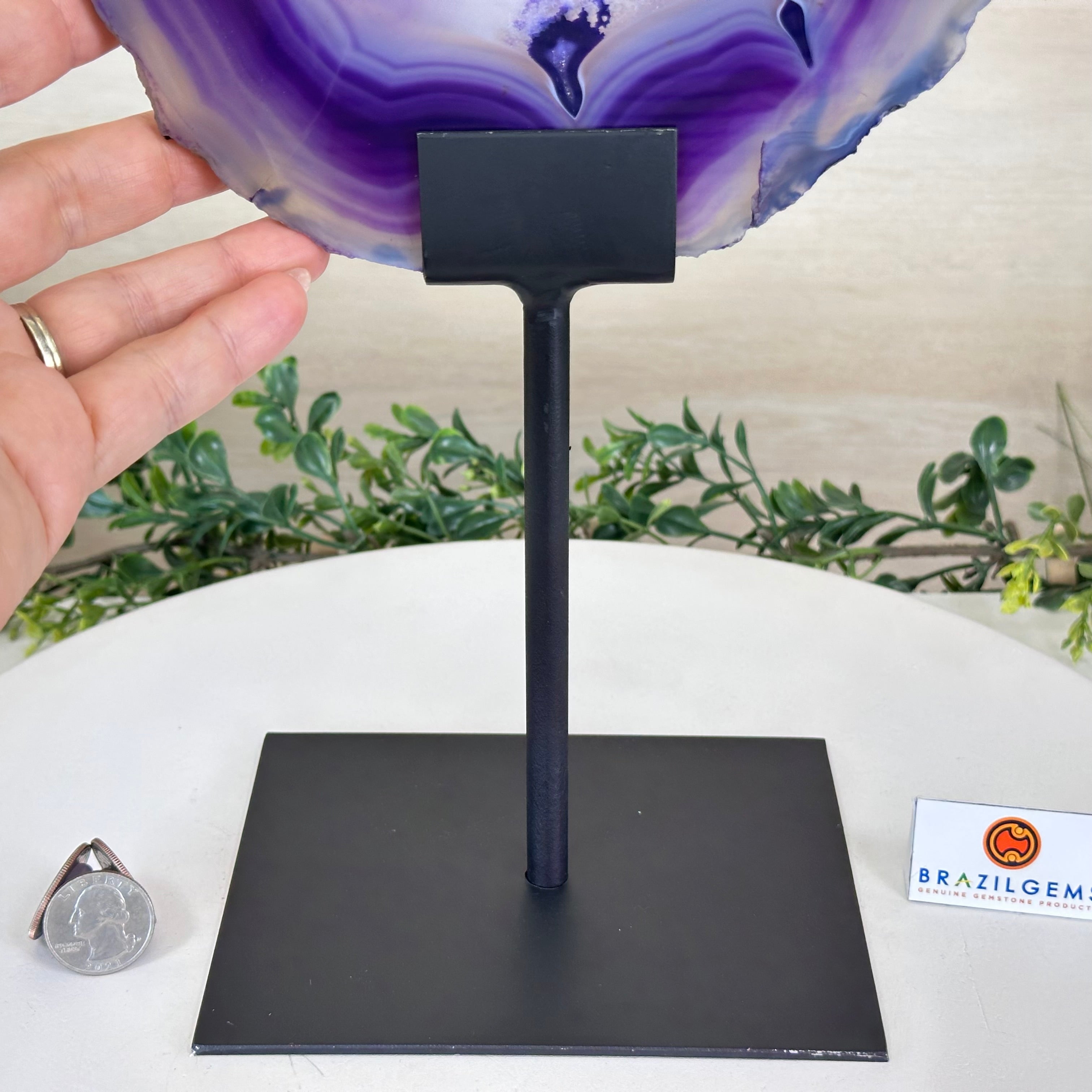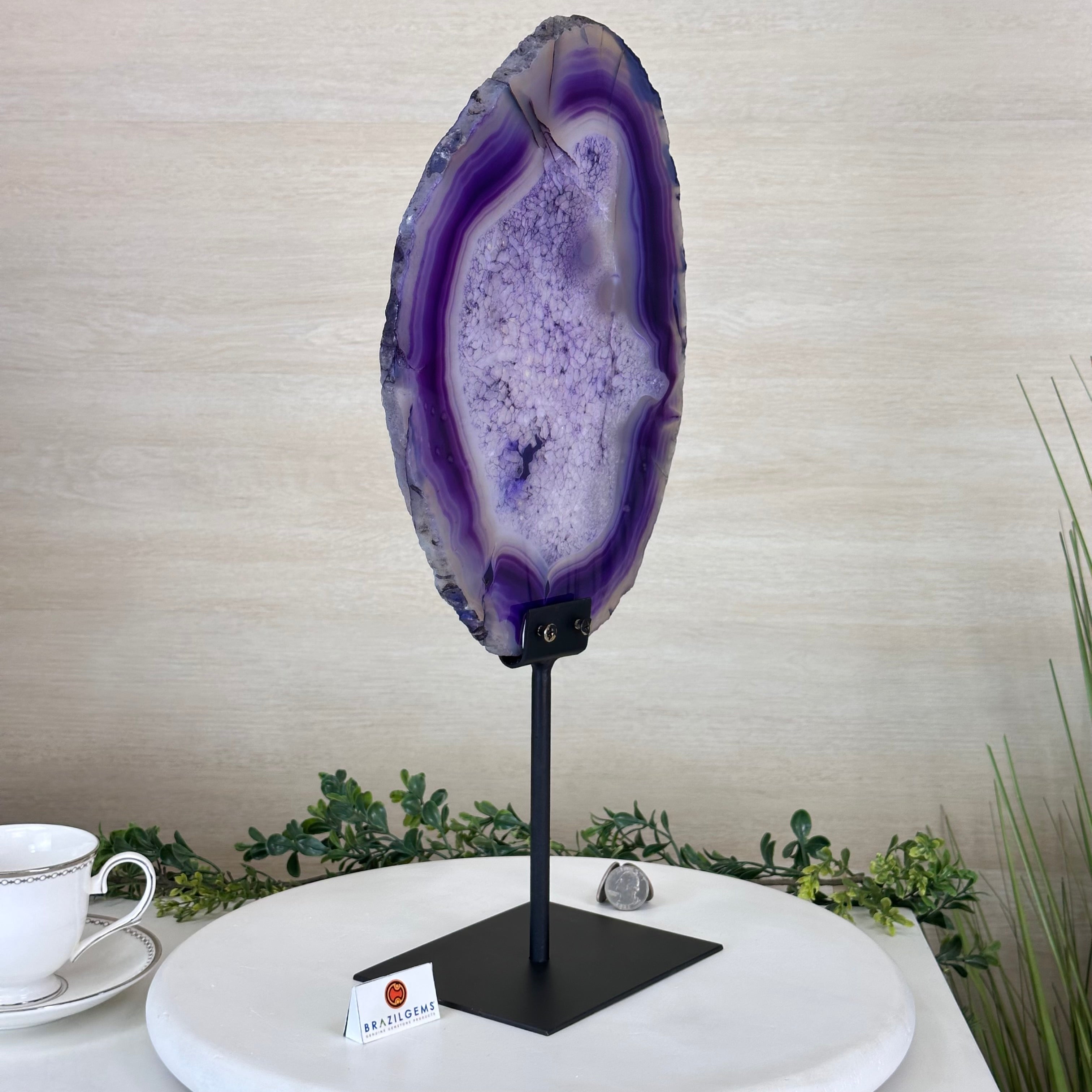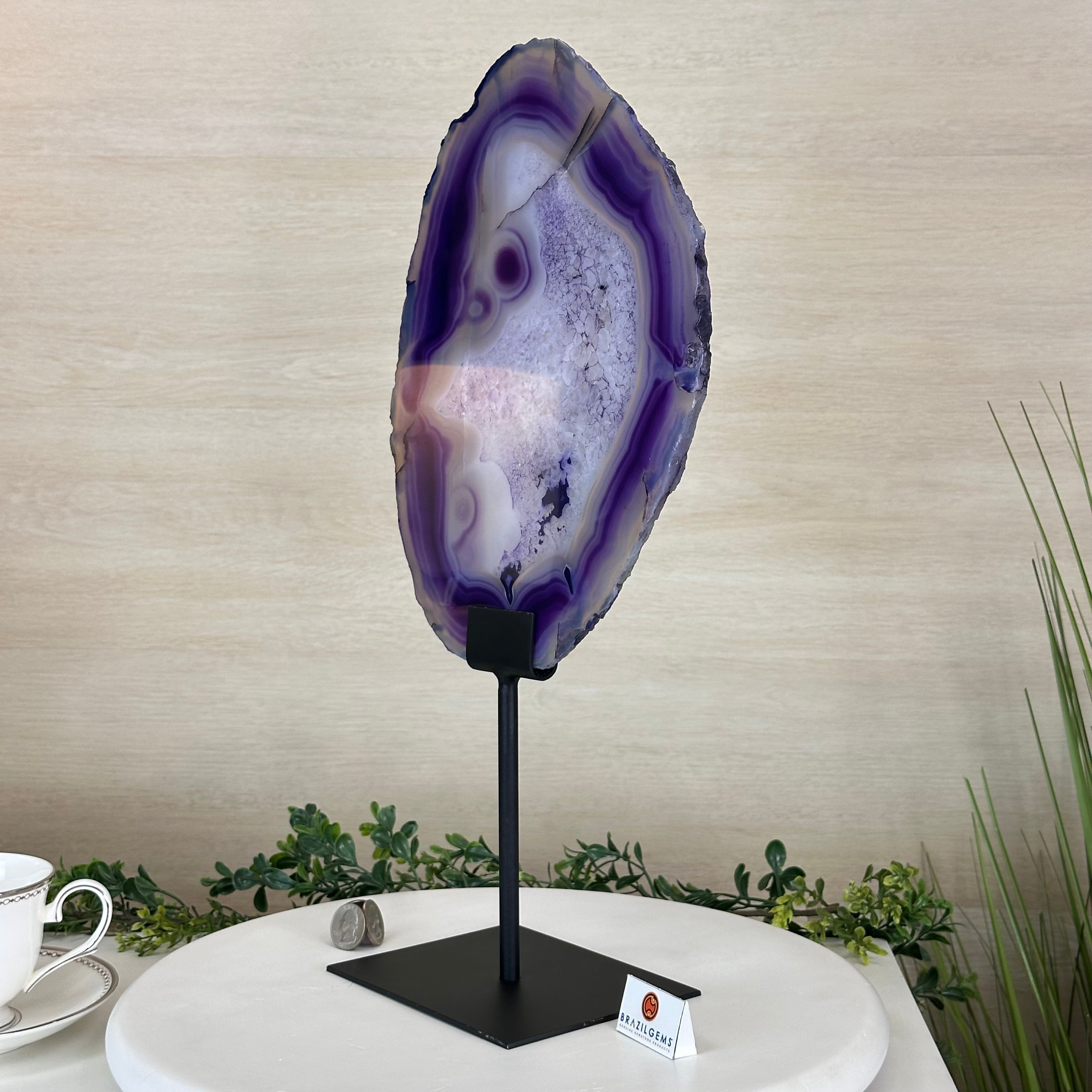 Brazilian Purple Agate Slice on Metal Base, 18.3" Tall #5065PU-055