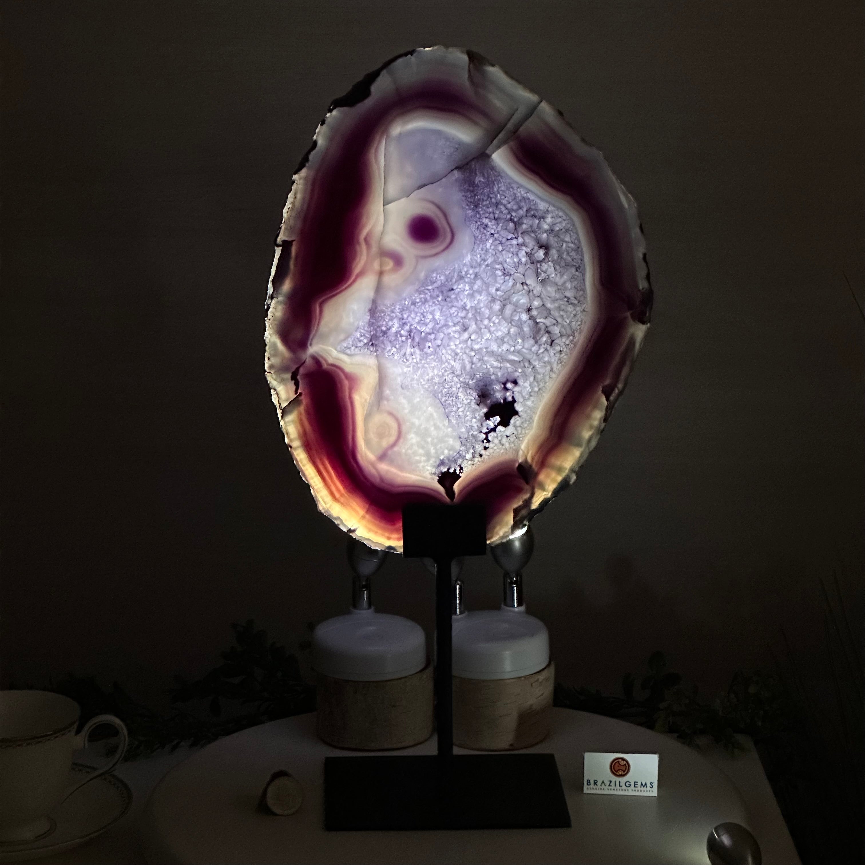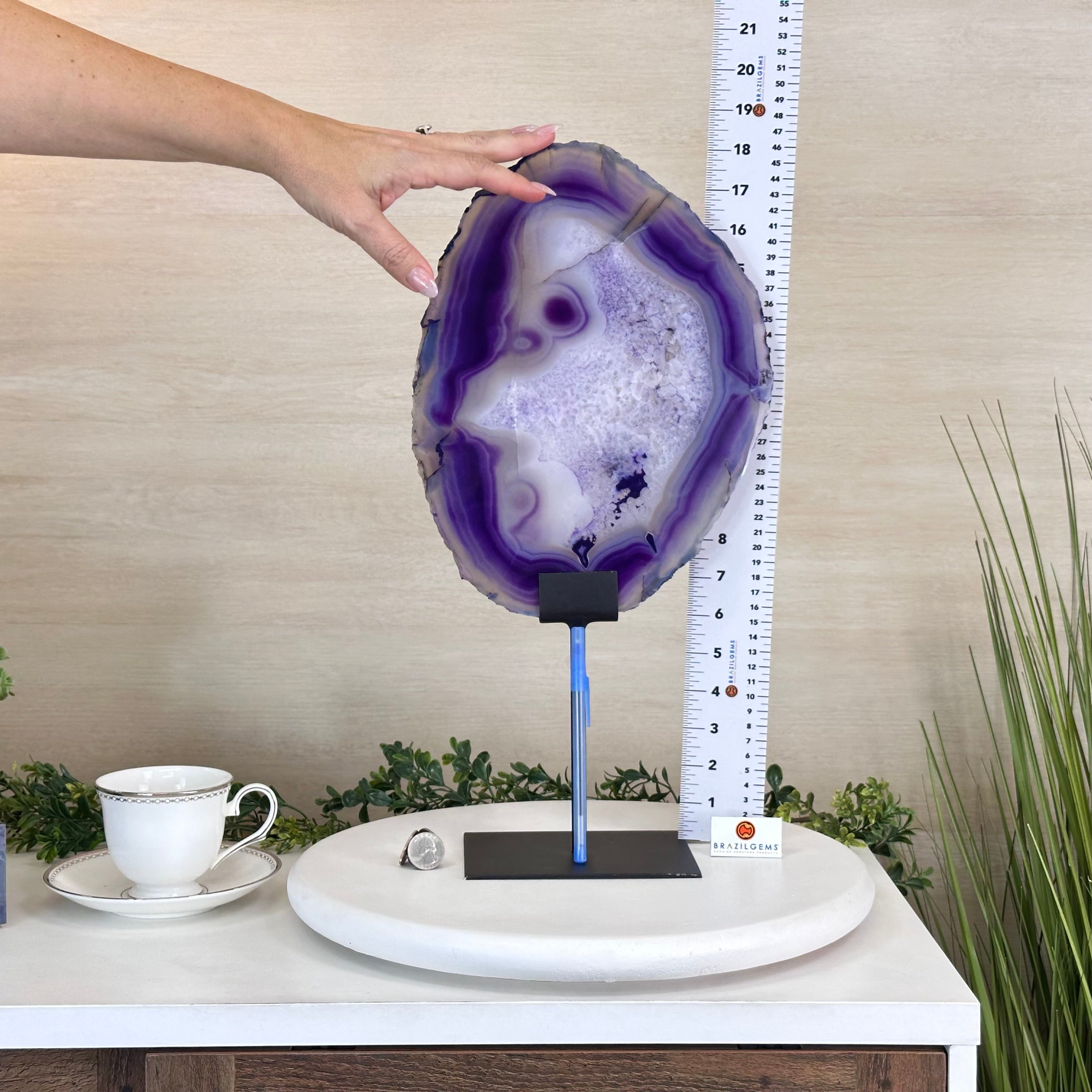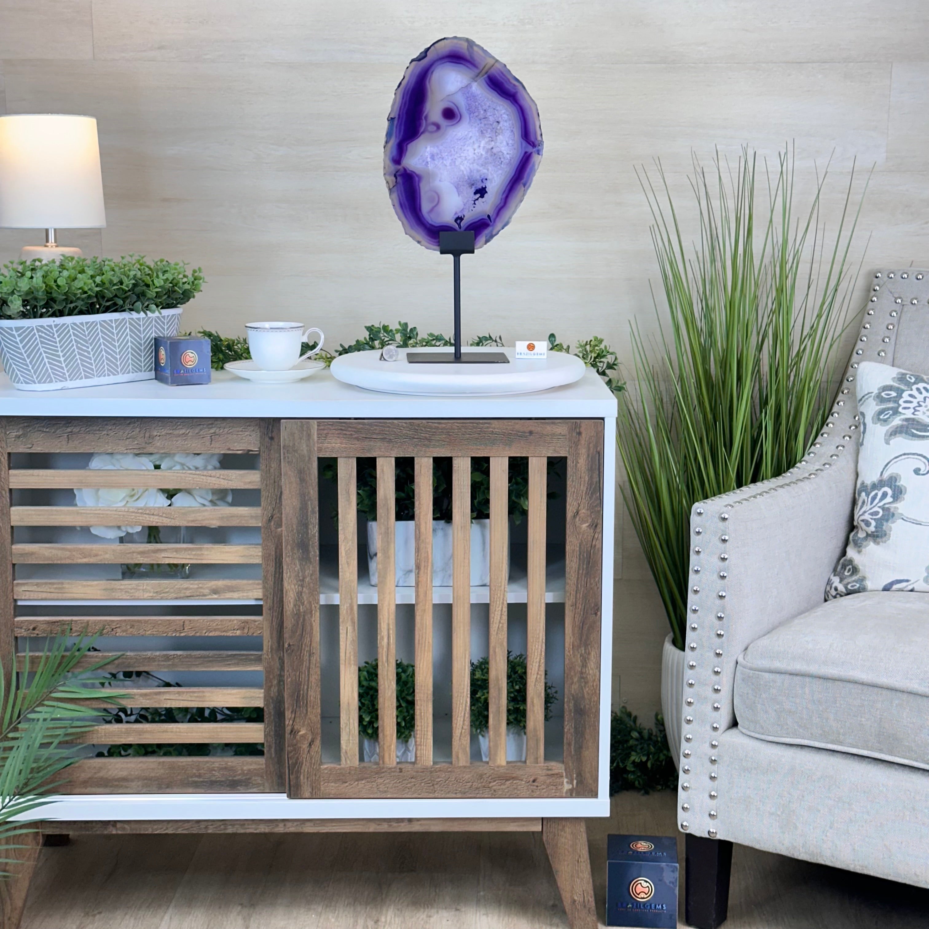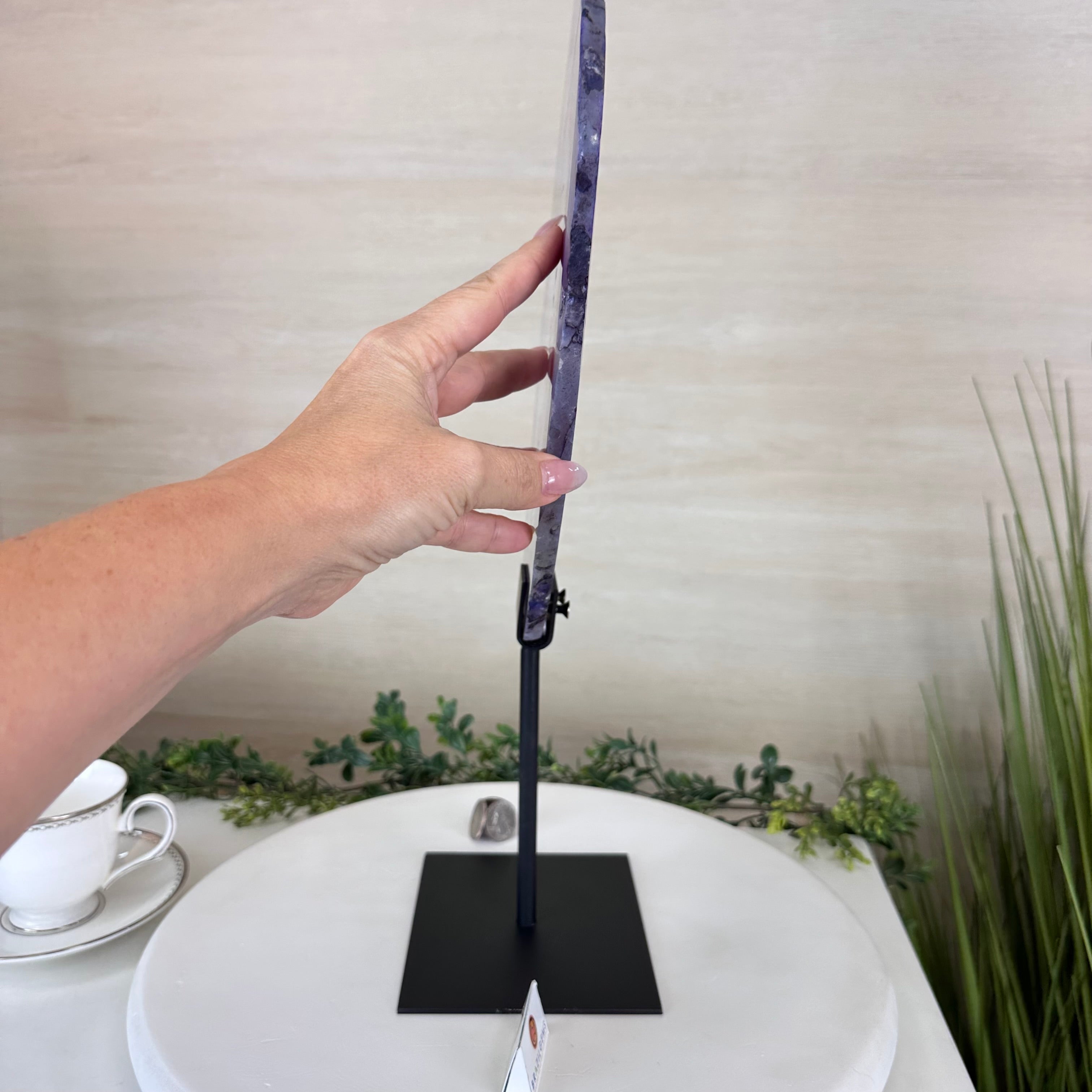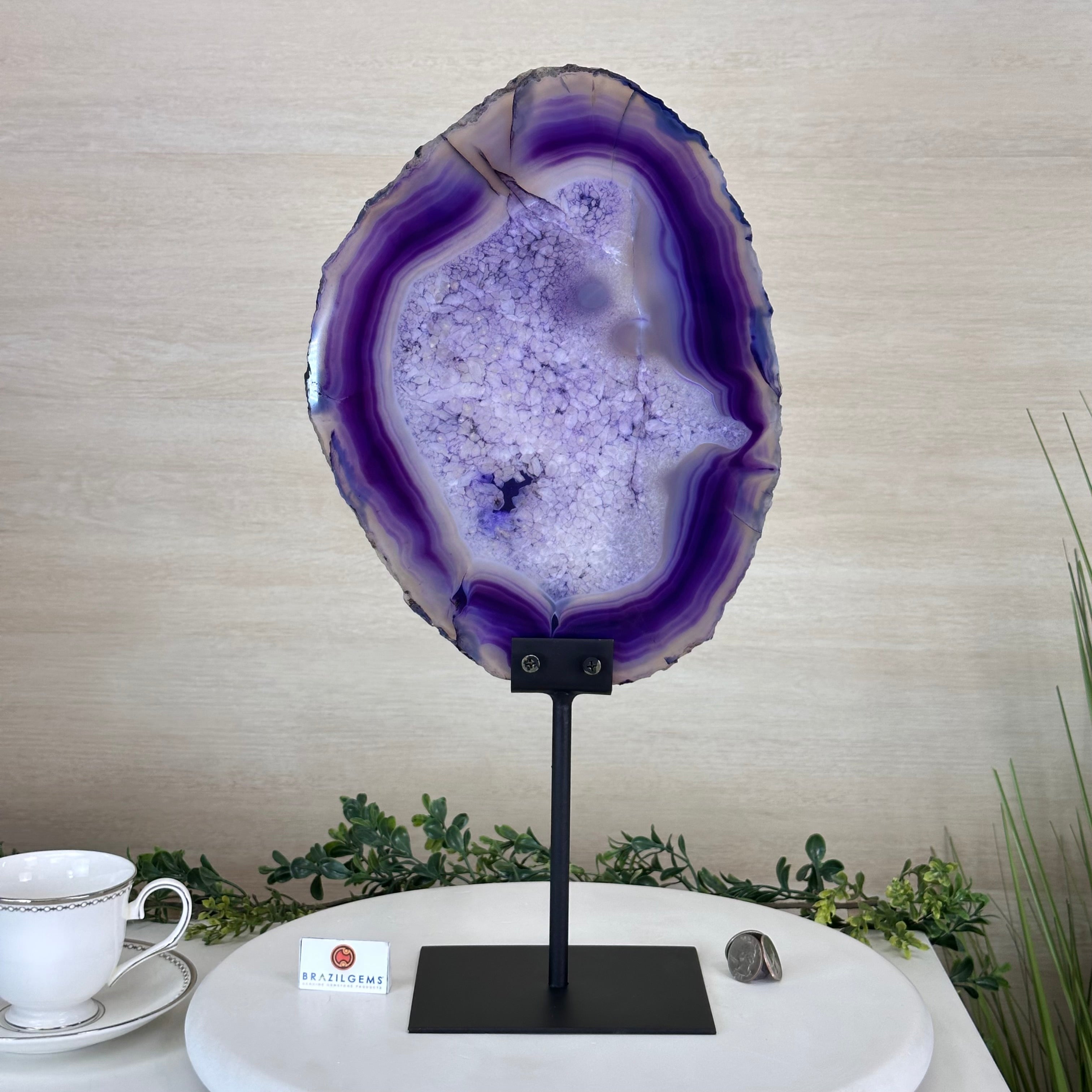 Brazilian Purple Agate Slice on Metal Base, 18.3" Tall #5065PU-055