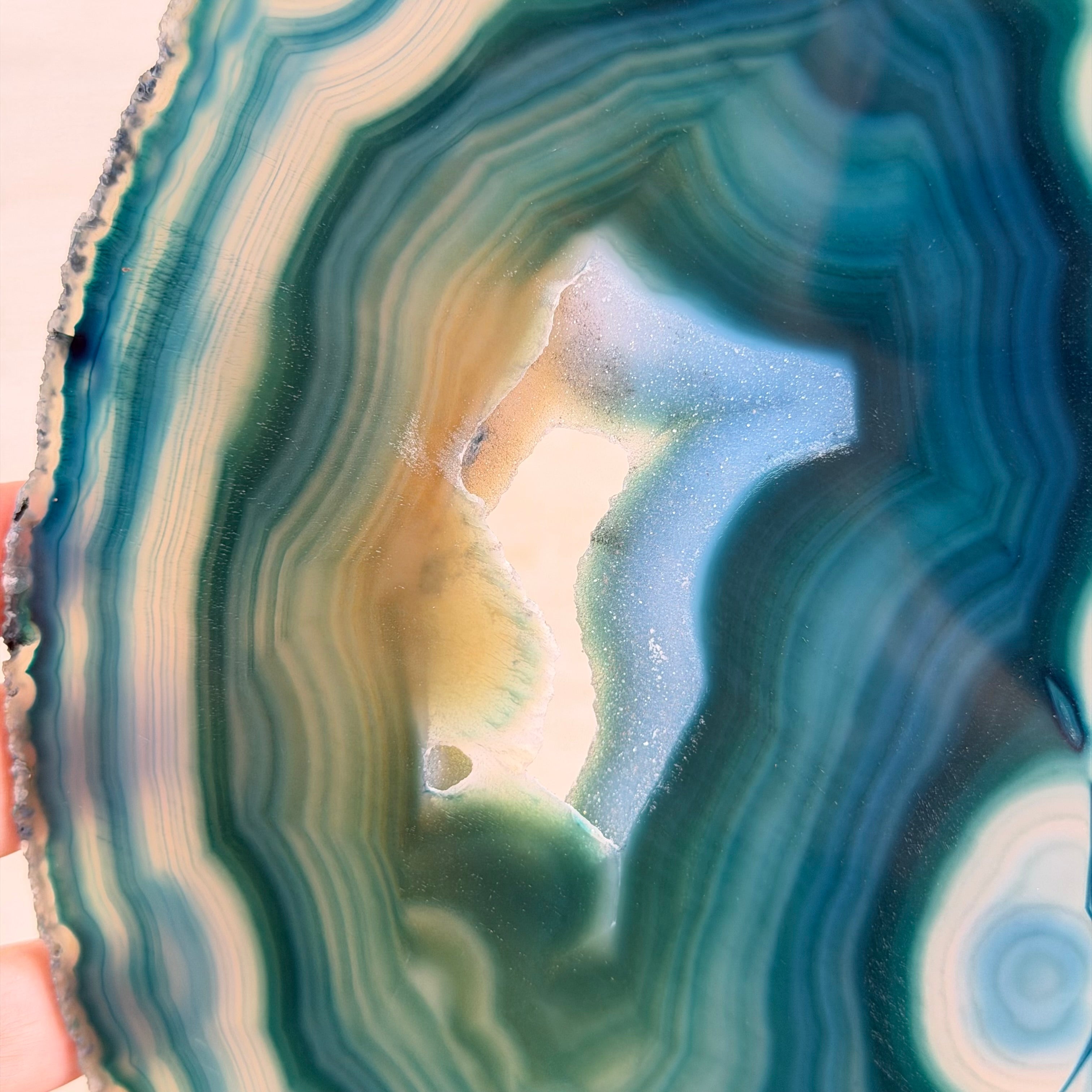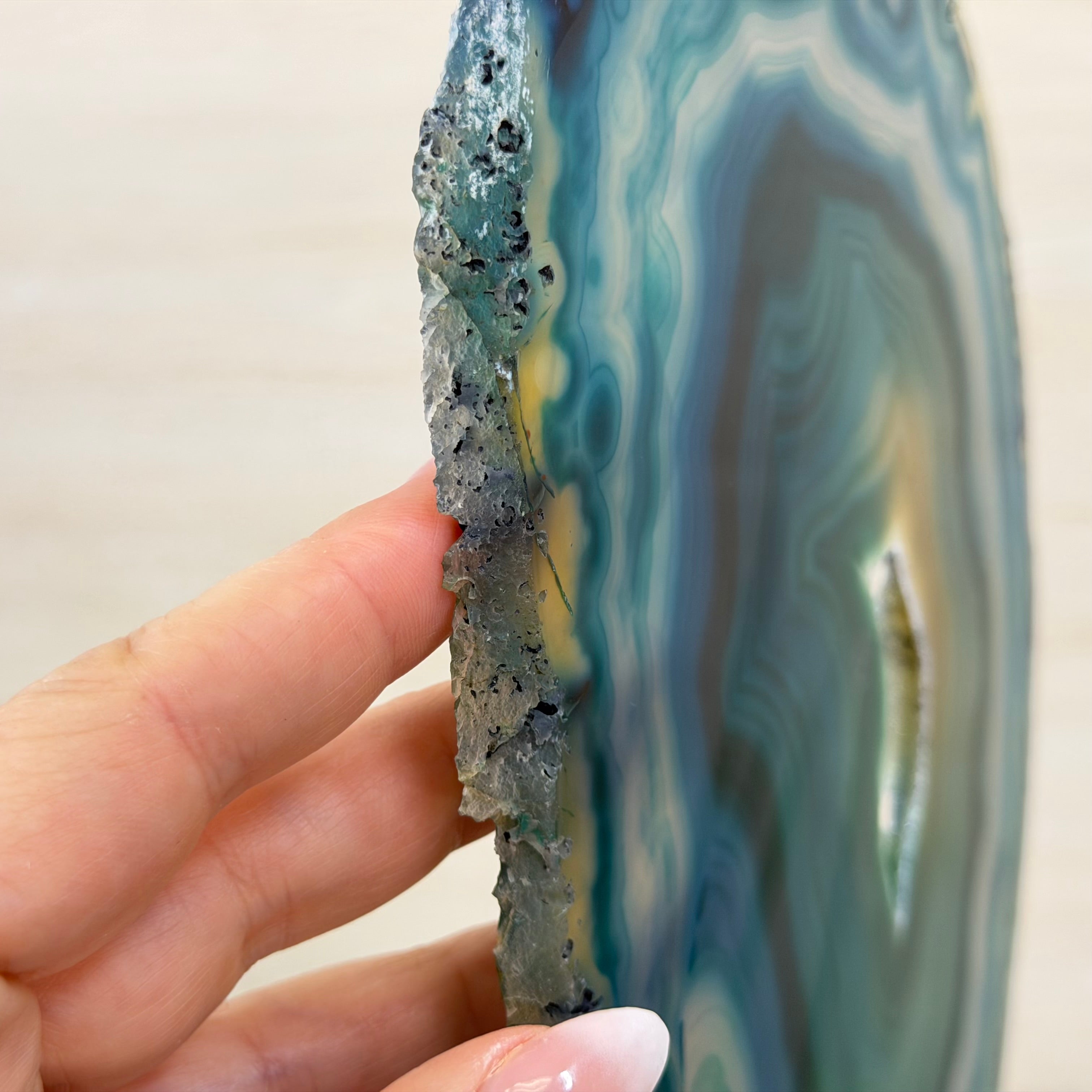 Place this gemstone by a window or with a light behind it to see it really come to life. The translucent nature of agate is what makes it one of our favorite stones.