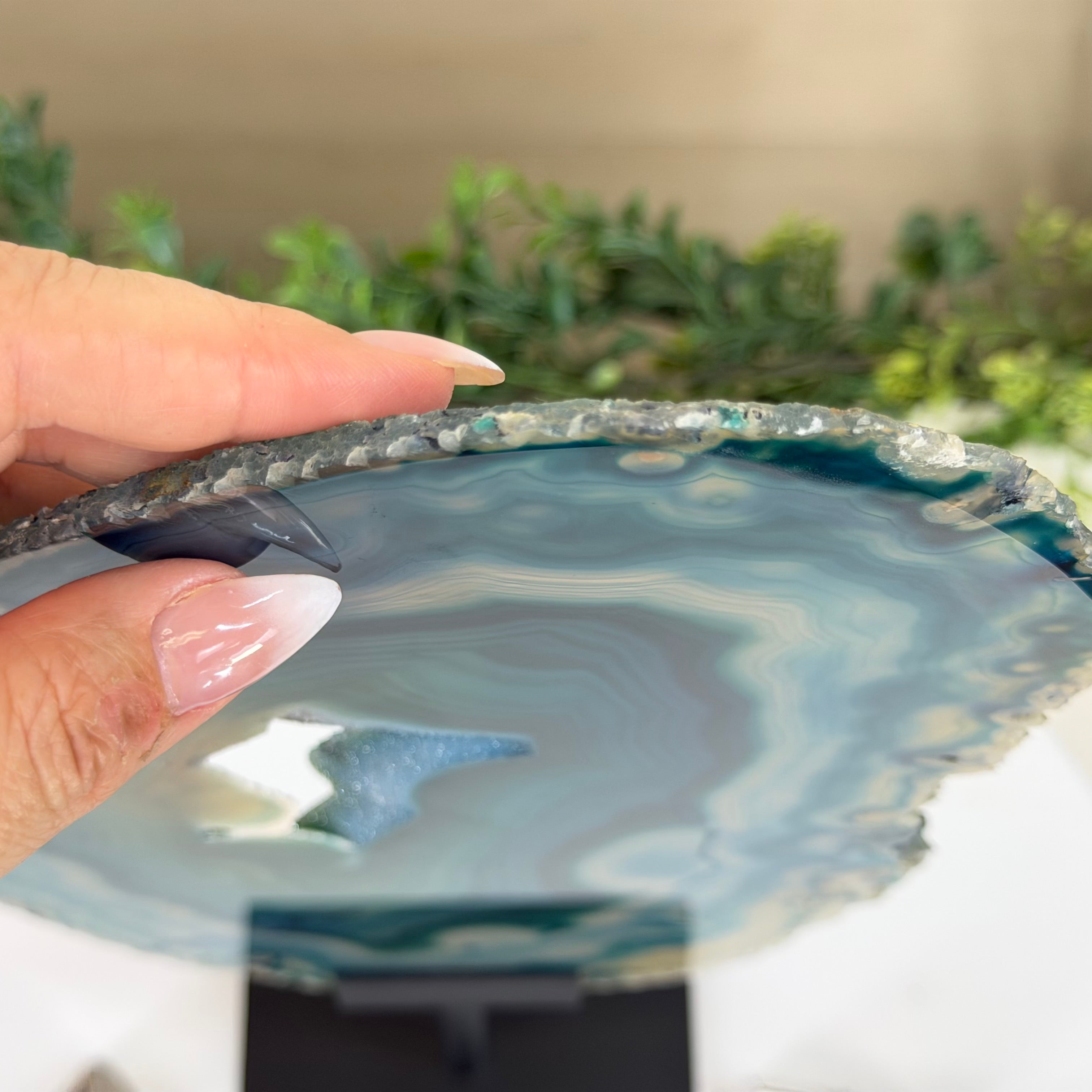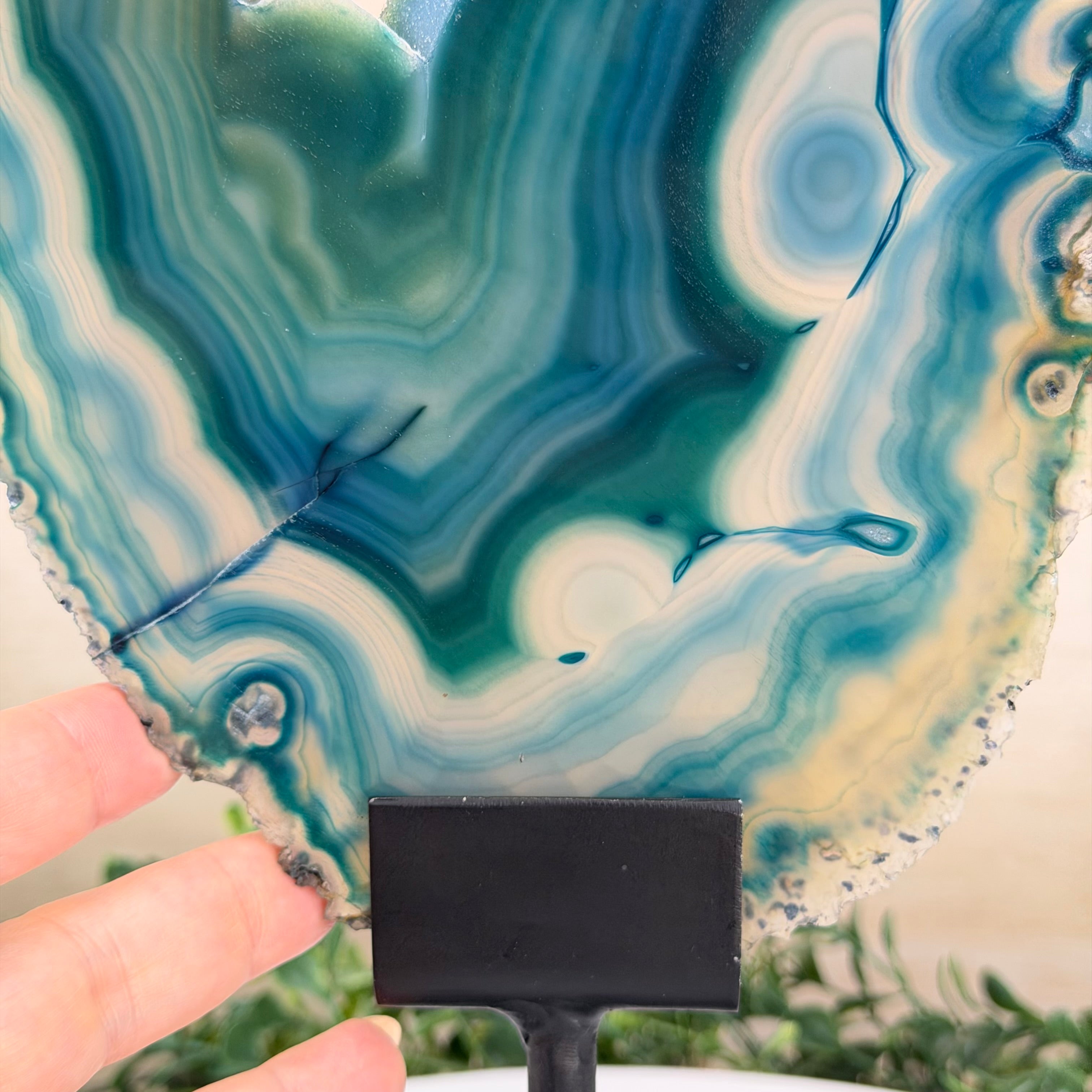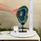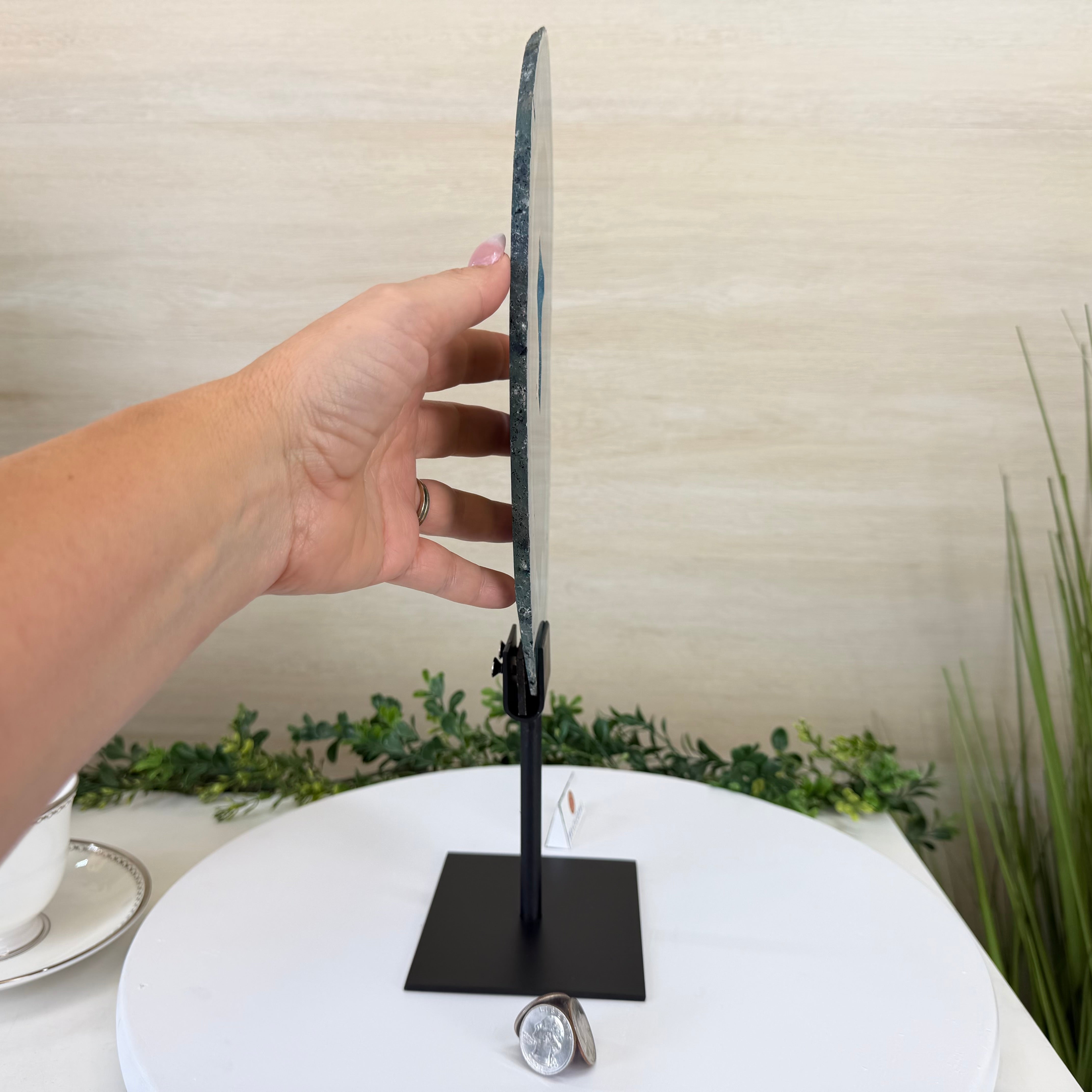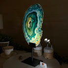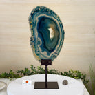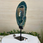 Brazilian Teal Agate Slice on Metal Base, 15.6" Tall #5065TL-053