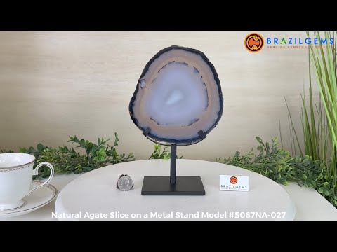 Natural Brazilian Agate Slice on Metal Stand, 9.25" Tall #5067NA-027