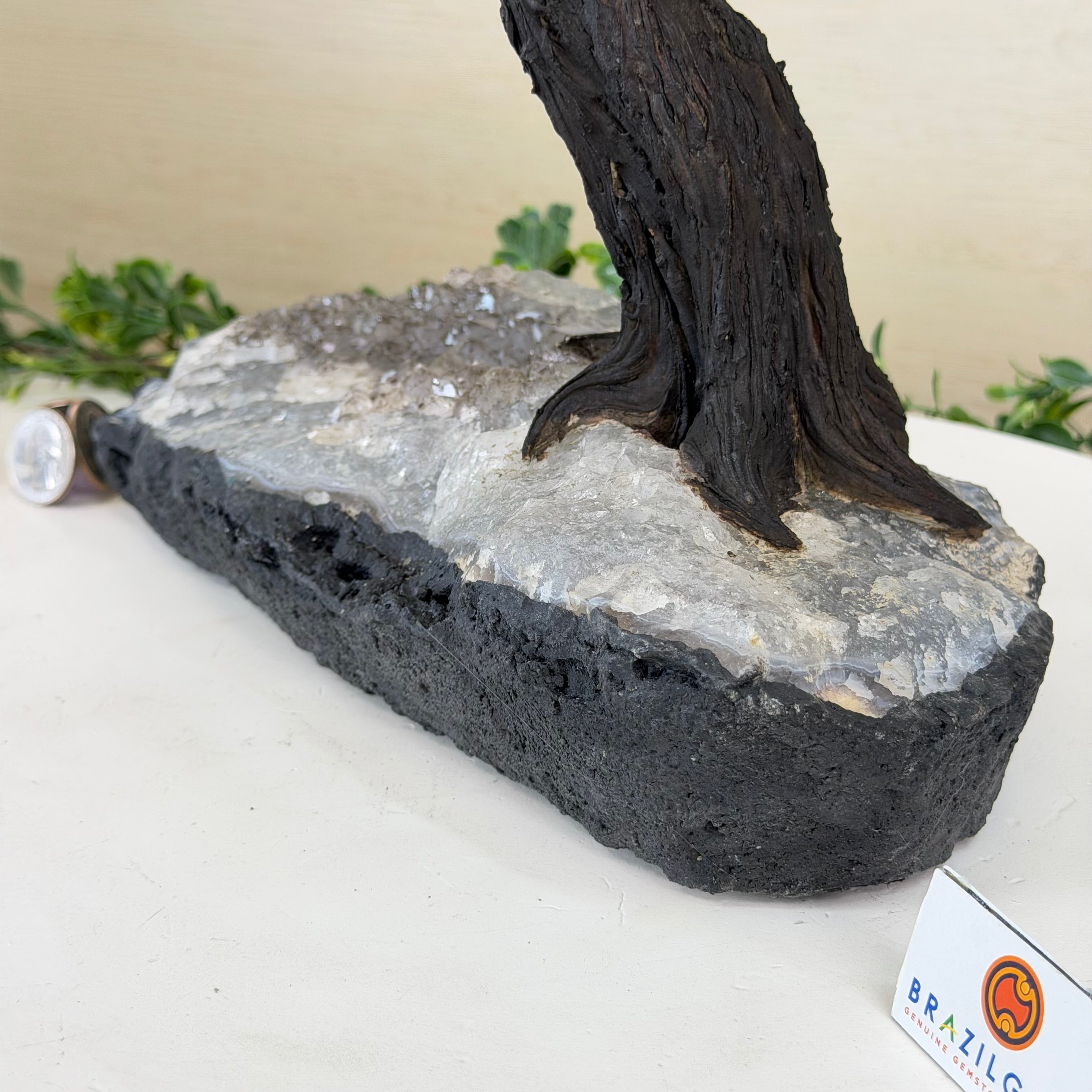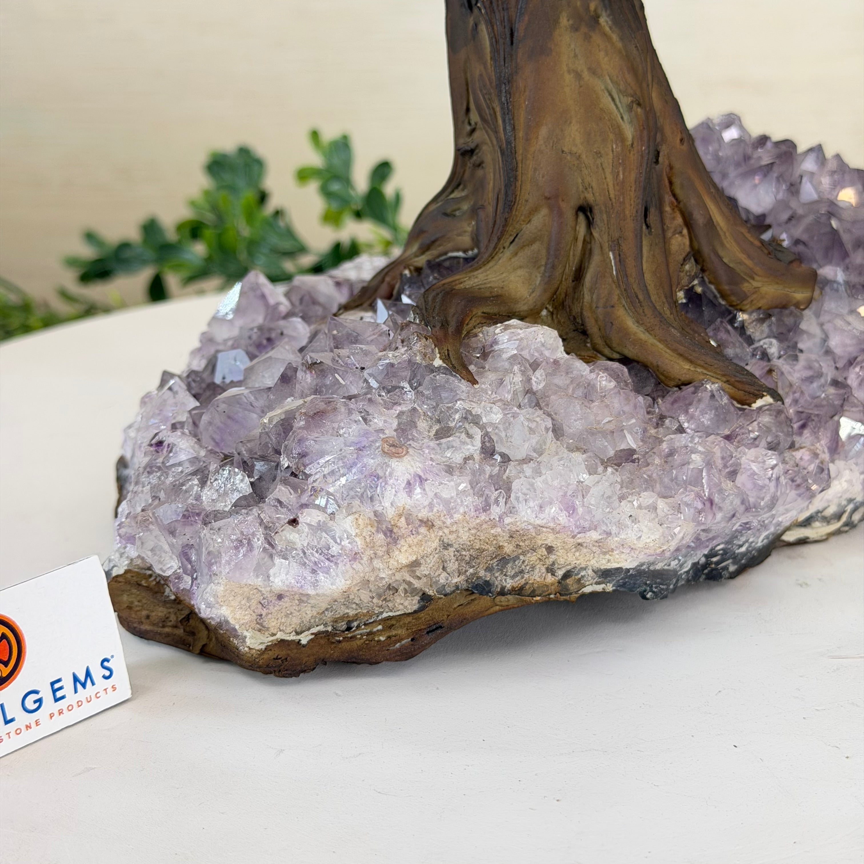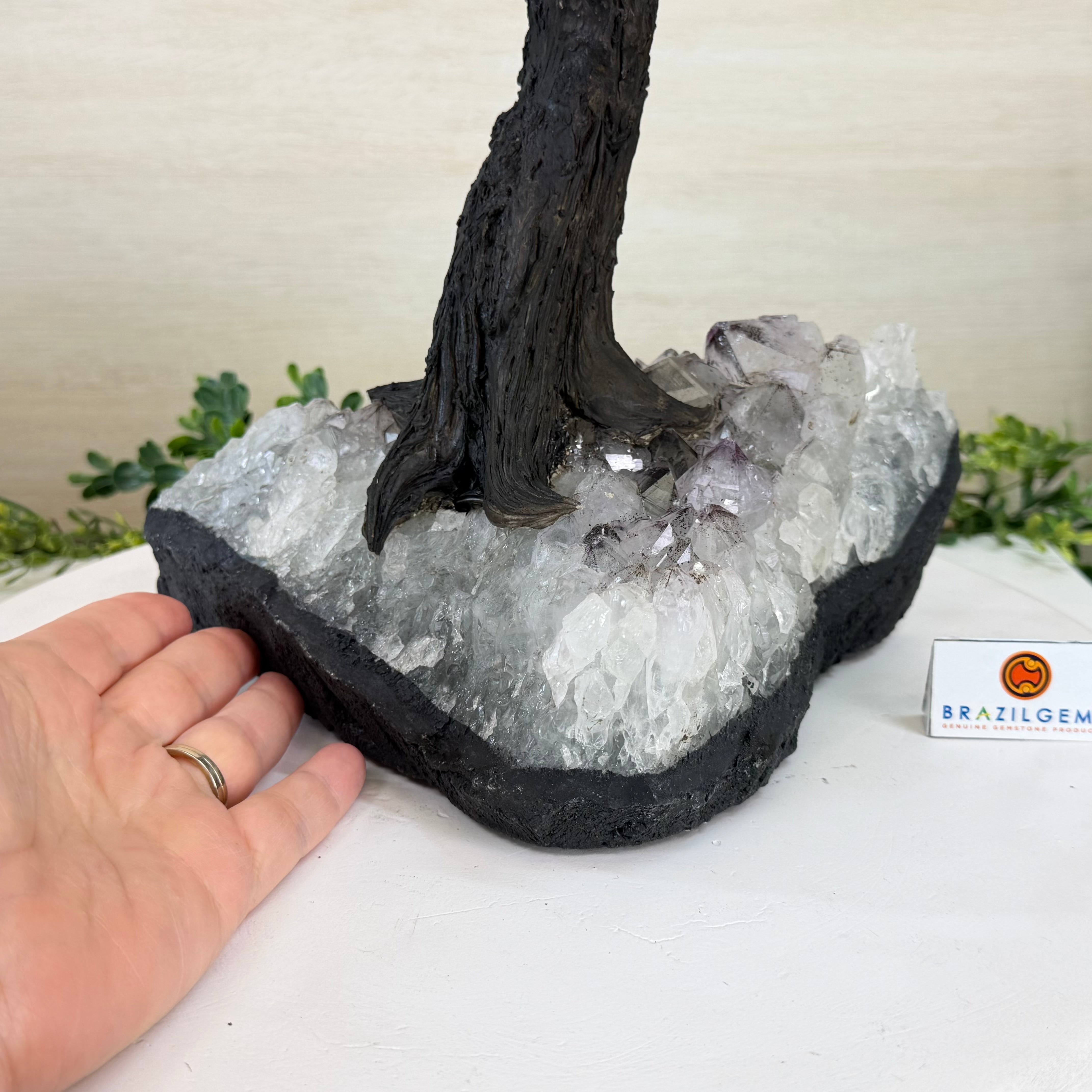 17" Tall Hematite Bonsai Gemstone Tree, Amethyst Base, 240 Gems #5405HEMA-001