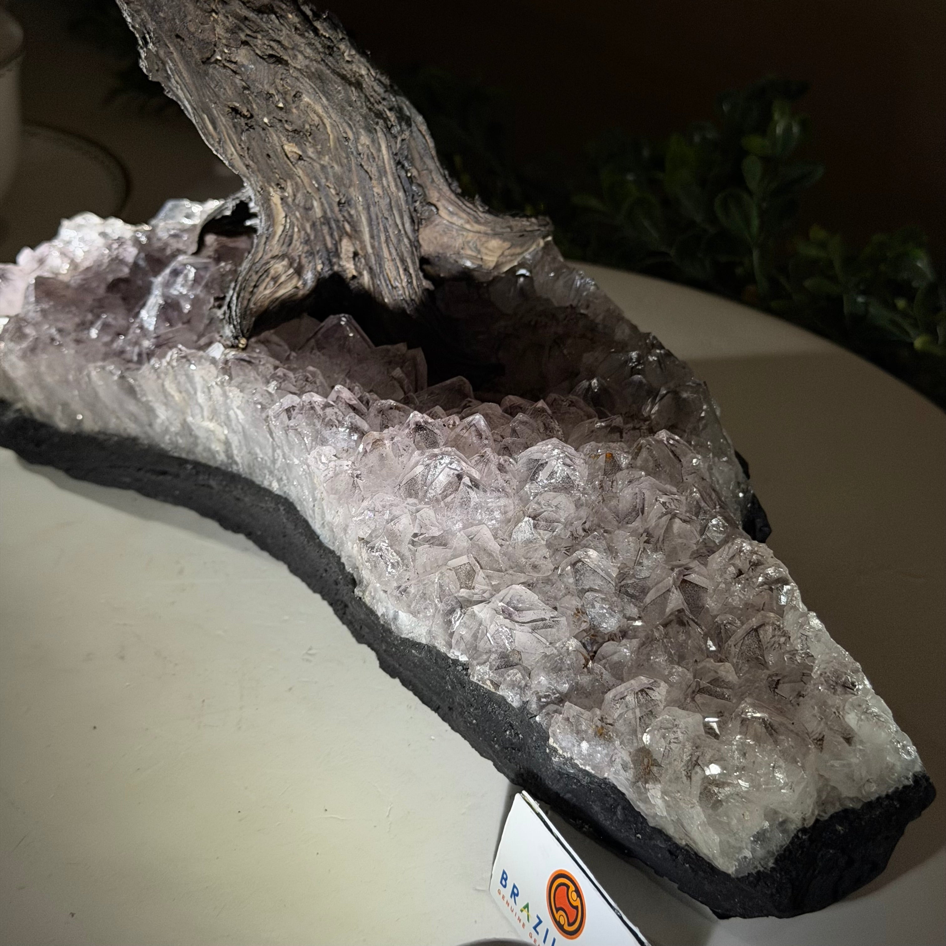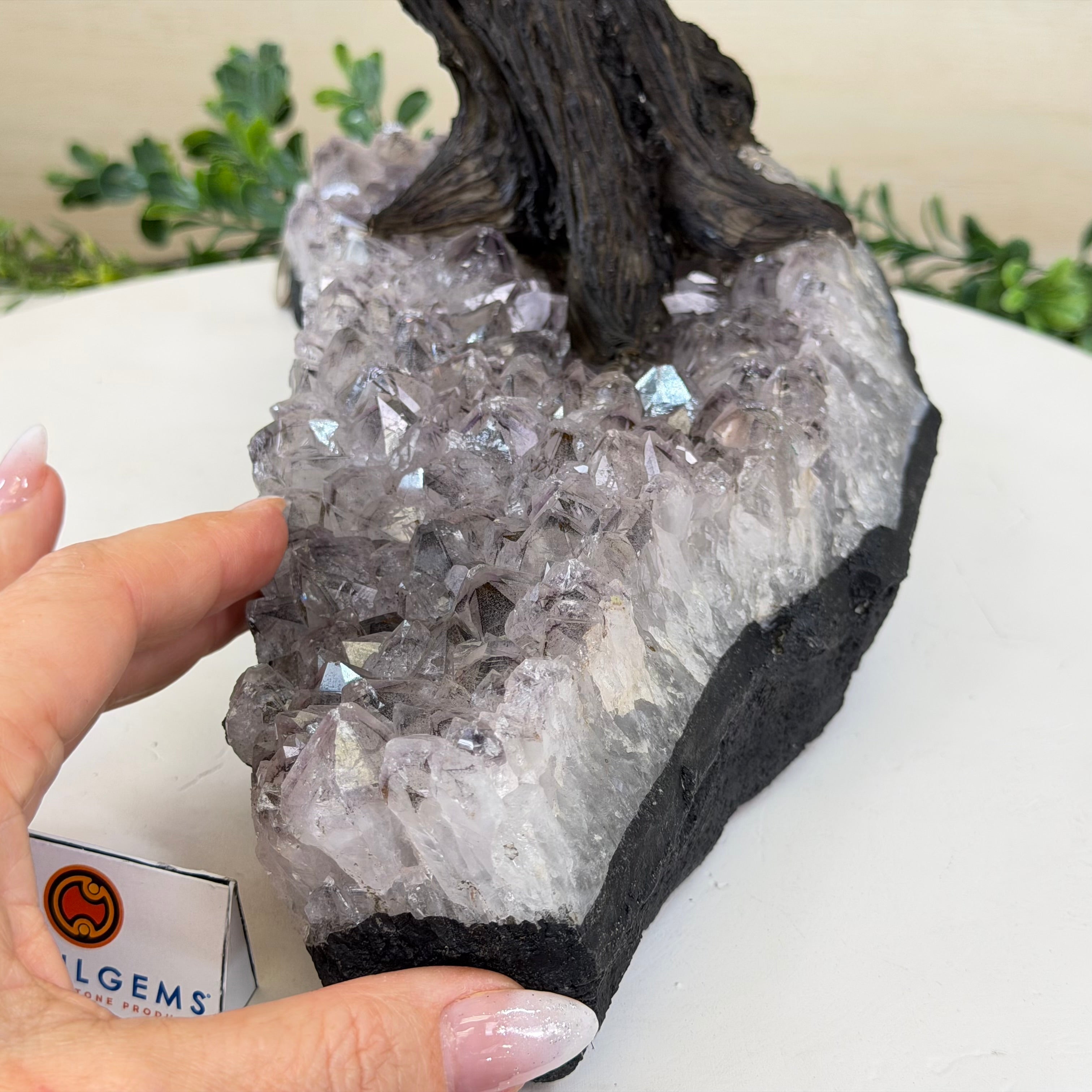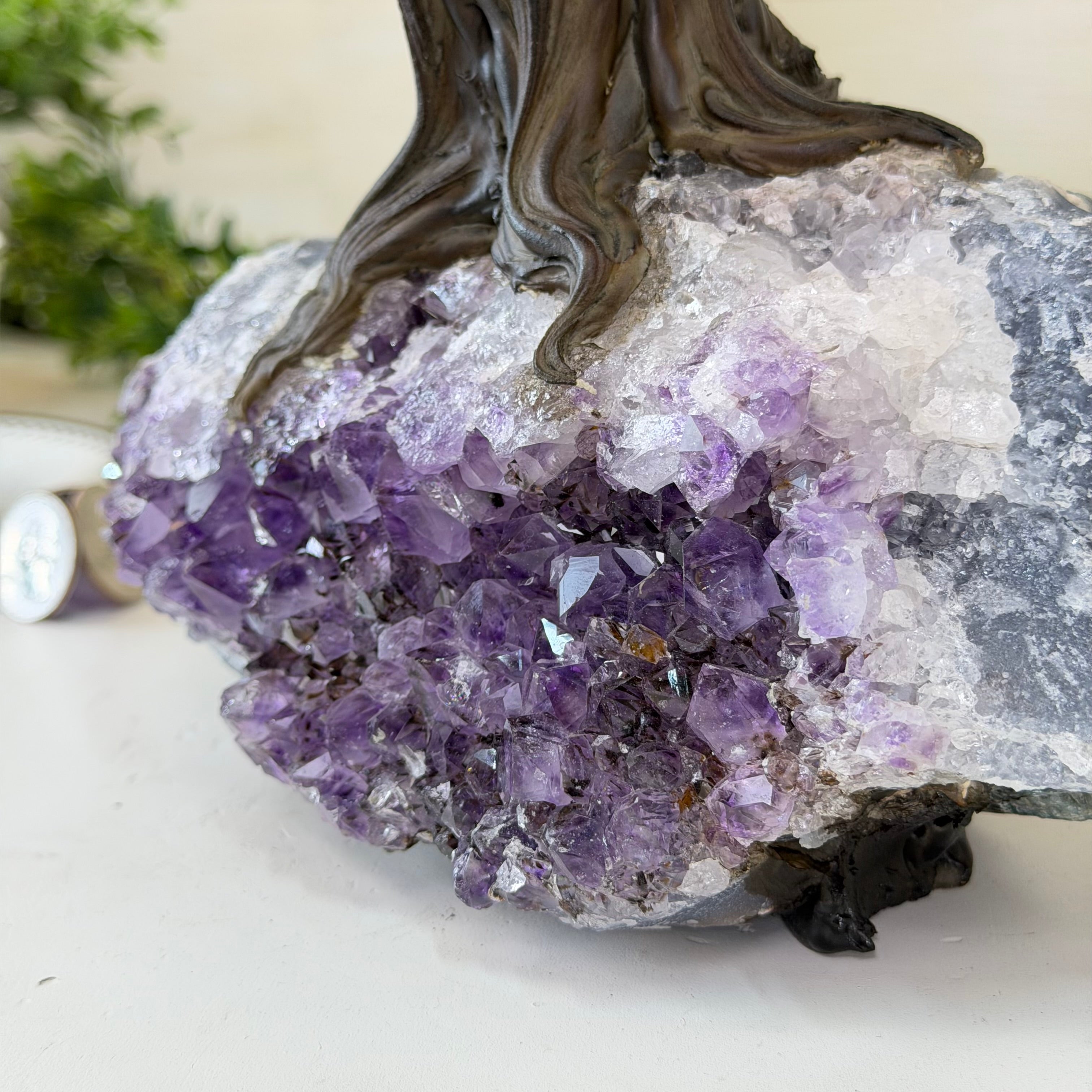 17" Tall Hematite Bonsai Gemstone Tree, Amethyst Base, 240 Gems #5405HEMA-001