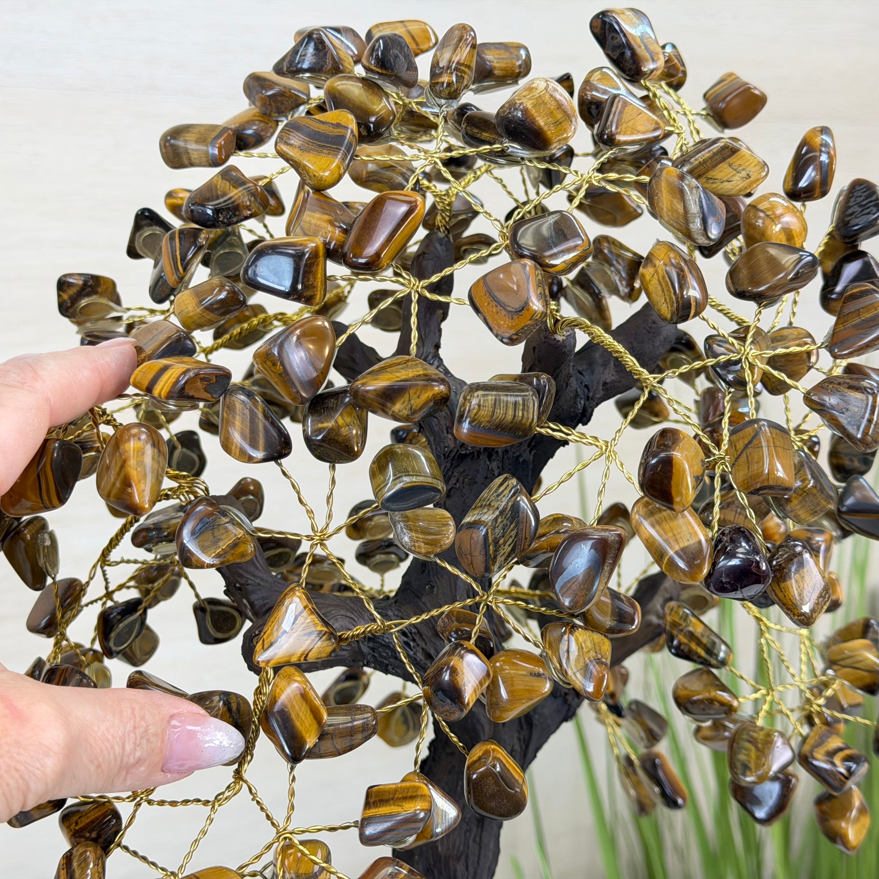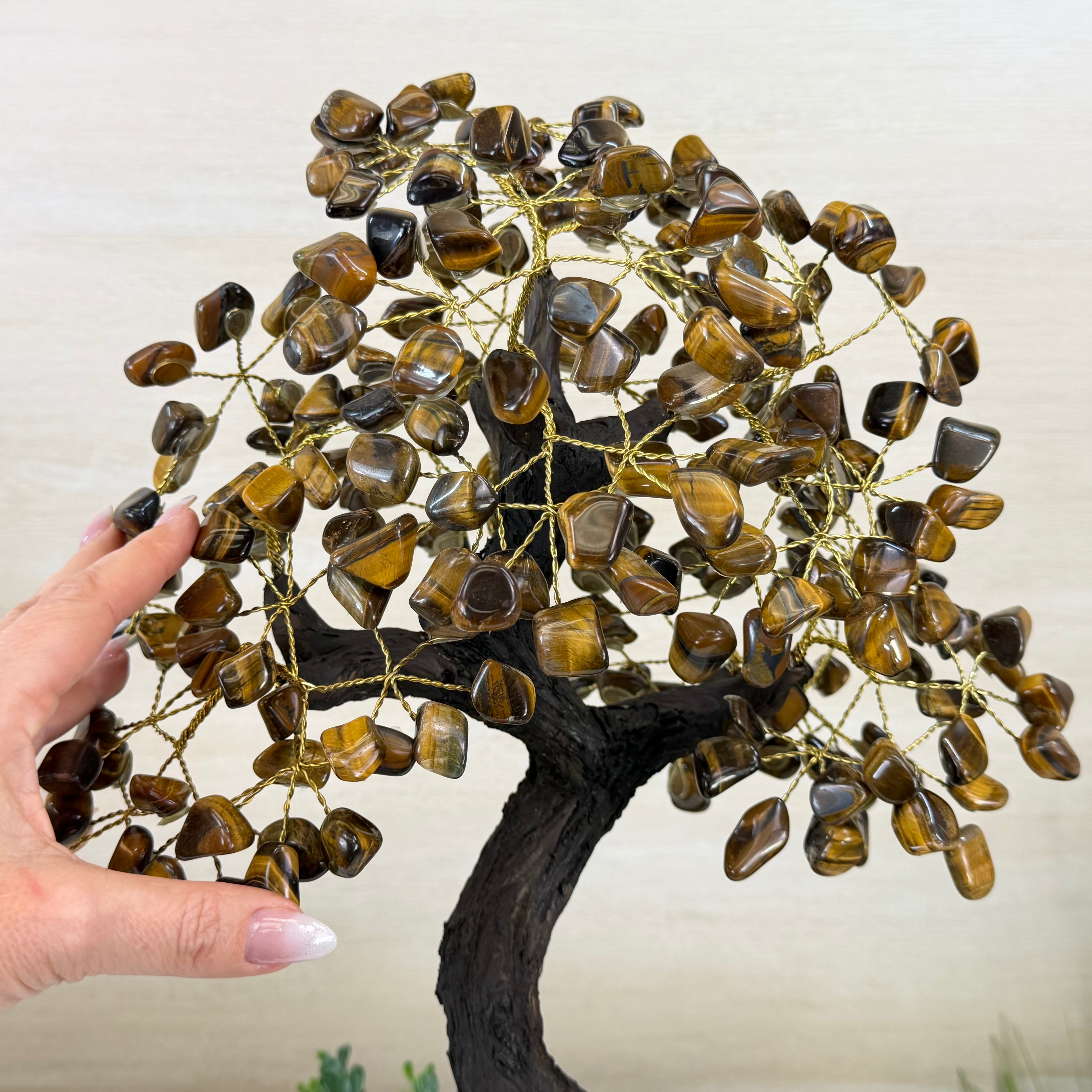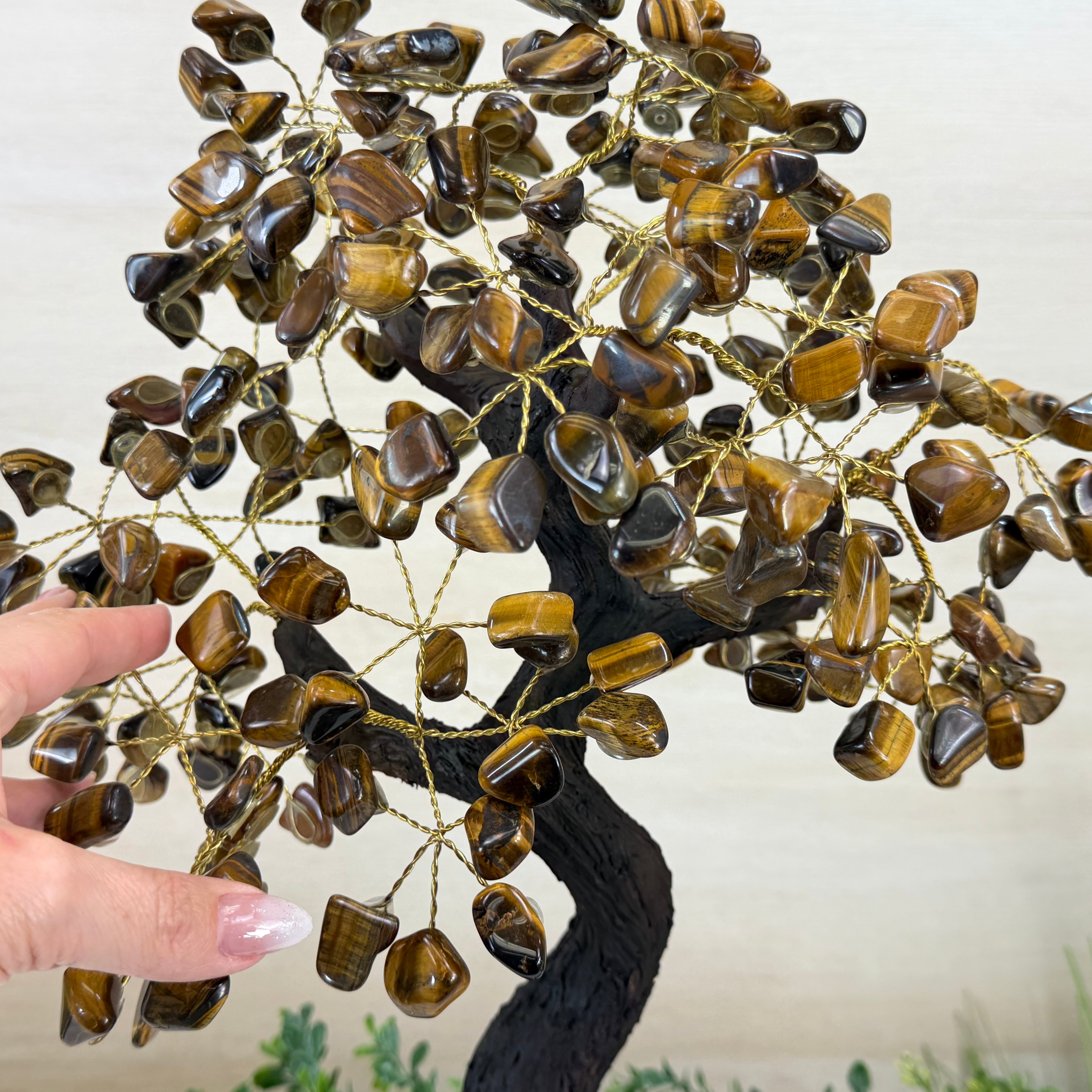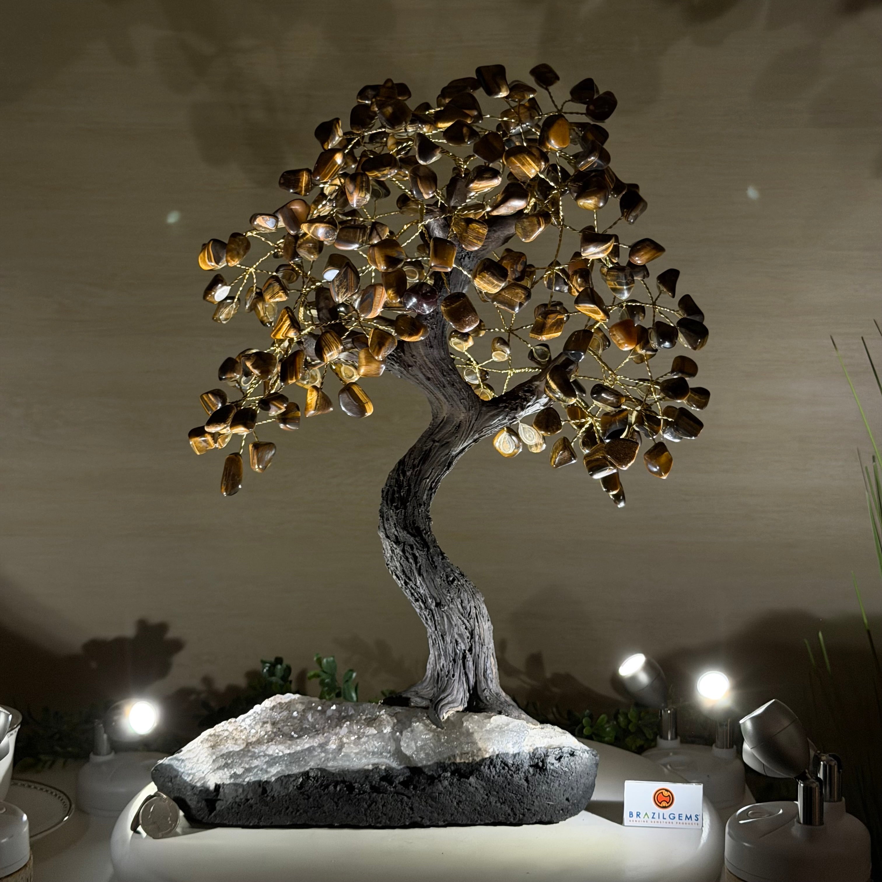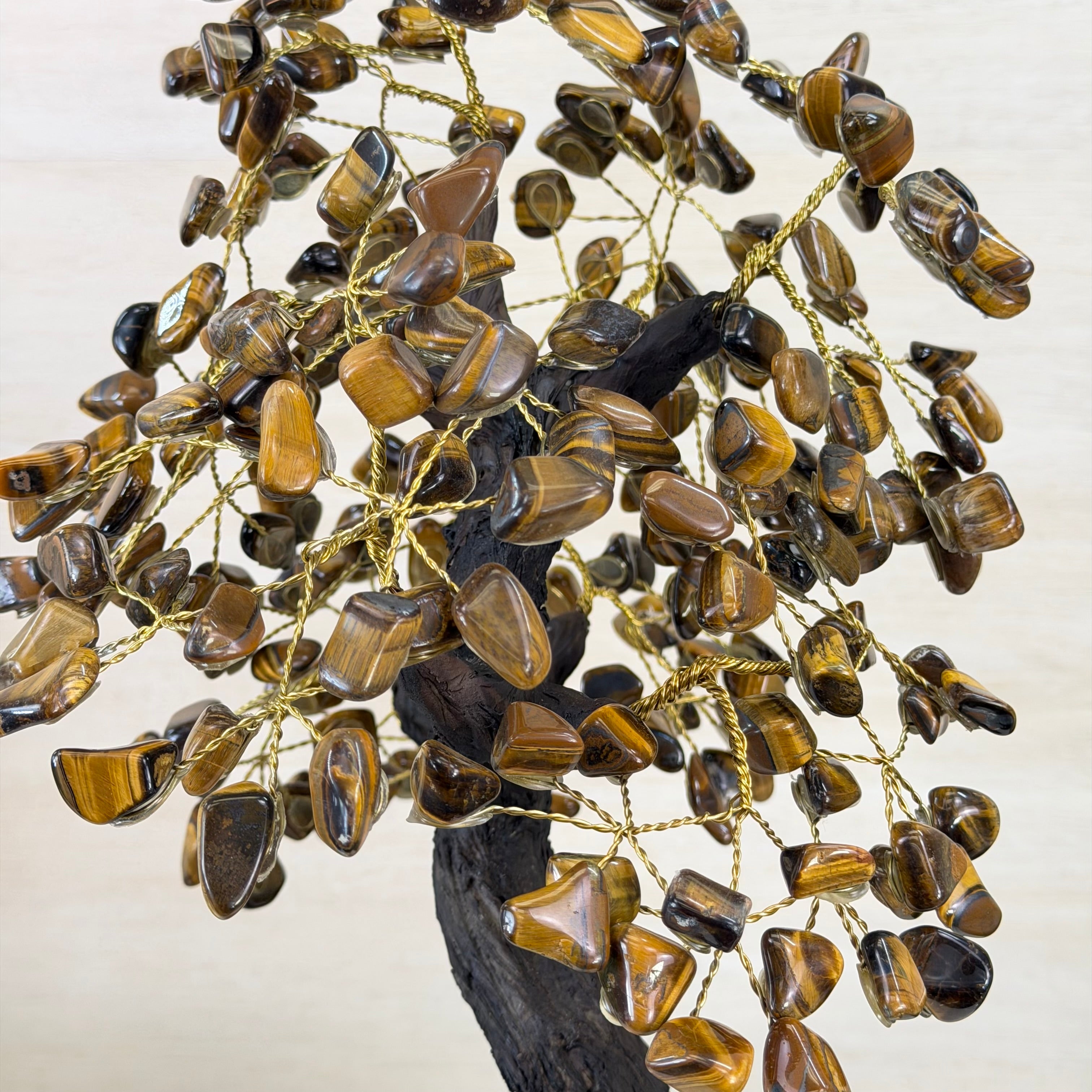 17" Tall Tiger's Eye Bonsai Gemstone Tree, Amethyst base, 240 Gems #5405TIGE-003