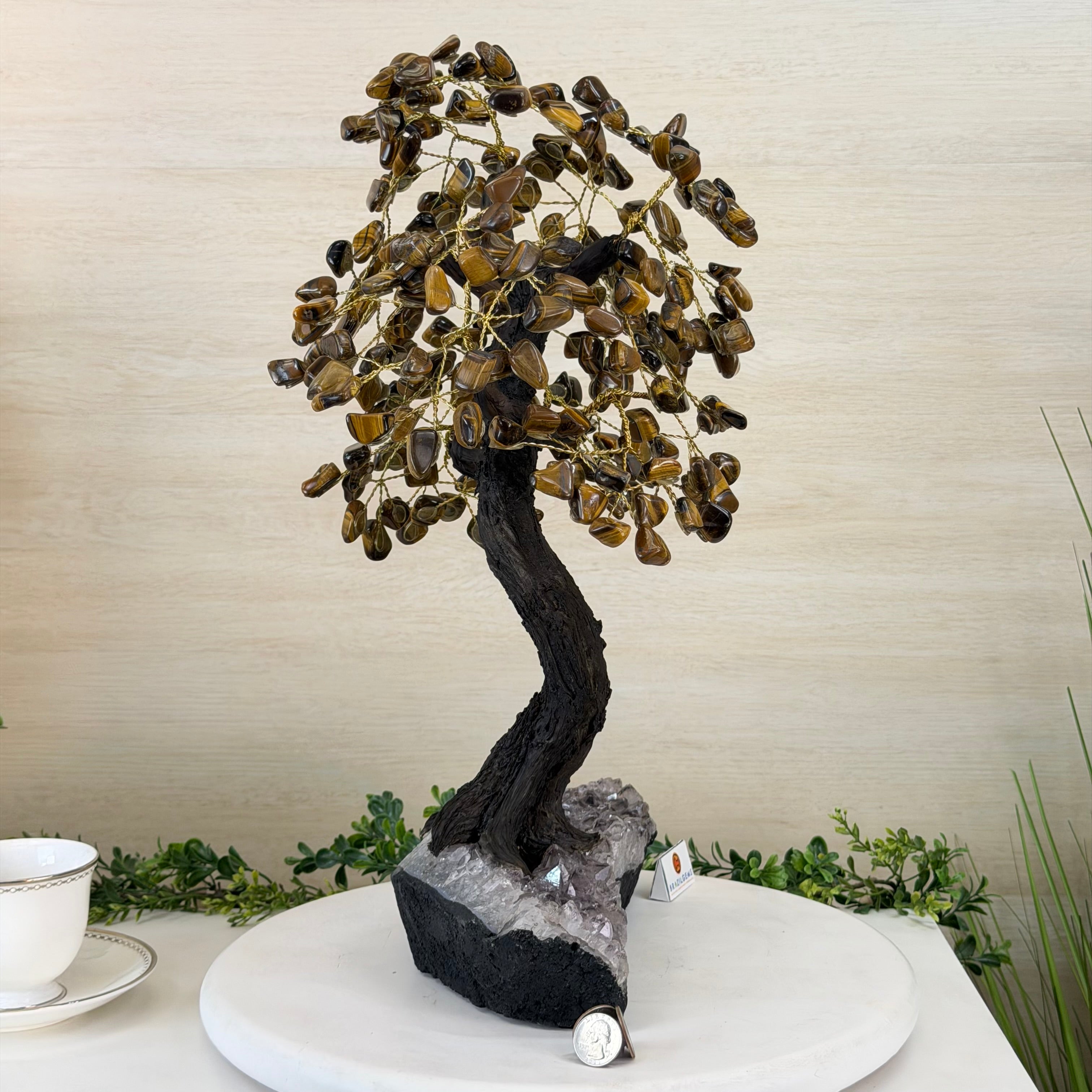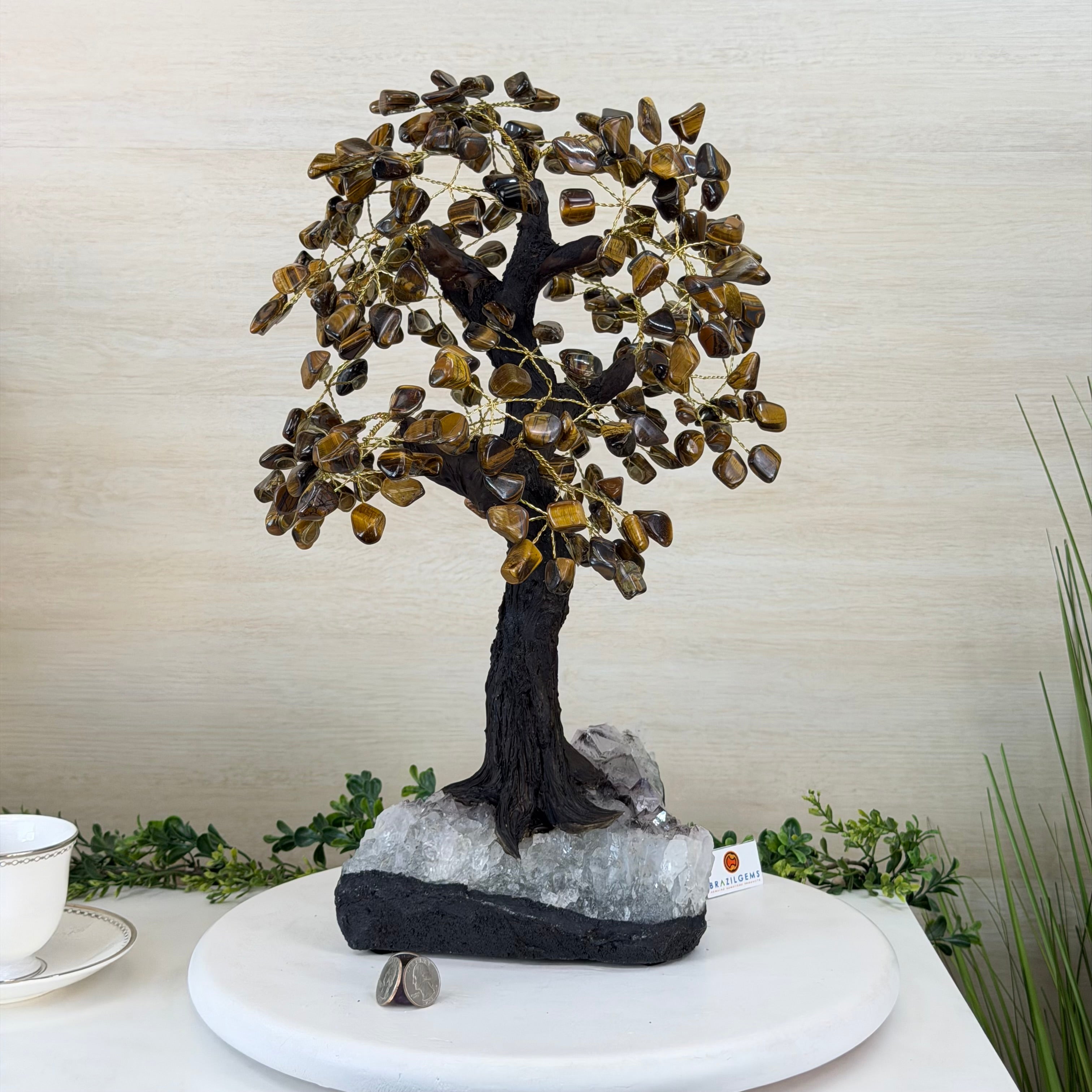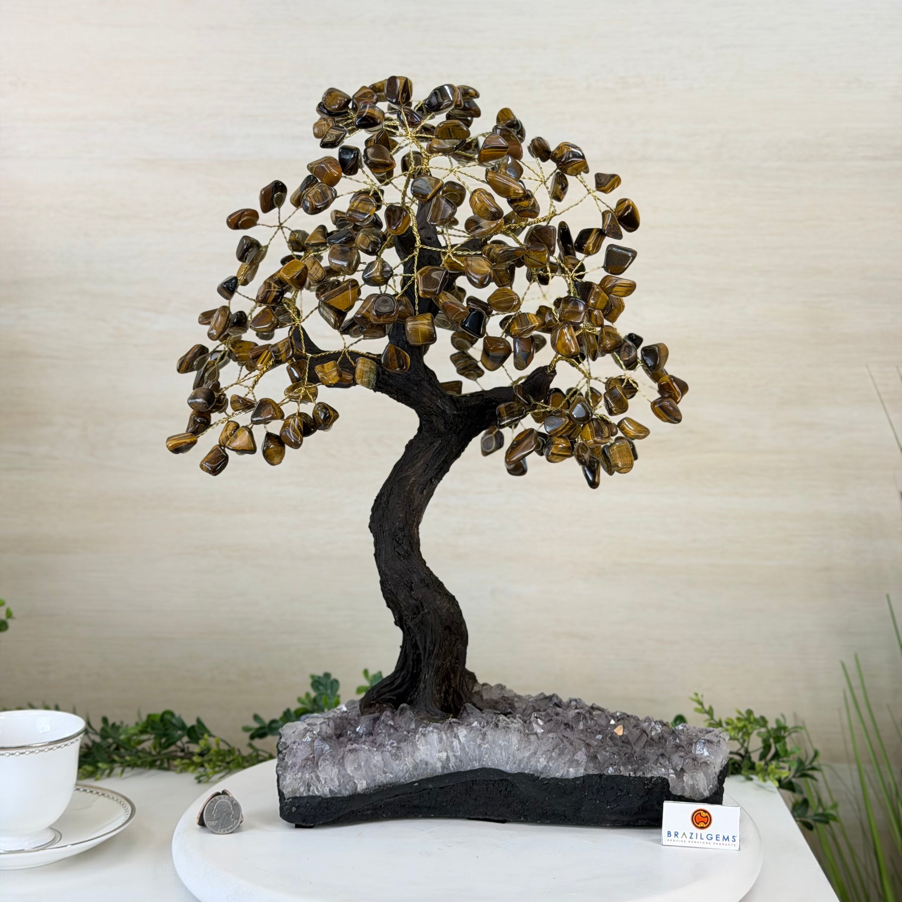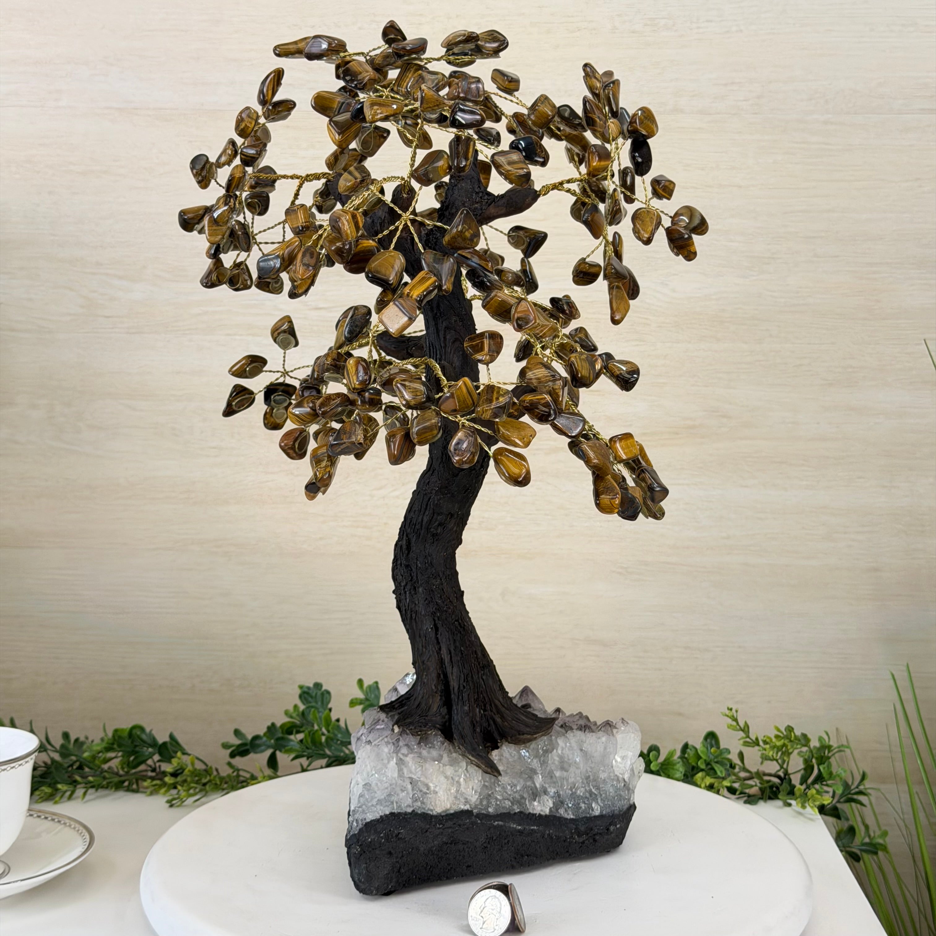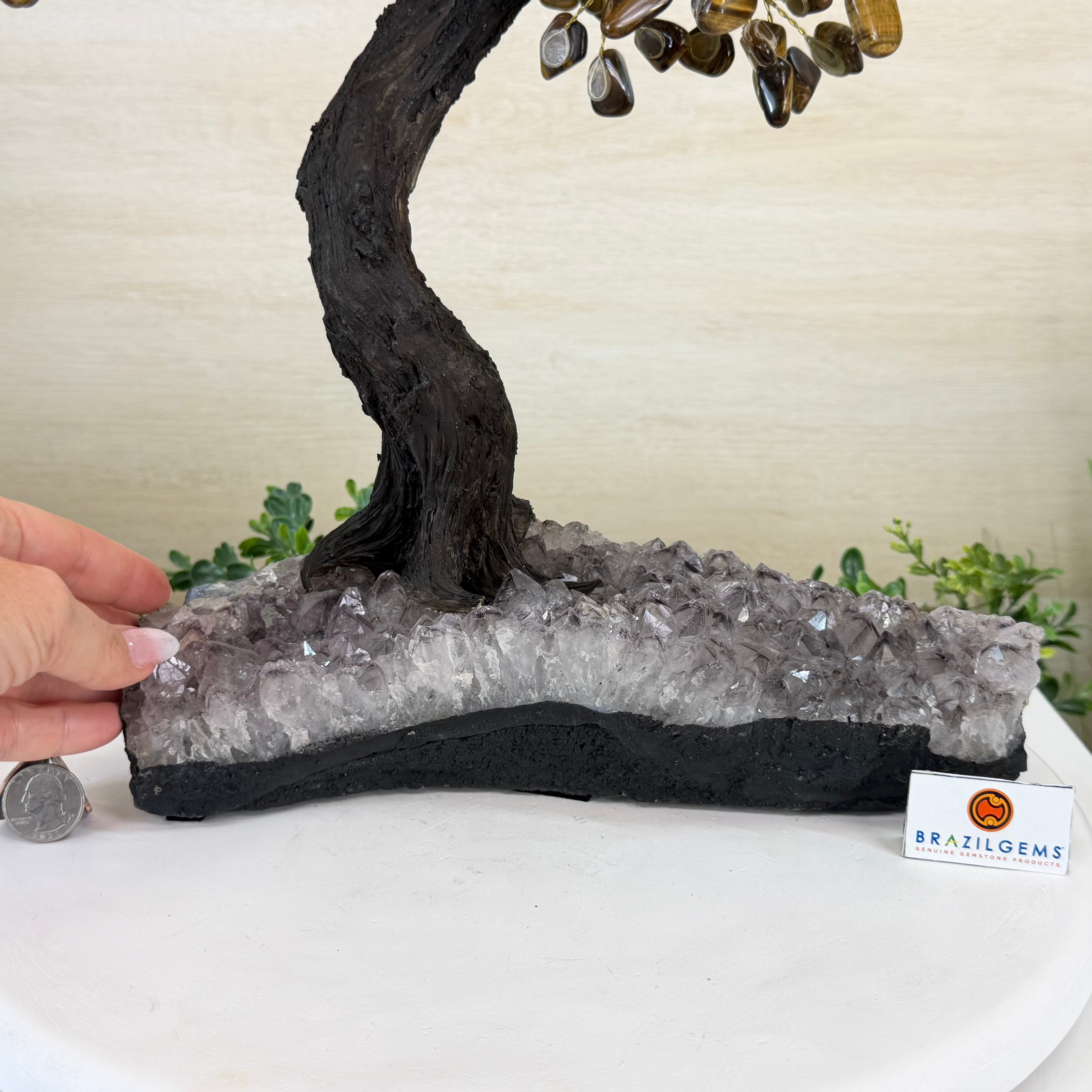17" Tall Tiger's Eye Bonsai Gemstone Tree, Amethyst base, 240 Gems #5405TIGE-001
