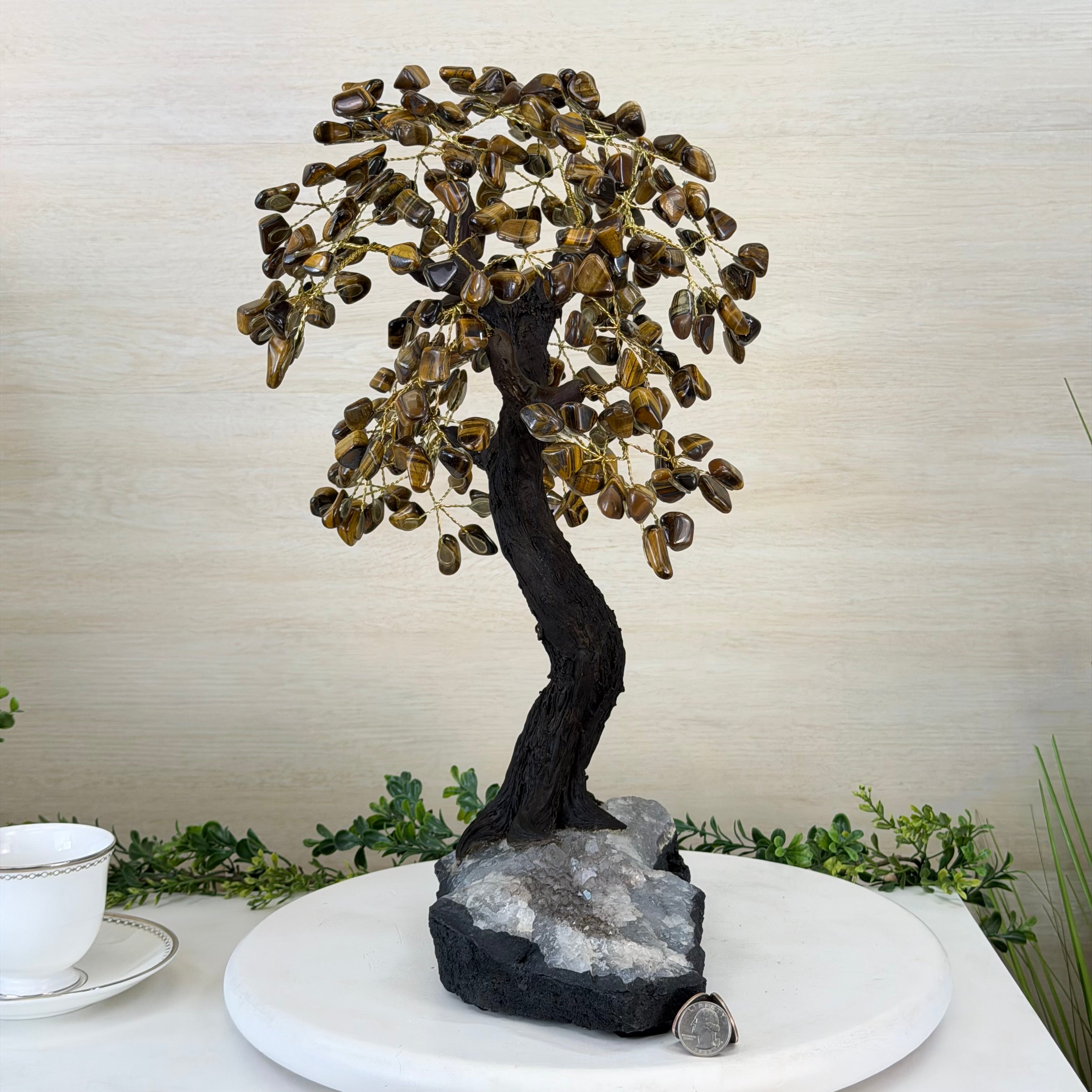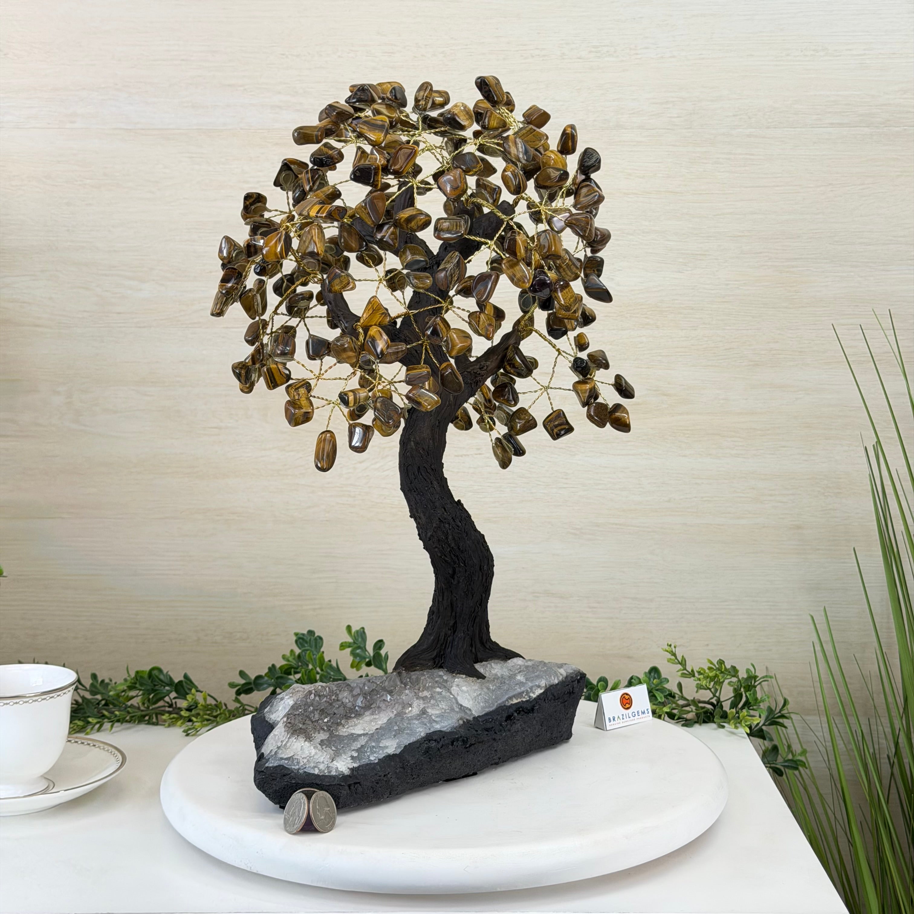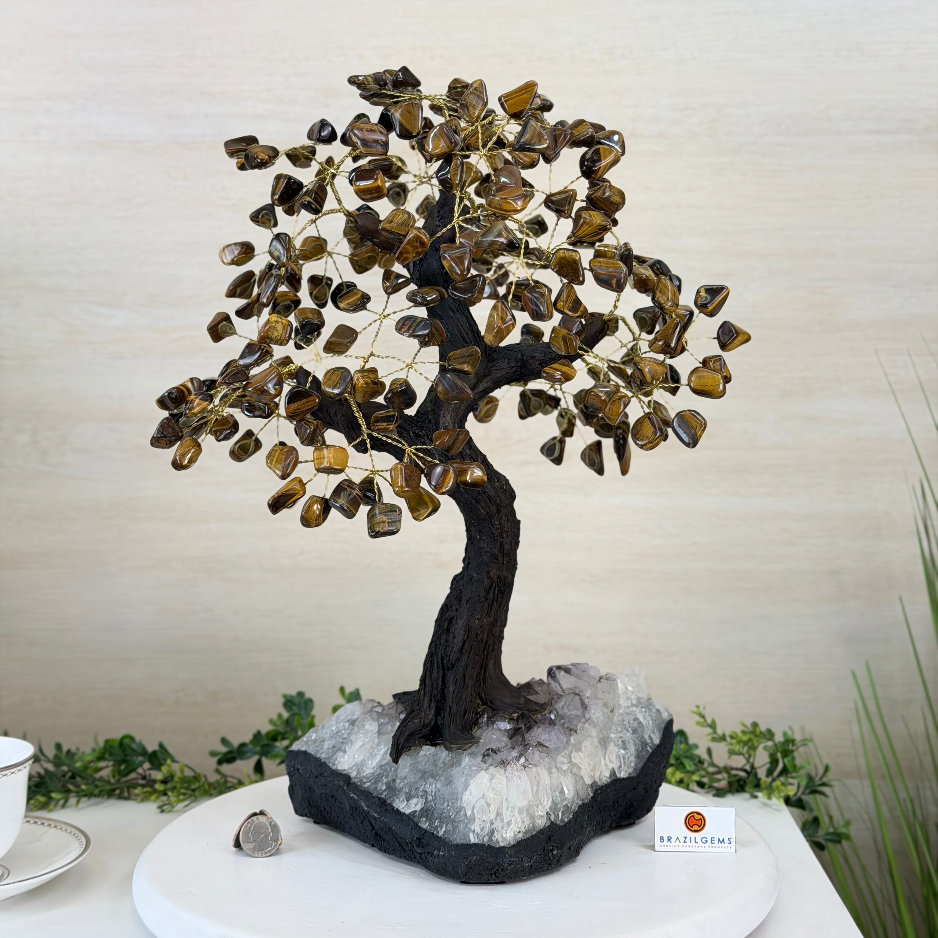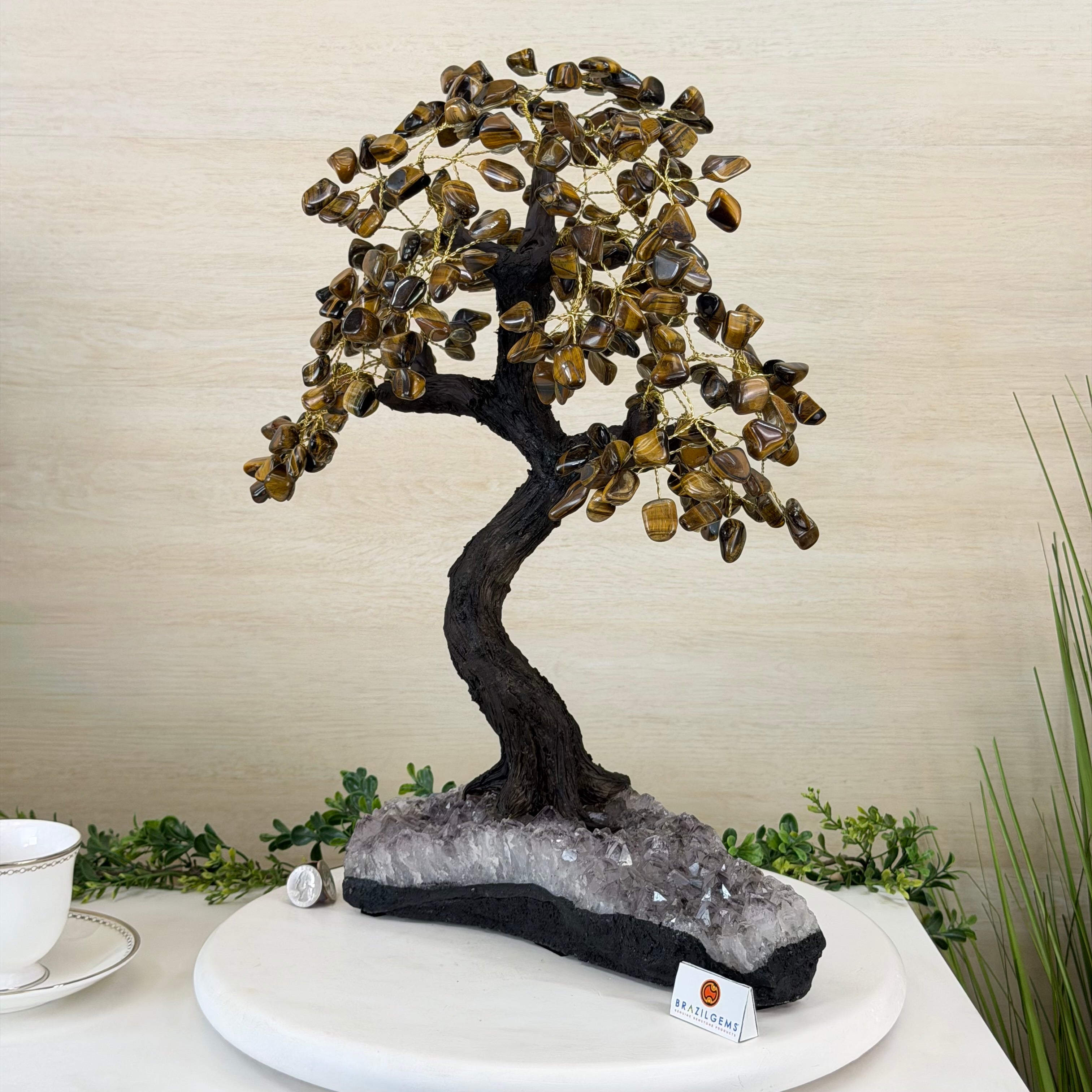 17" Tall Tiger's Eye Bonsai Gemstone Tree, Amethyst base, 240 Gems #5405TIGE-001
