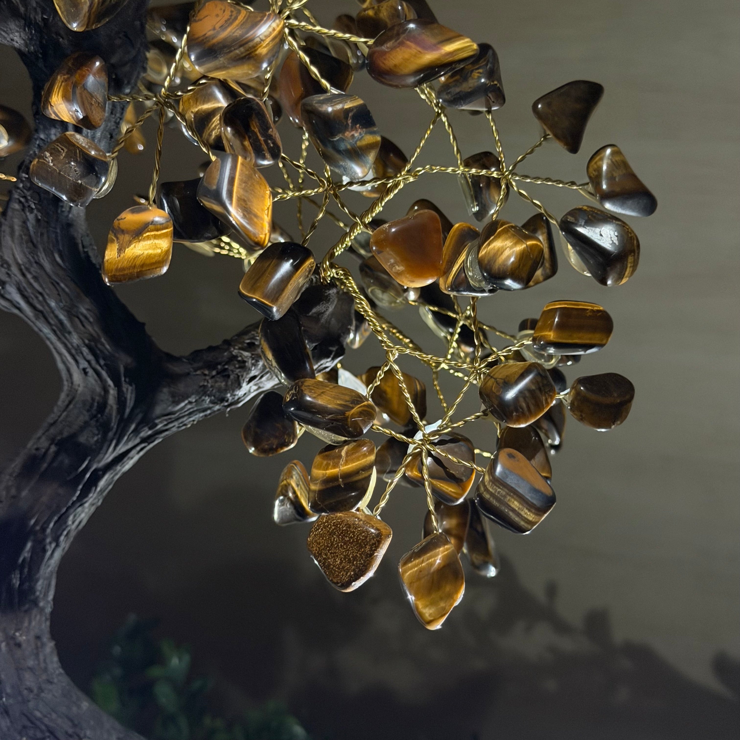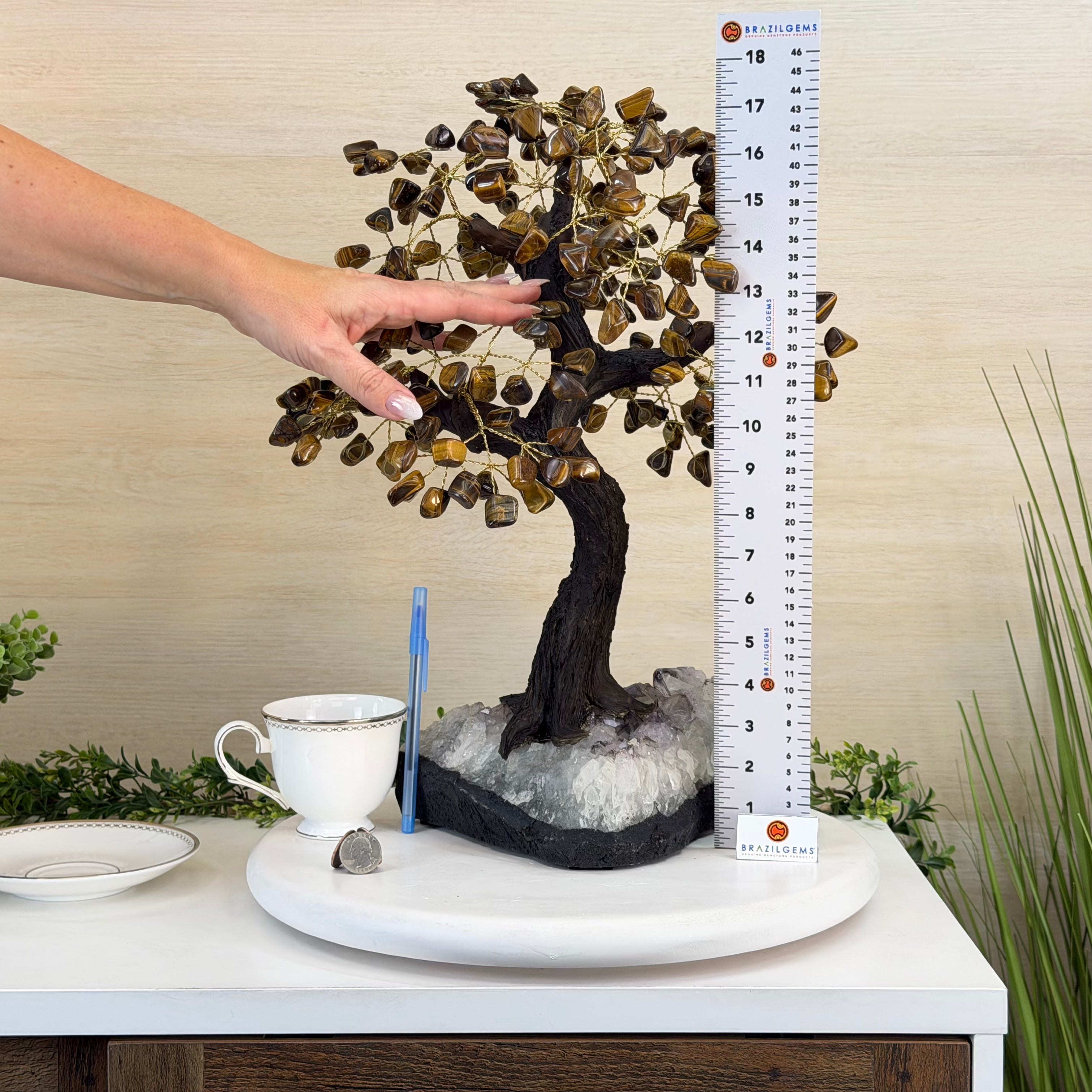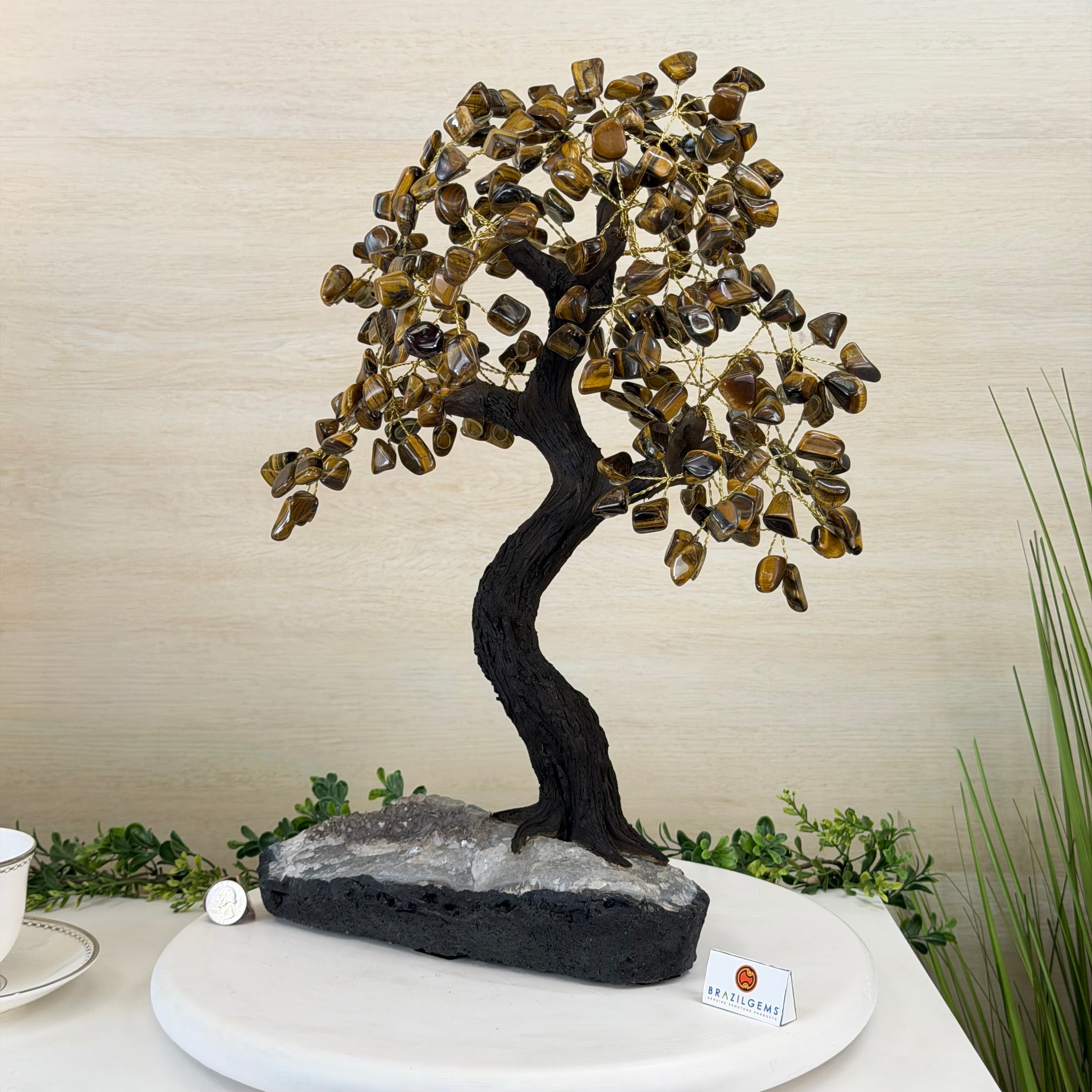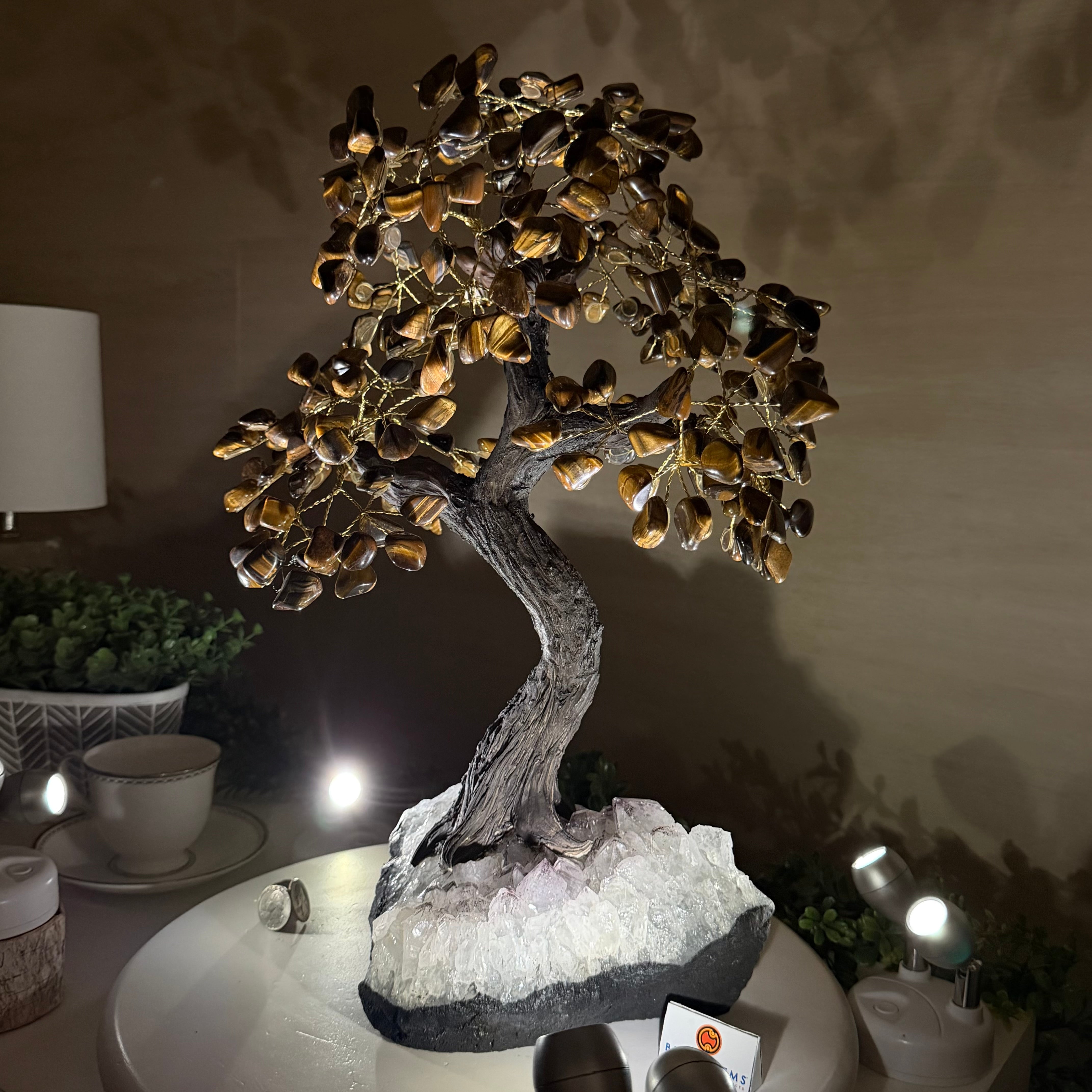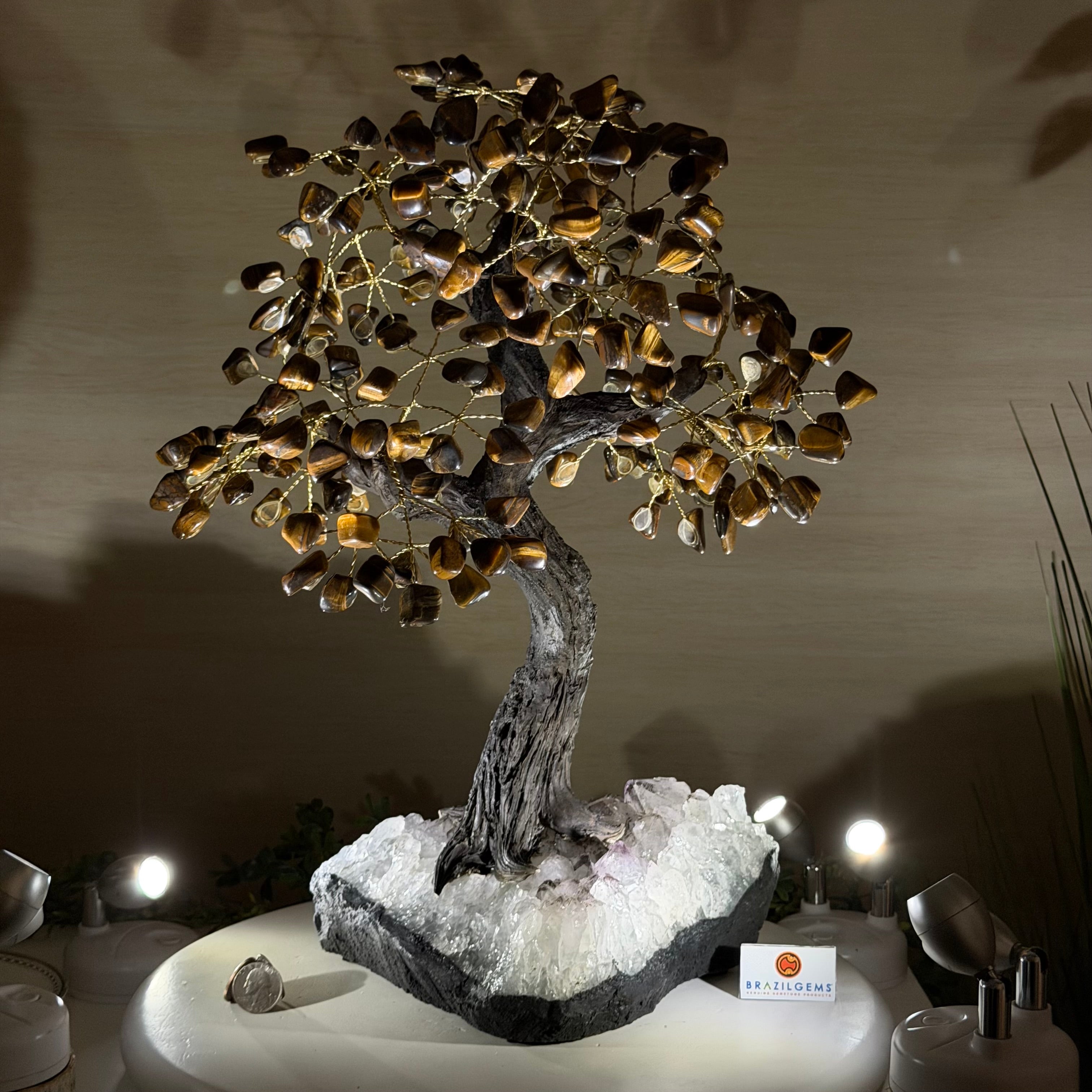 17" Tall Tiger's Eye Bonsai Gemstone Tree, Amethyst base, 240 Gems #5405TIGE-001