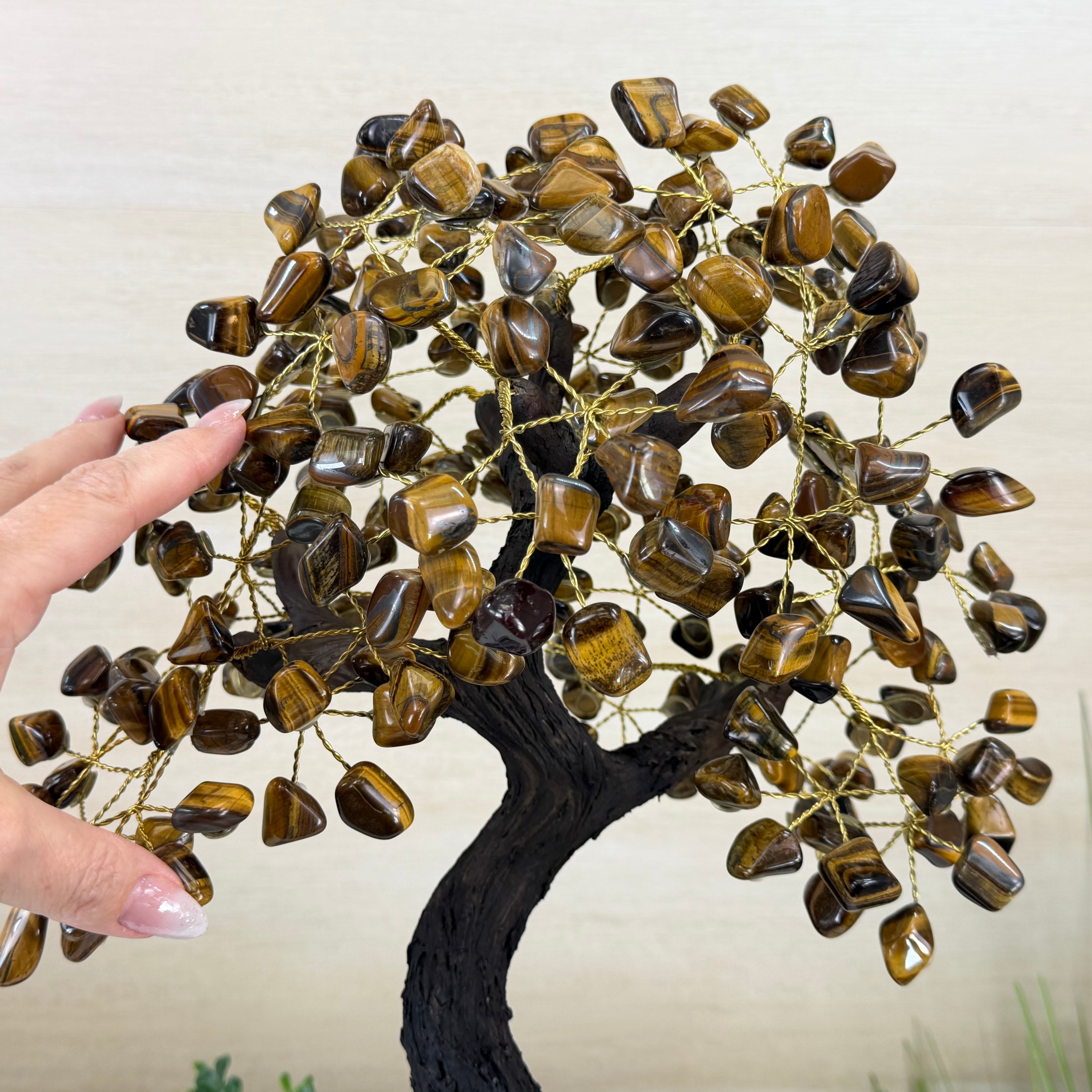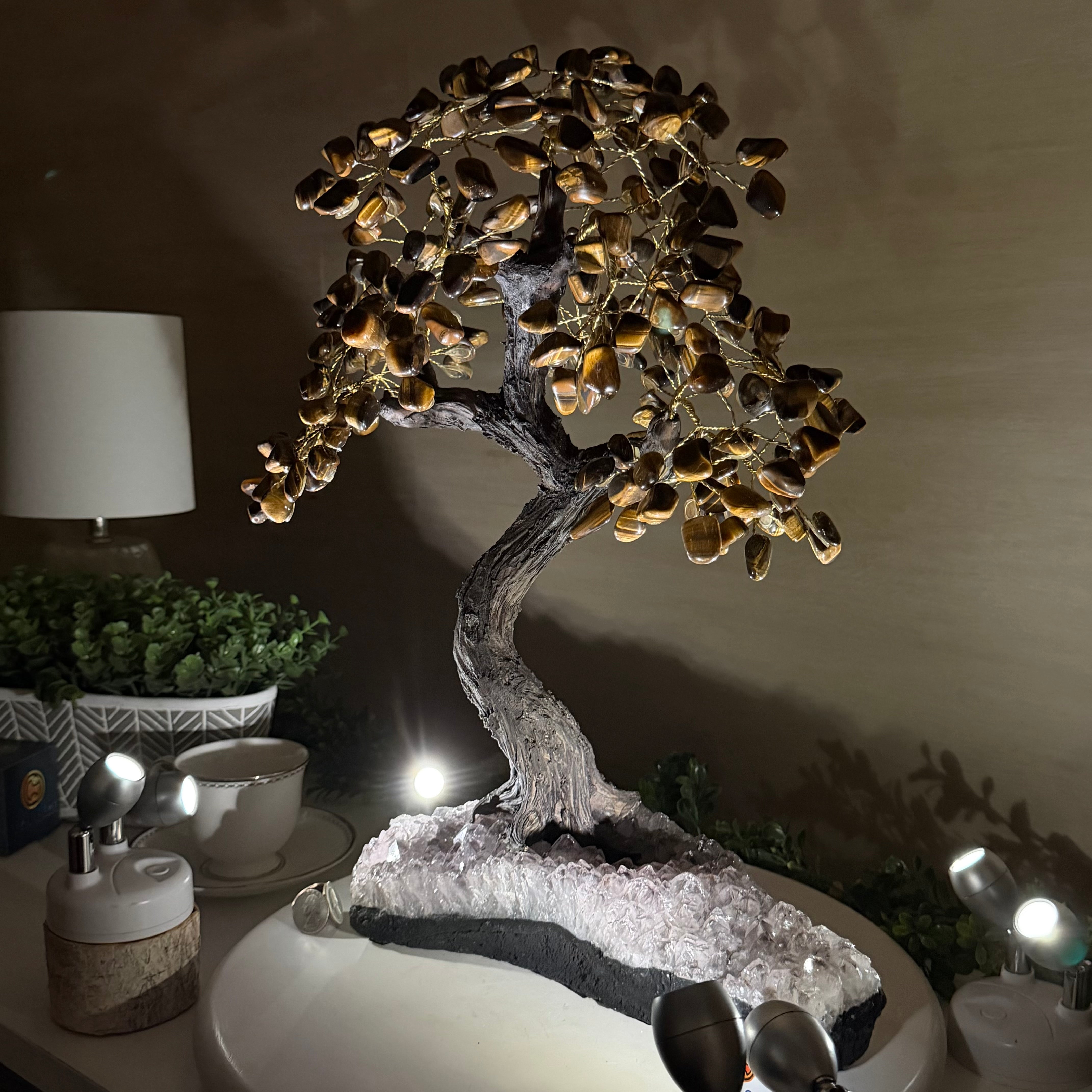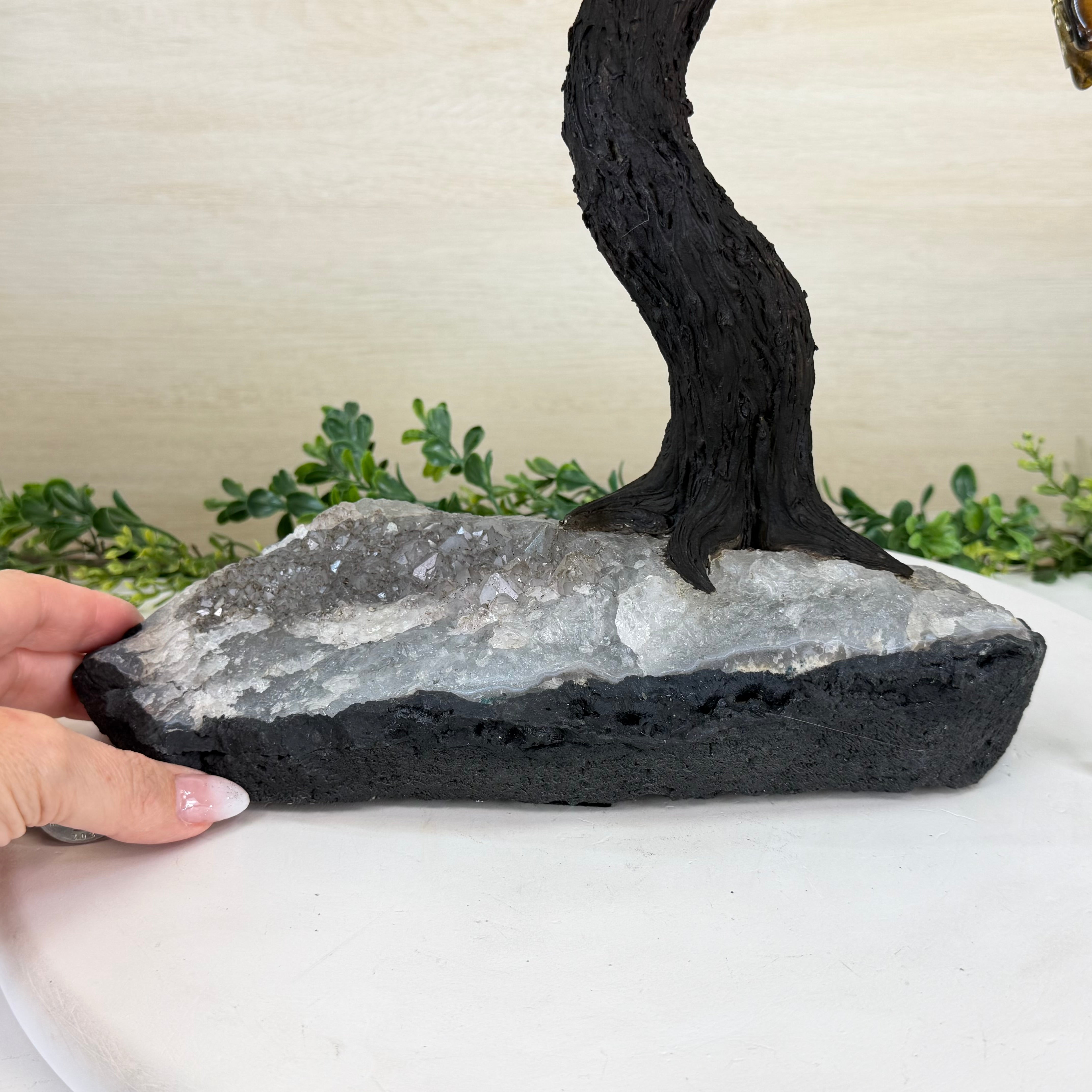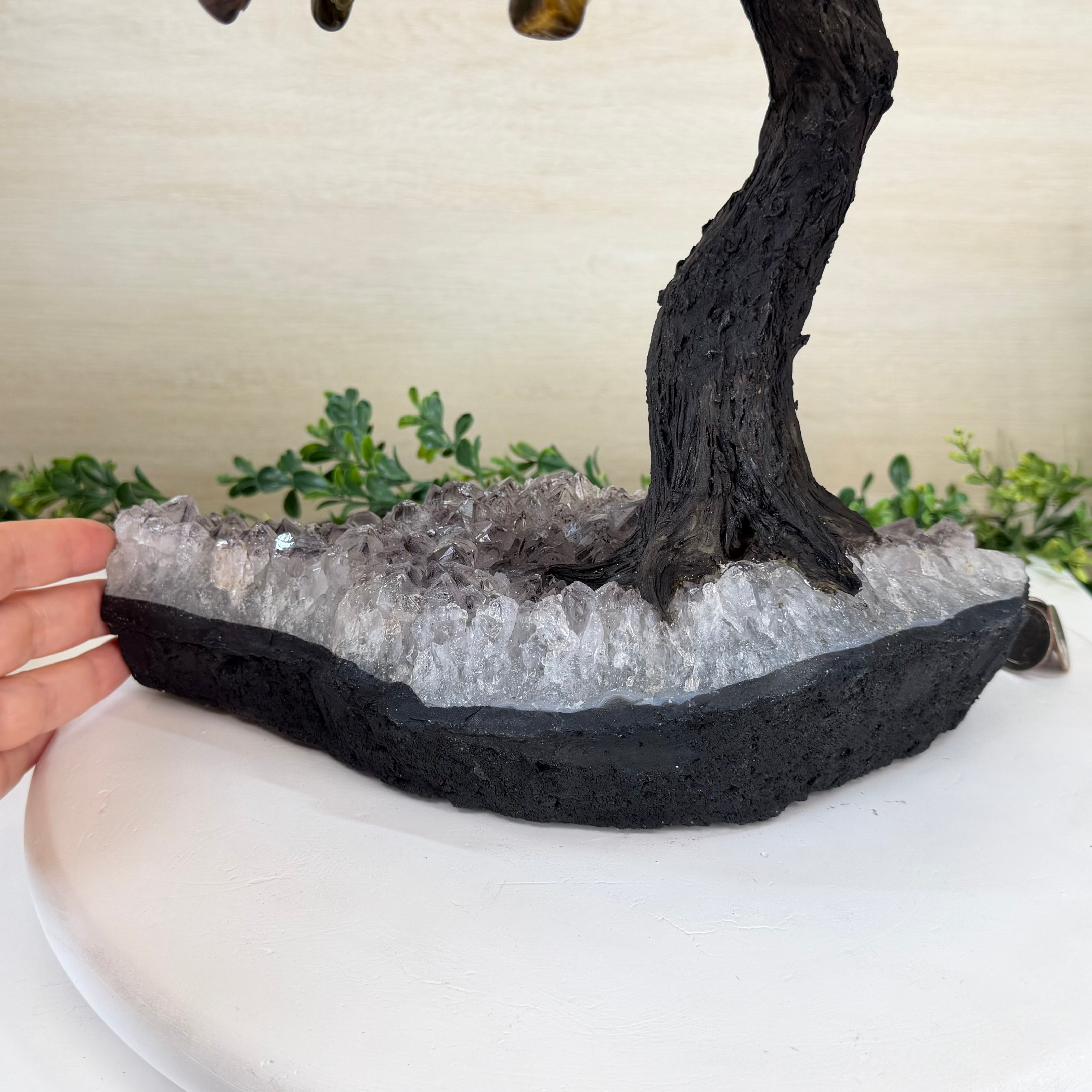 17" Tall Tiger's Eye Bonsai Gemstone Tree, Amethyst base, 240 Gems #5405TIGE-002
