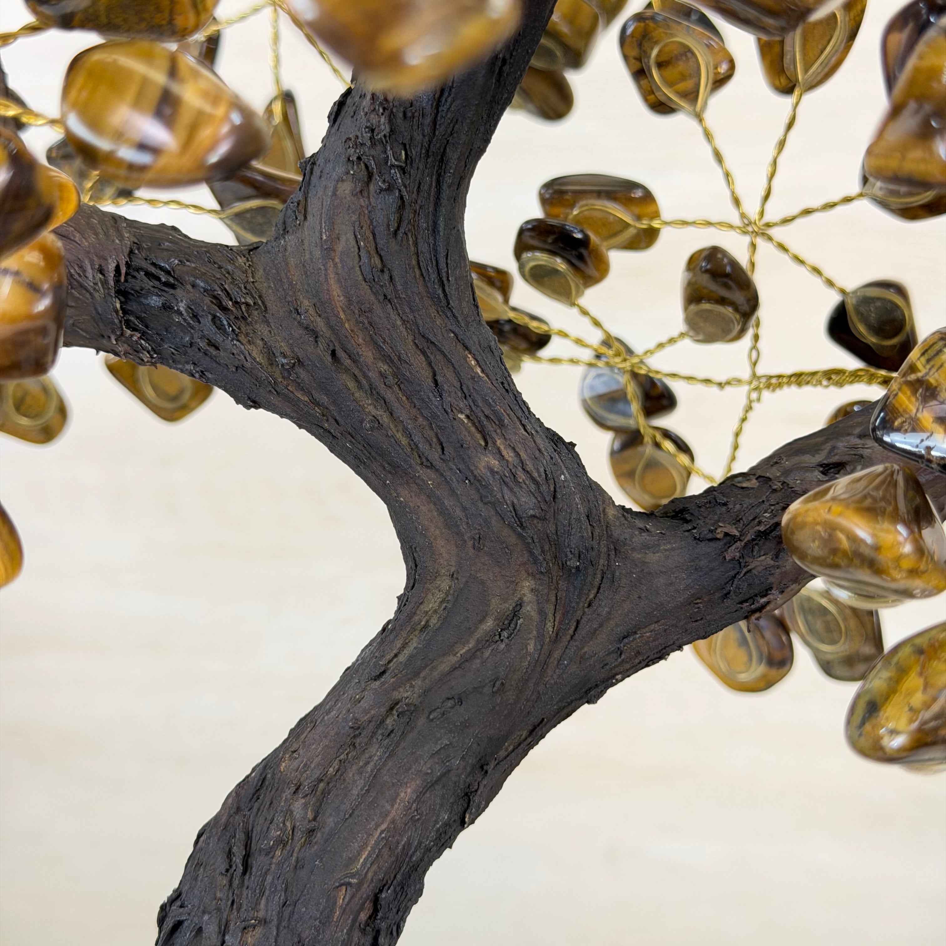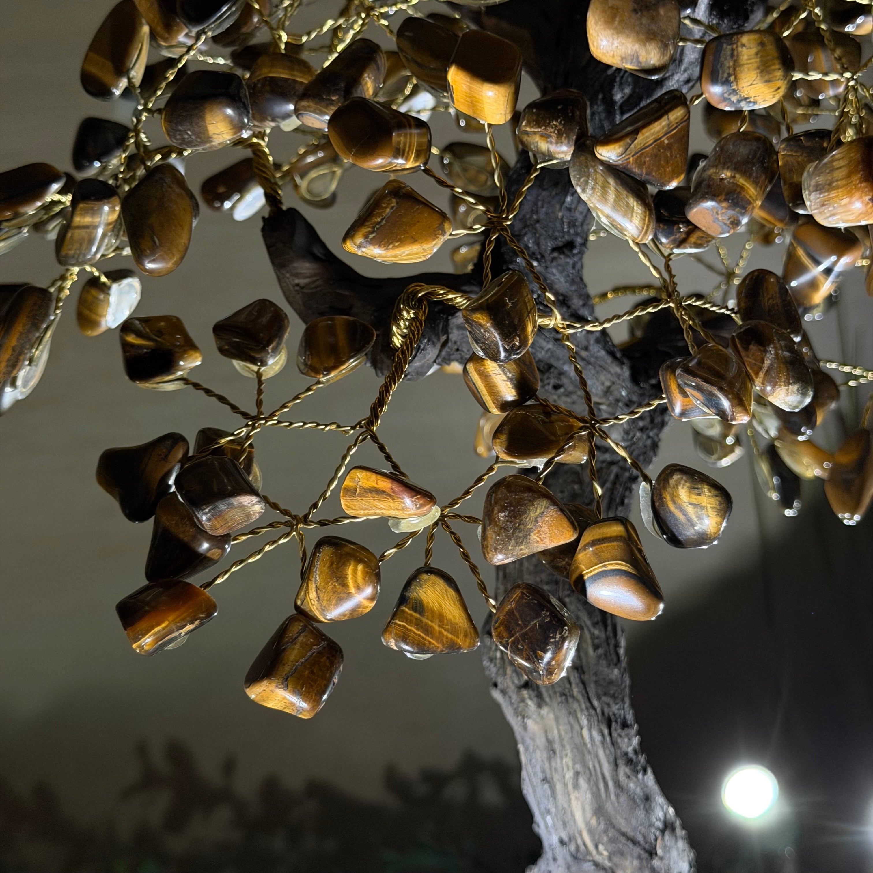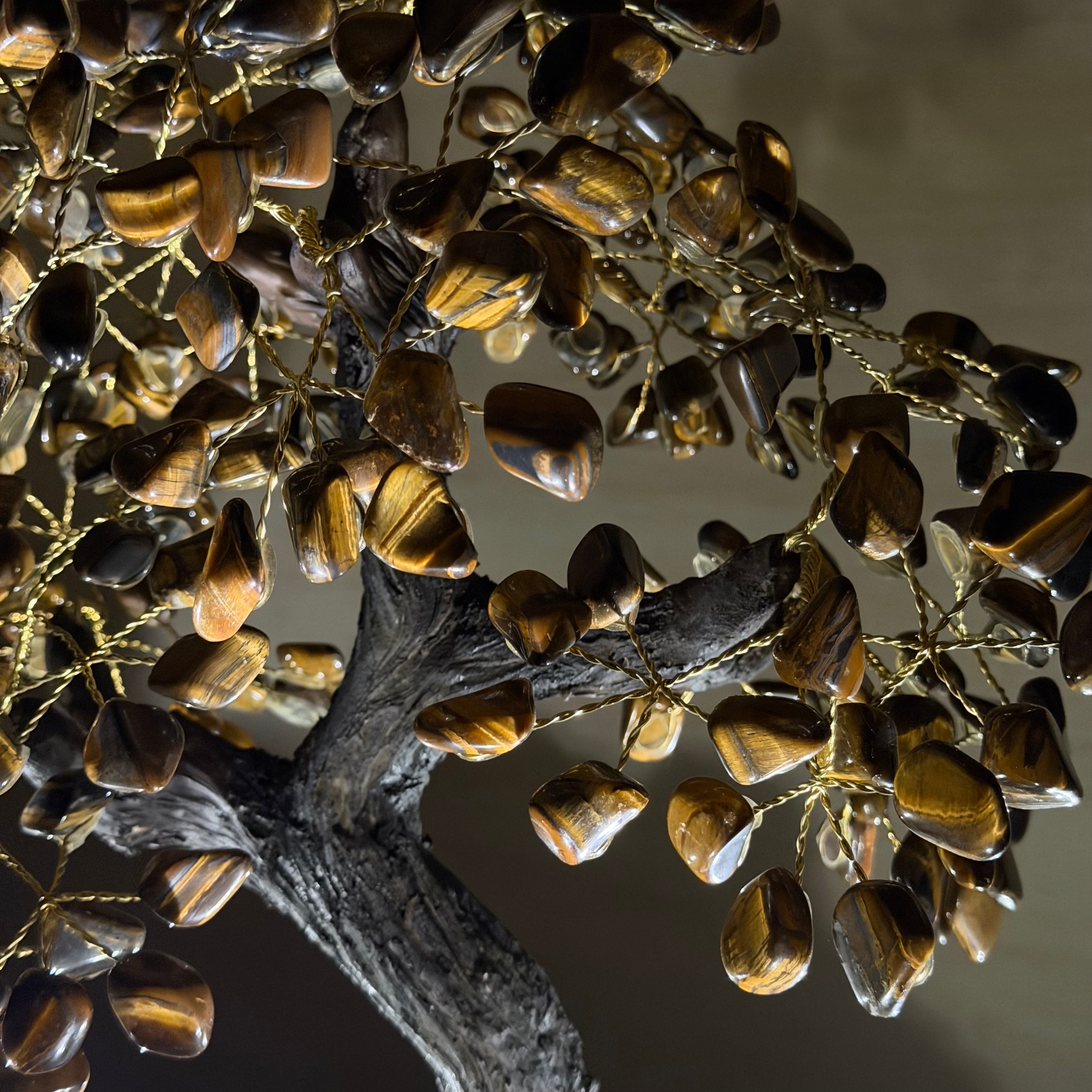 17" Tall Tiger's Eye Bonsai Gemstone Tree, Amethyst base, 240 Gems #5405TIGE-002