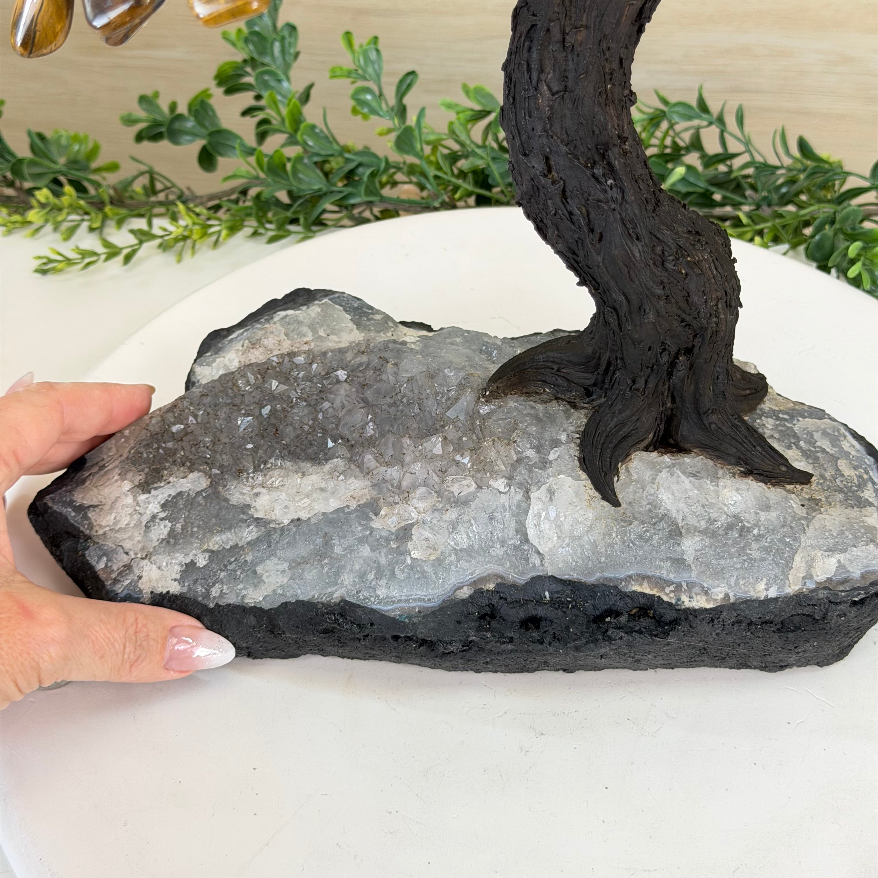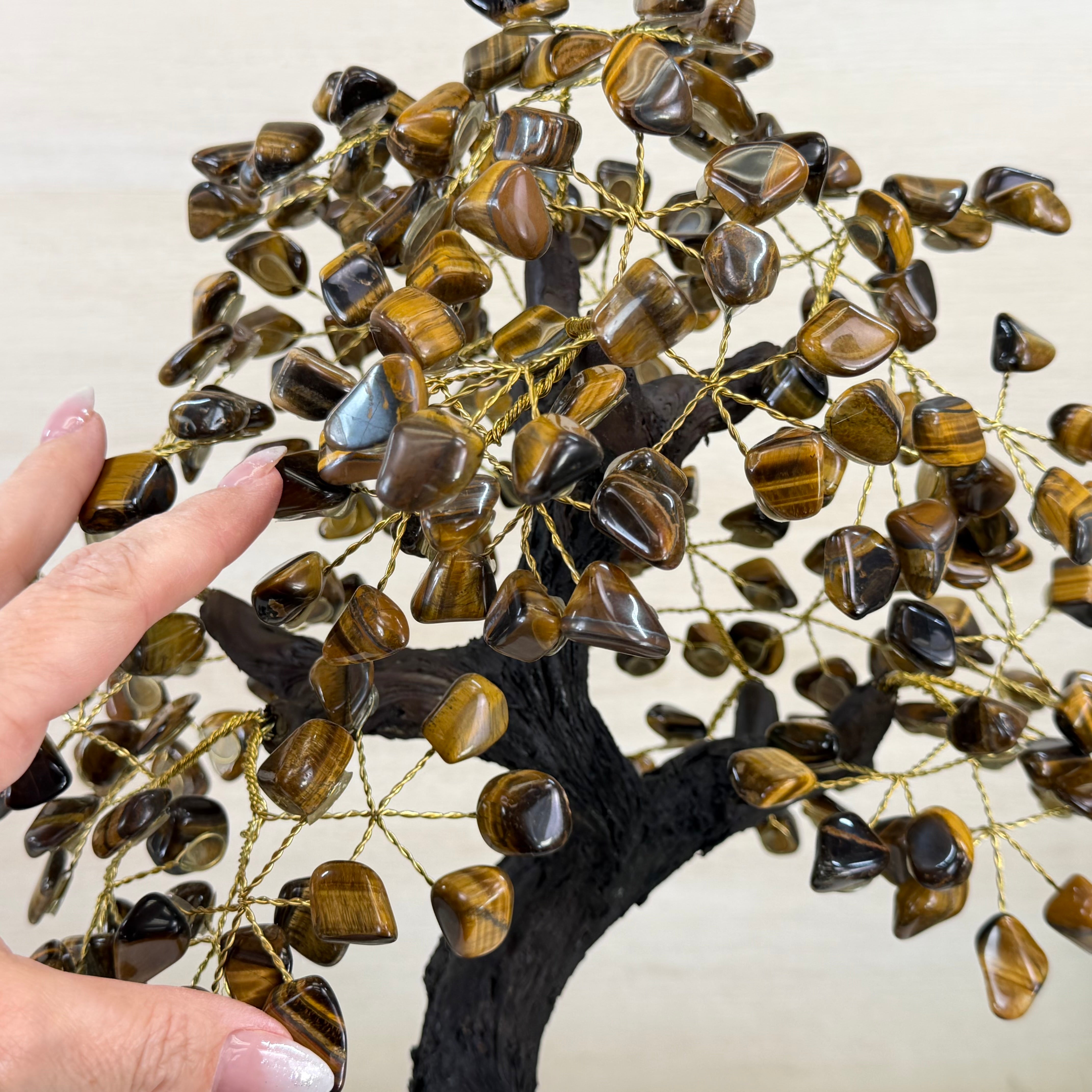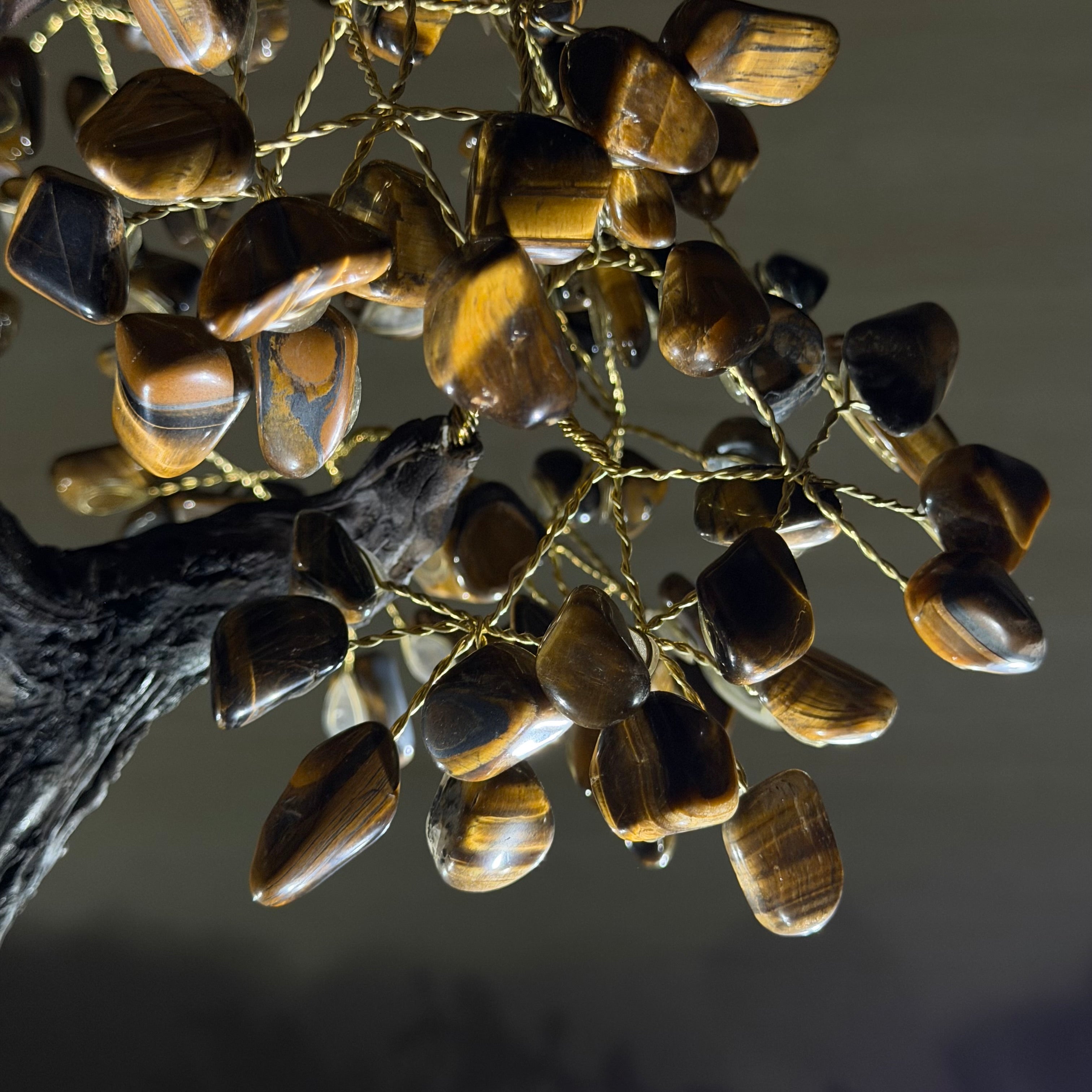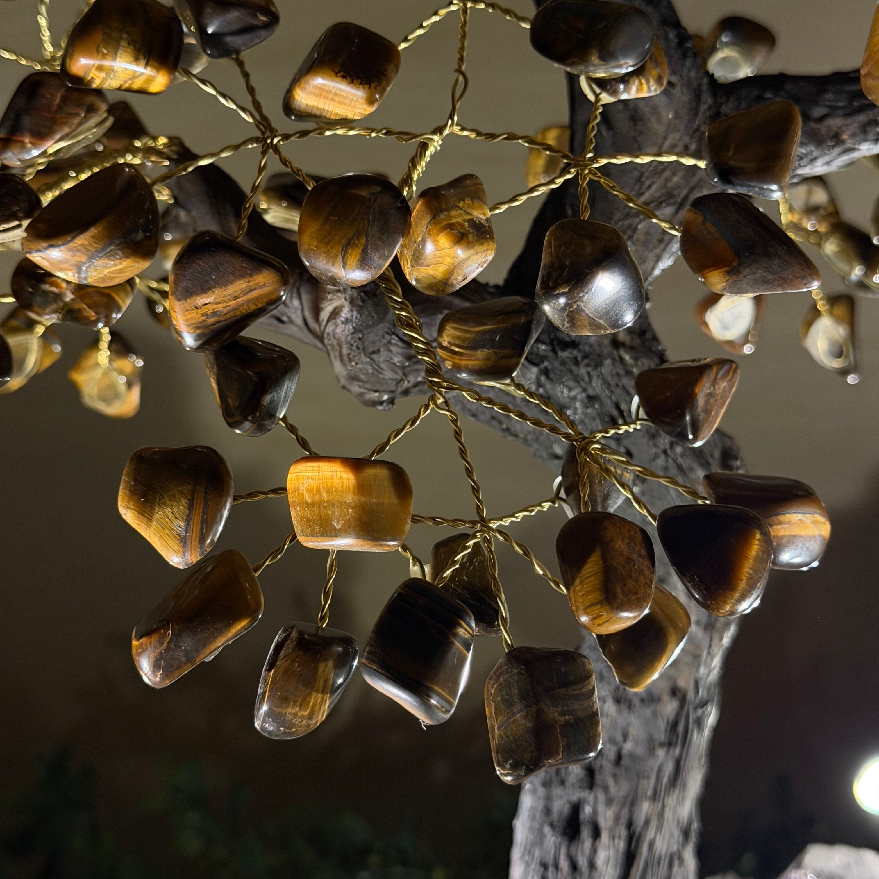 17" Tall Tiger's Eye Bonsai Gemstone Tree, Amethyst base, 240 Gems #5405TIGE-002