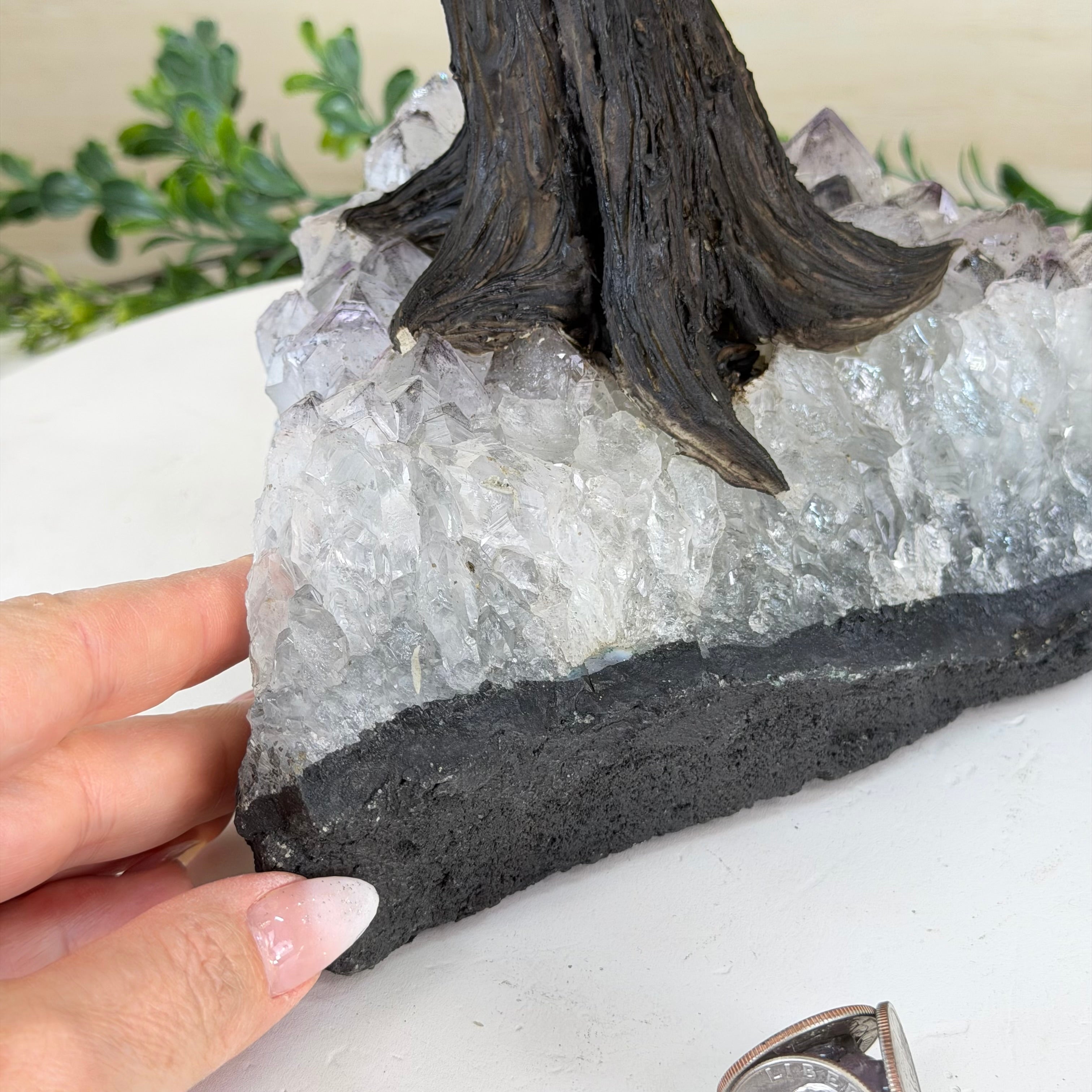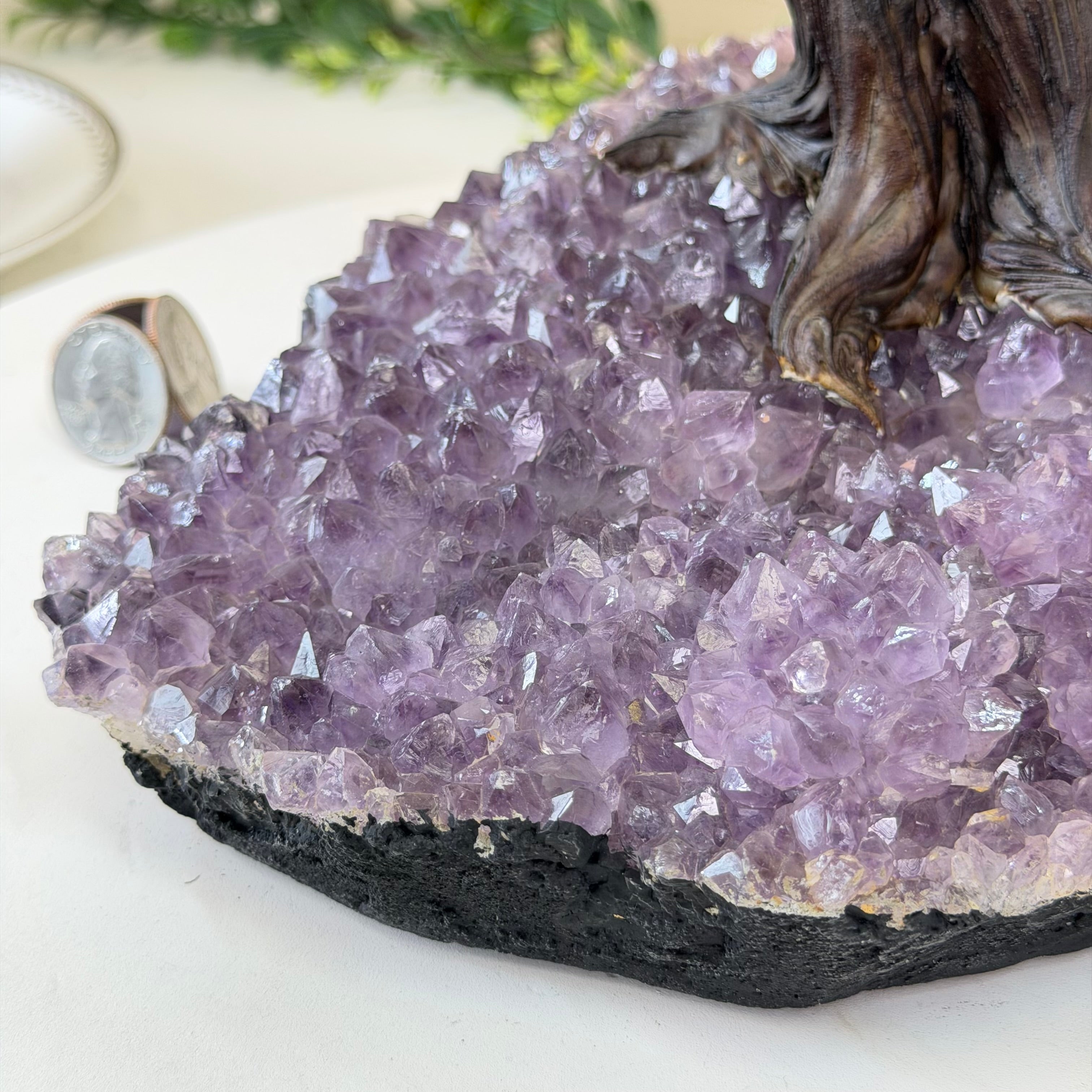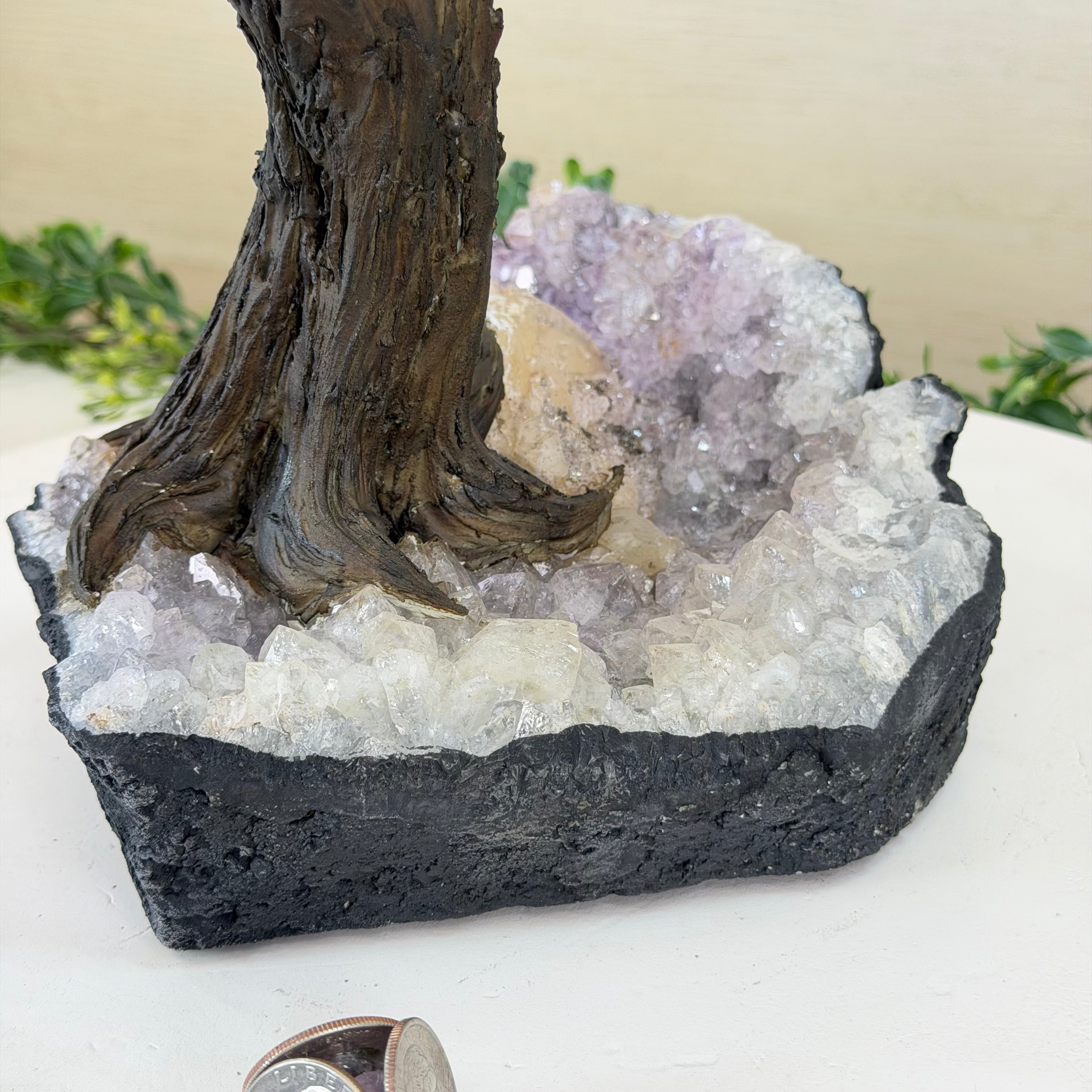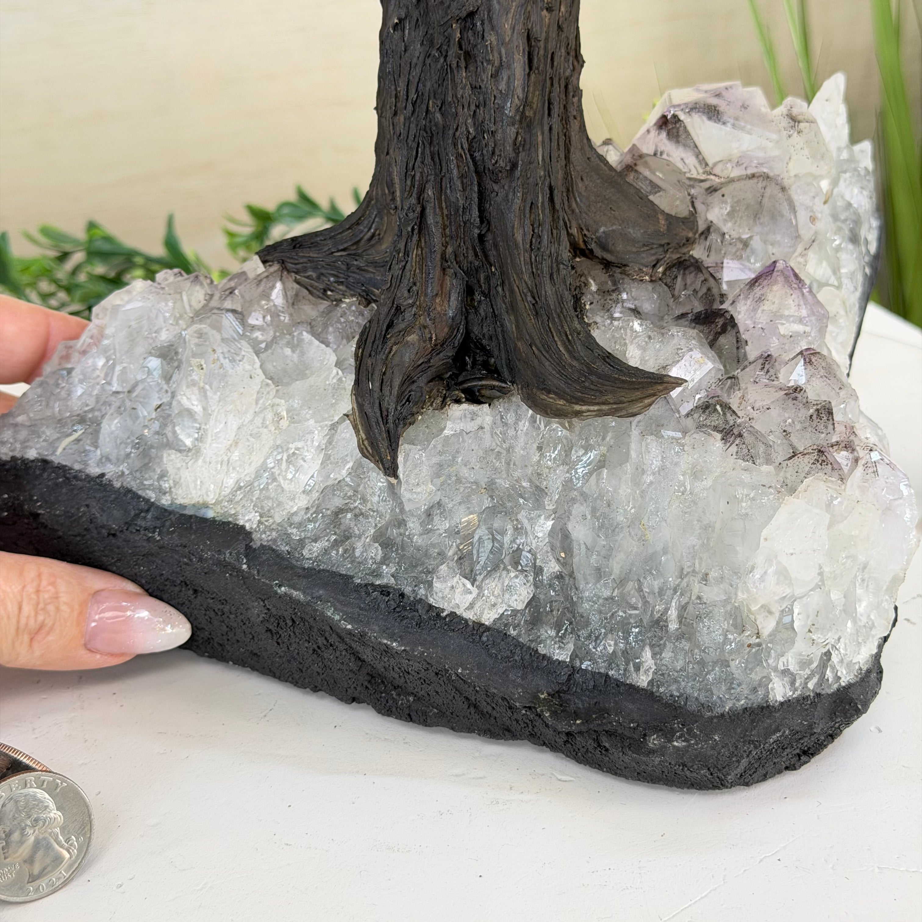 21.1" Tall Clear Quartz Gemstone Tree on an Amethyst Base, 540 gems #5406CQ-011