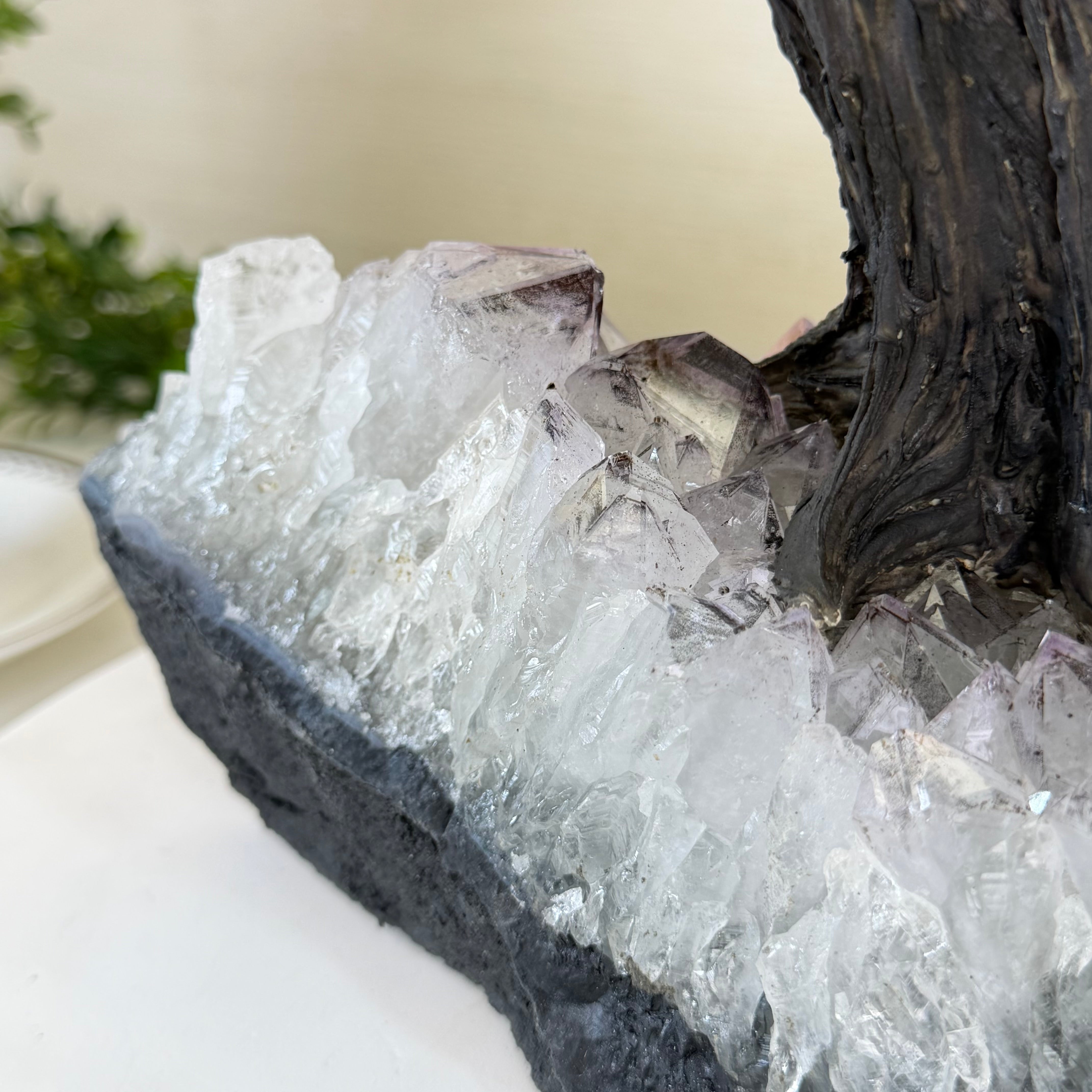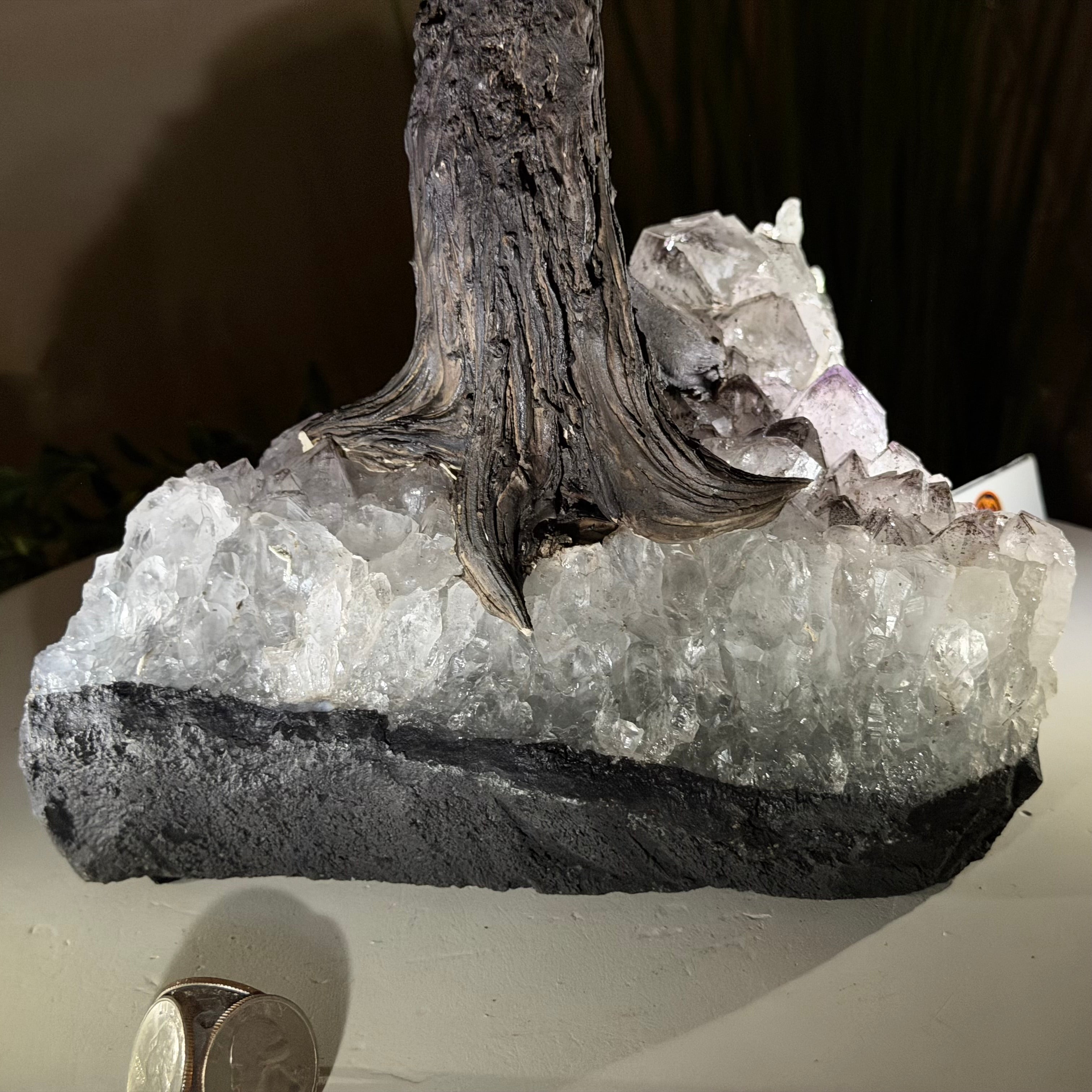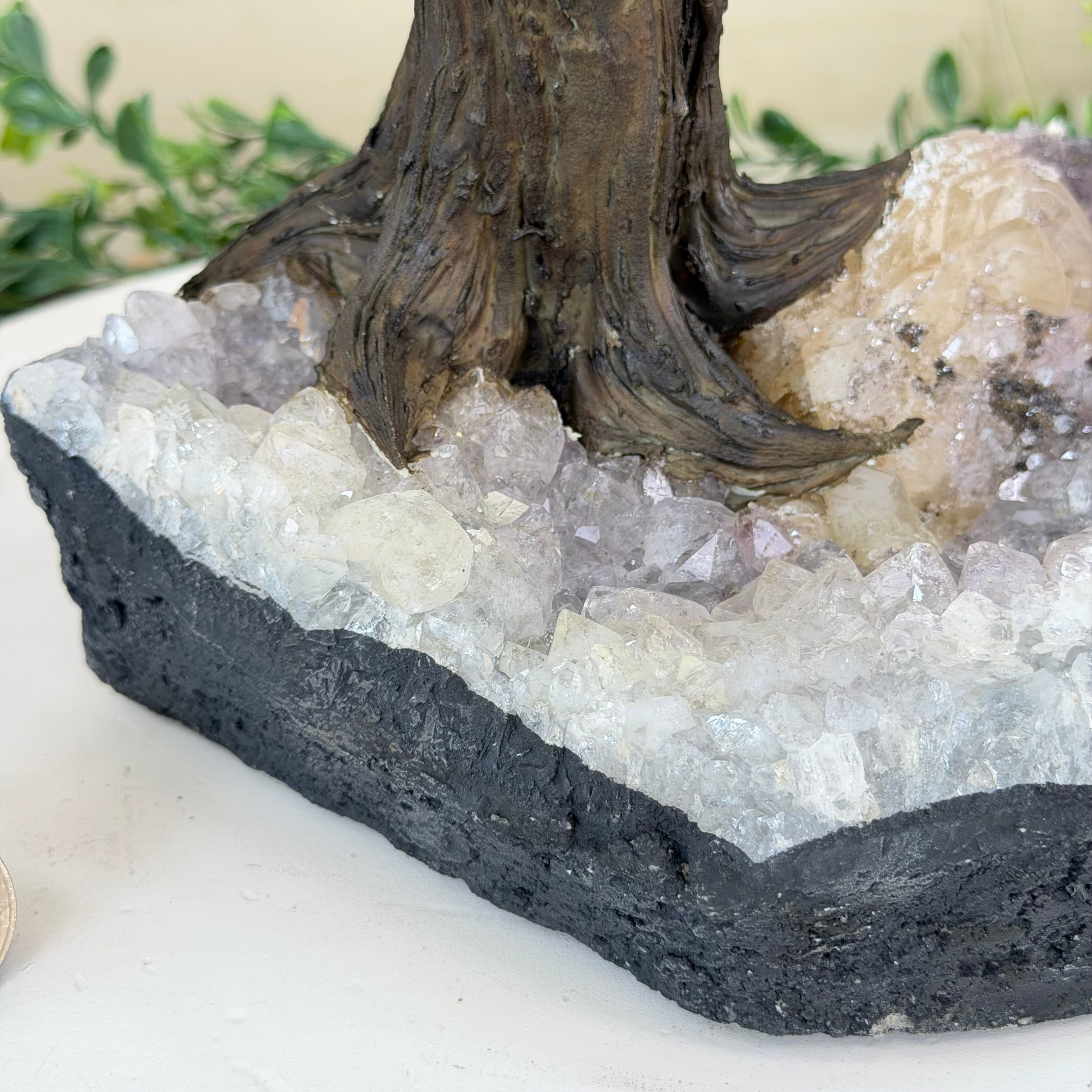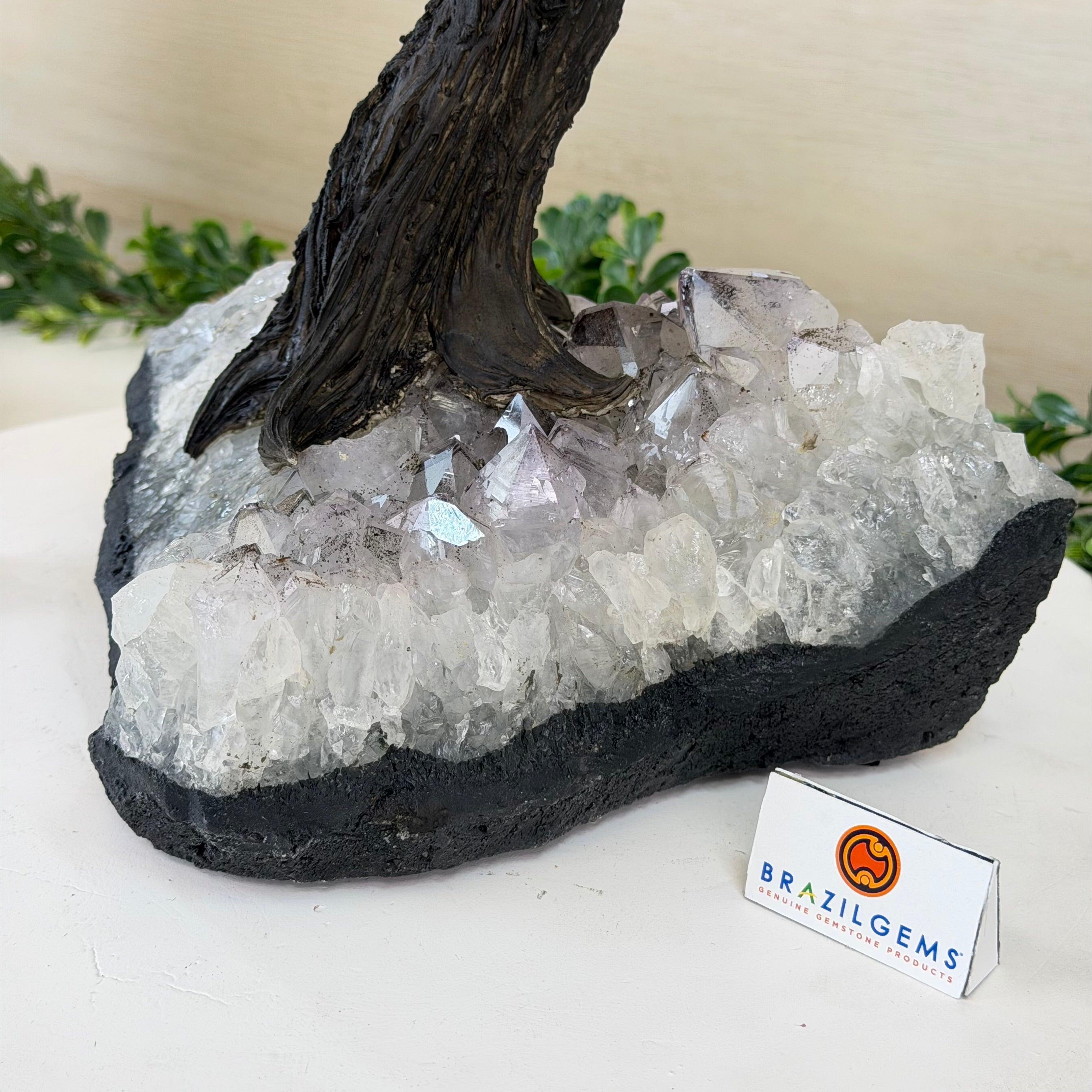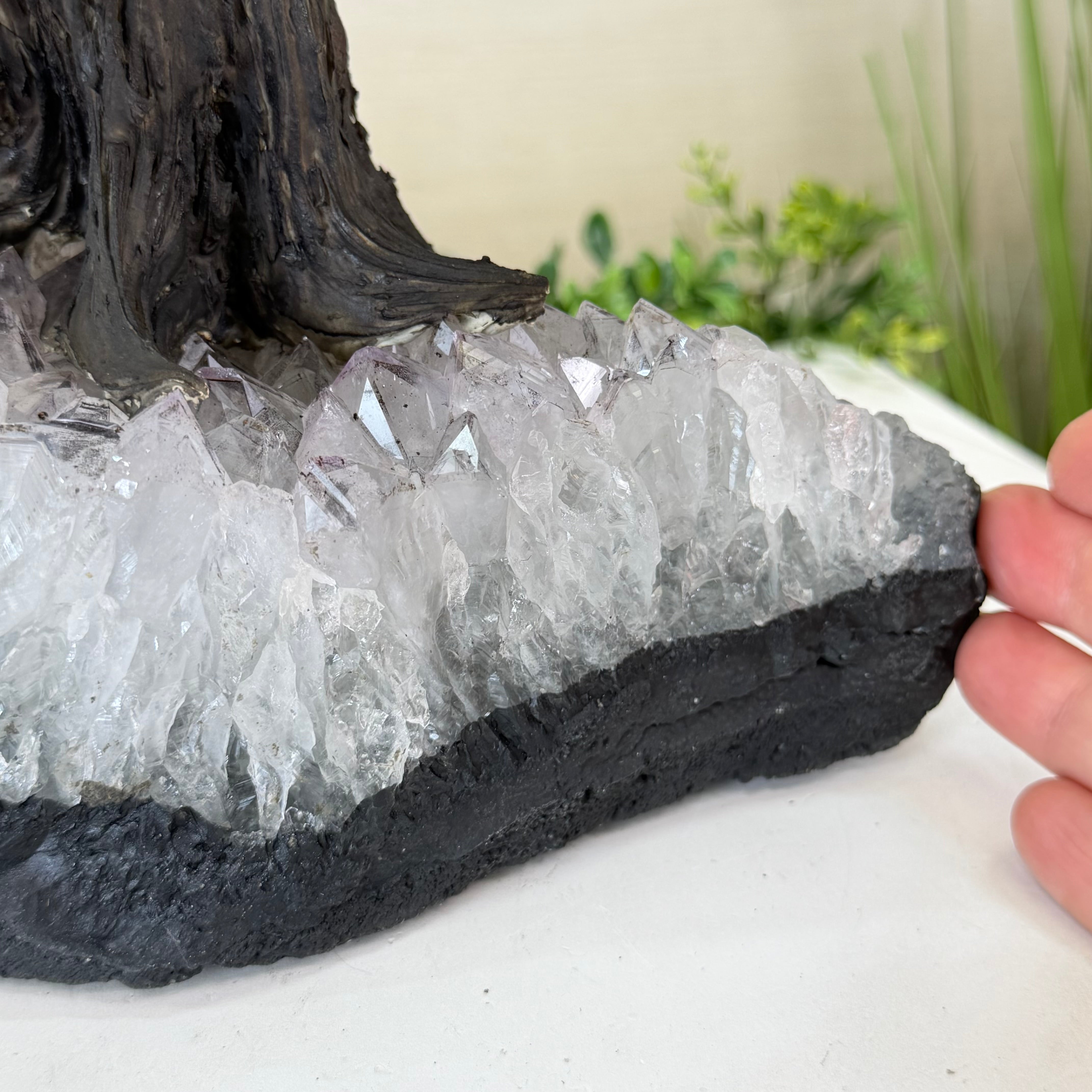 21.1" Tall Clear Quartz Gemstone Tree on an Amethyst Base, 540 gems #5406CQ-011