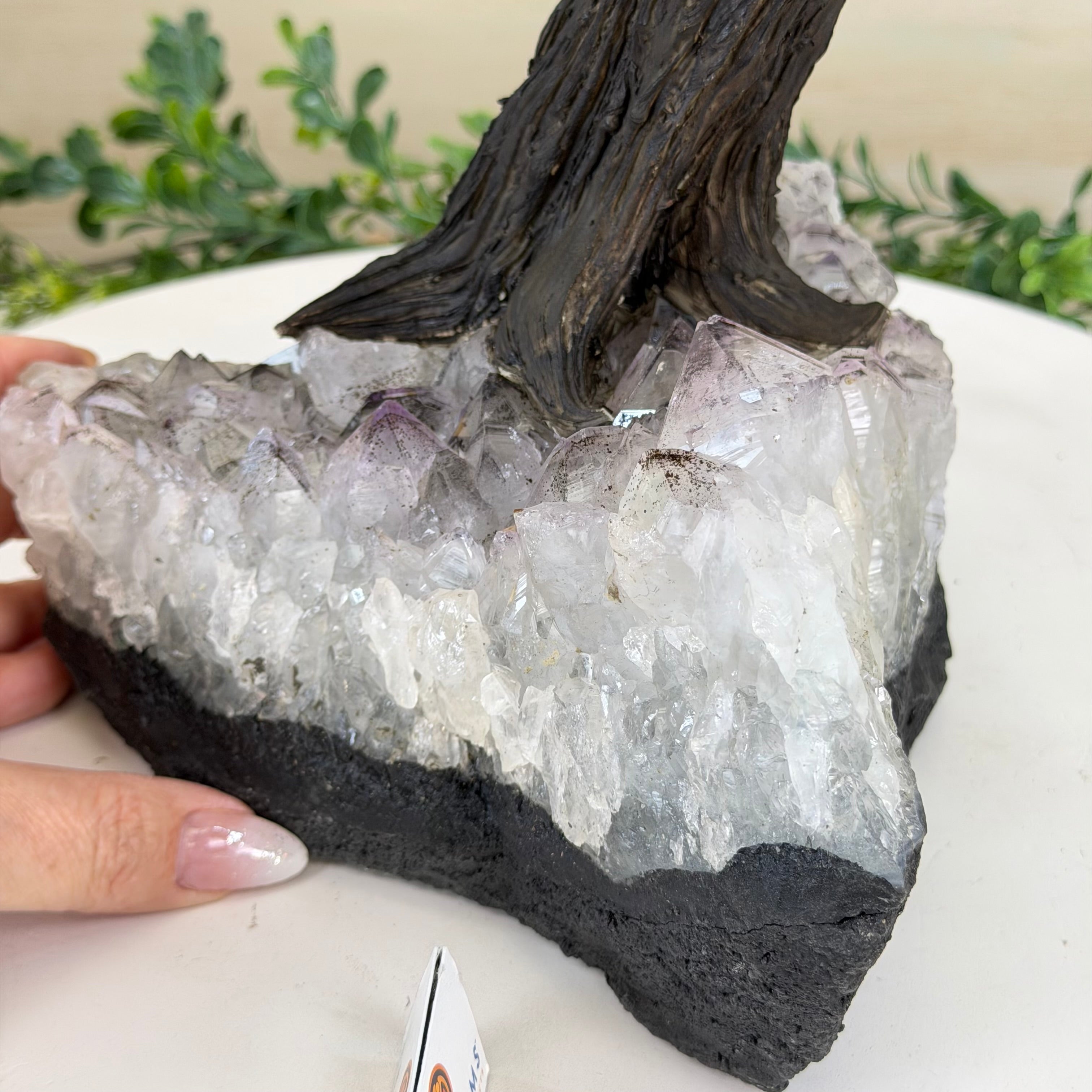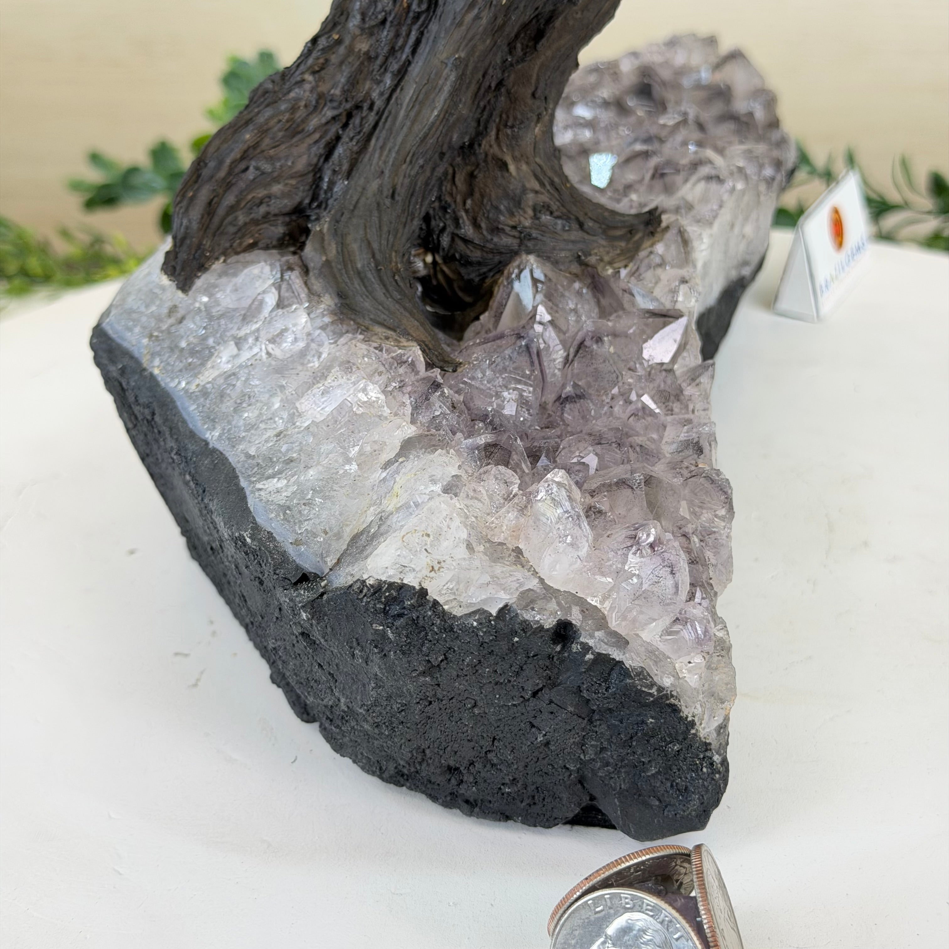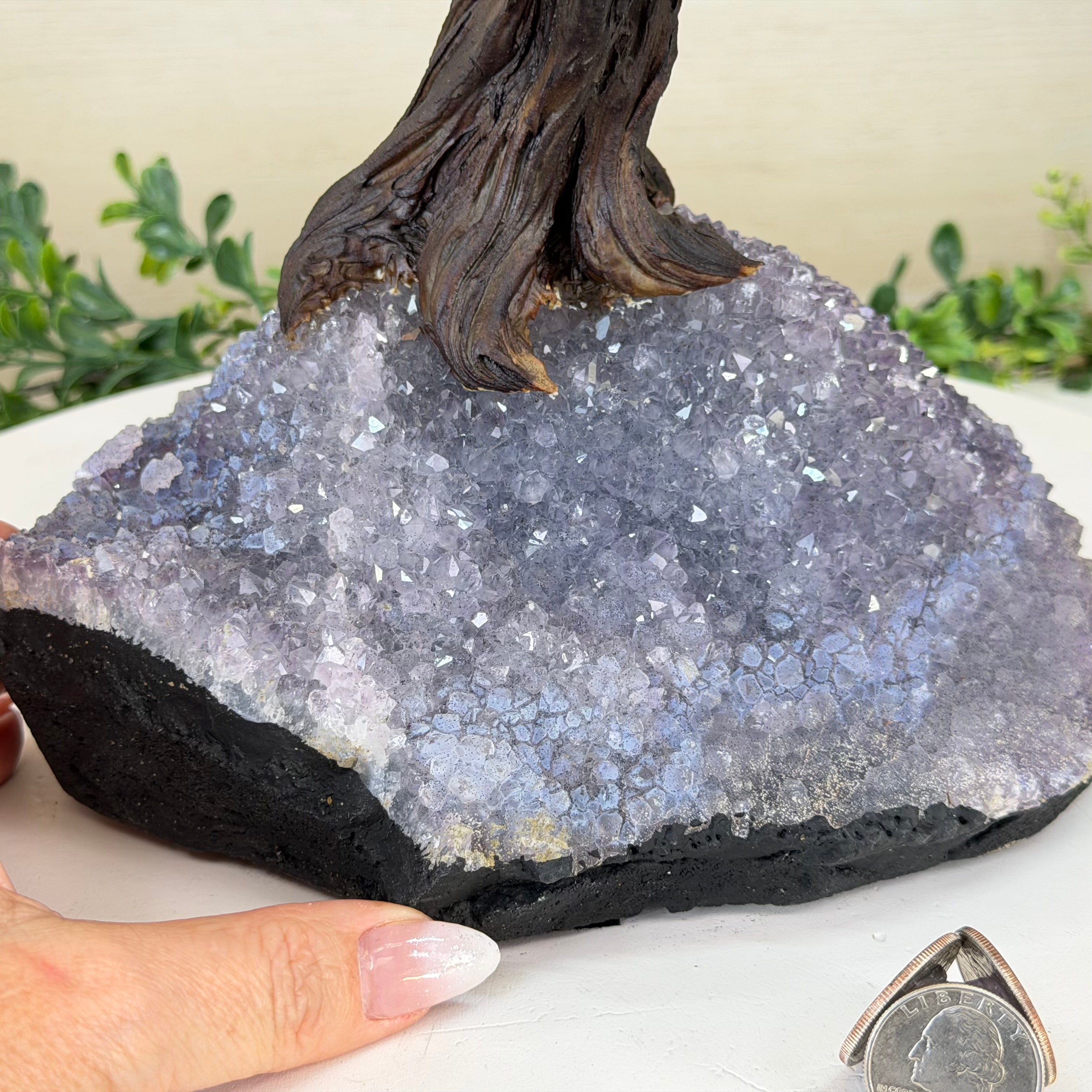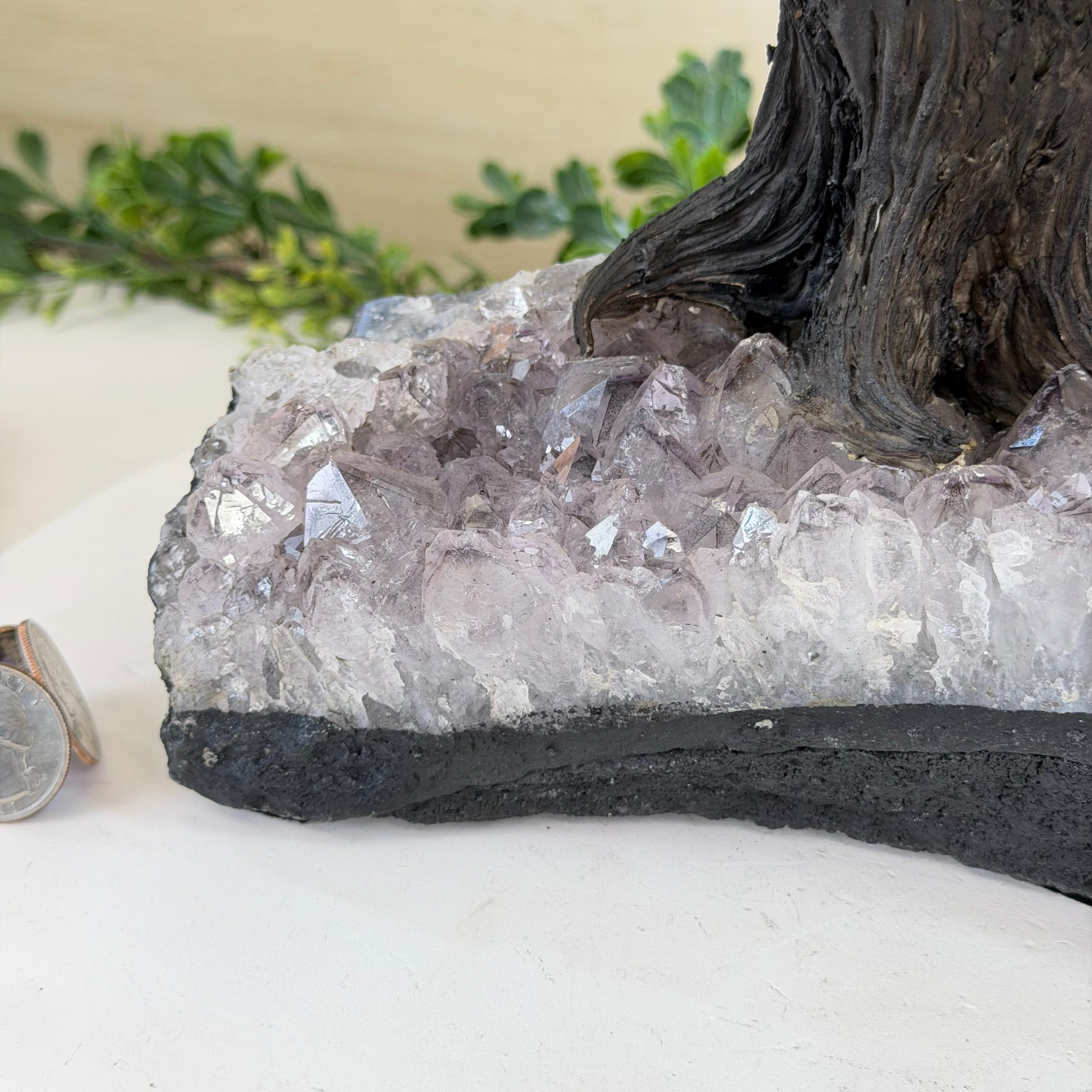 21.1" Tall Clear Quartz Gemstone Tree on an Amethyst Base, 540 gems #5406CQ-011