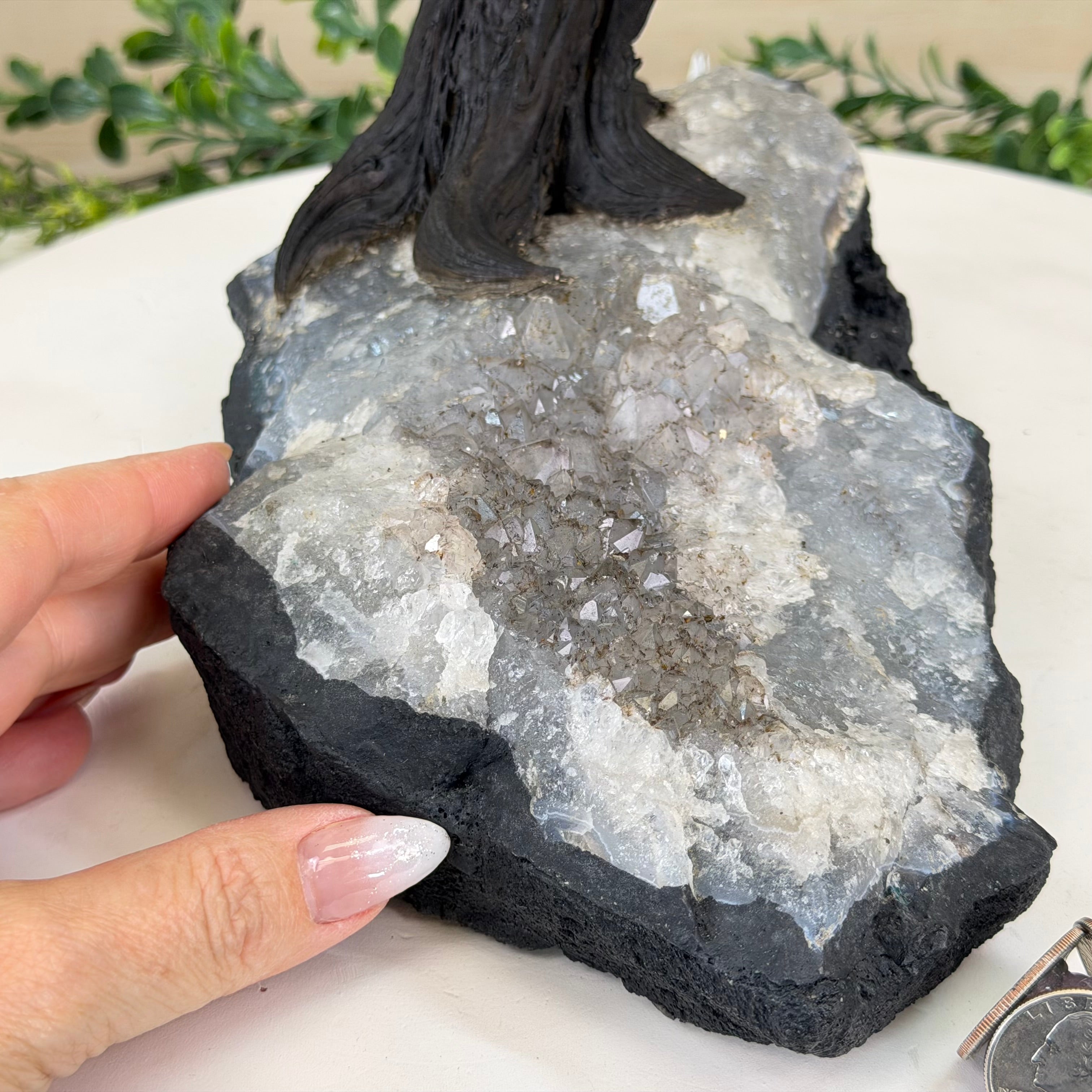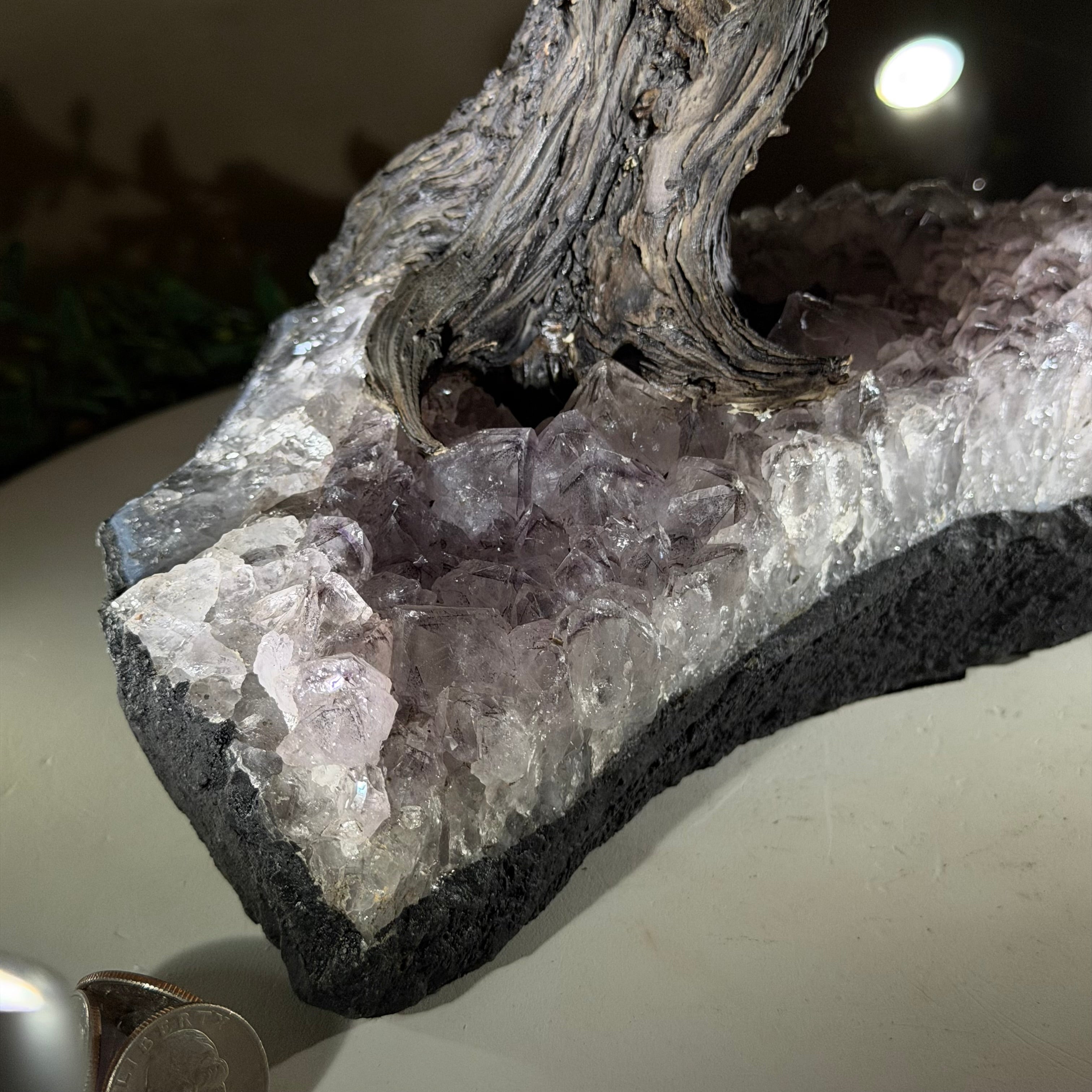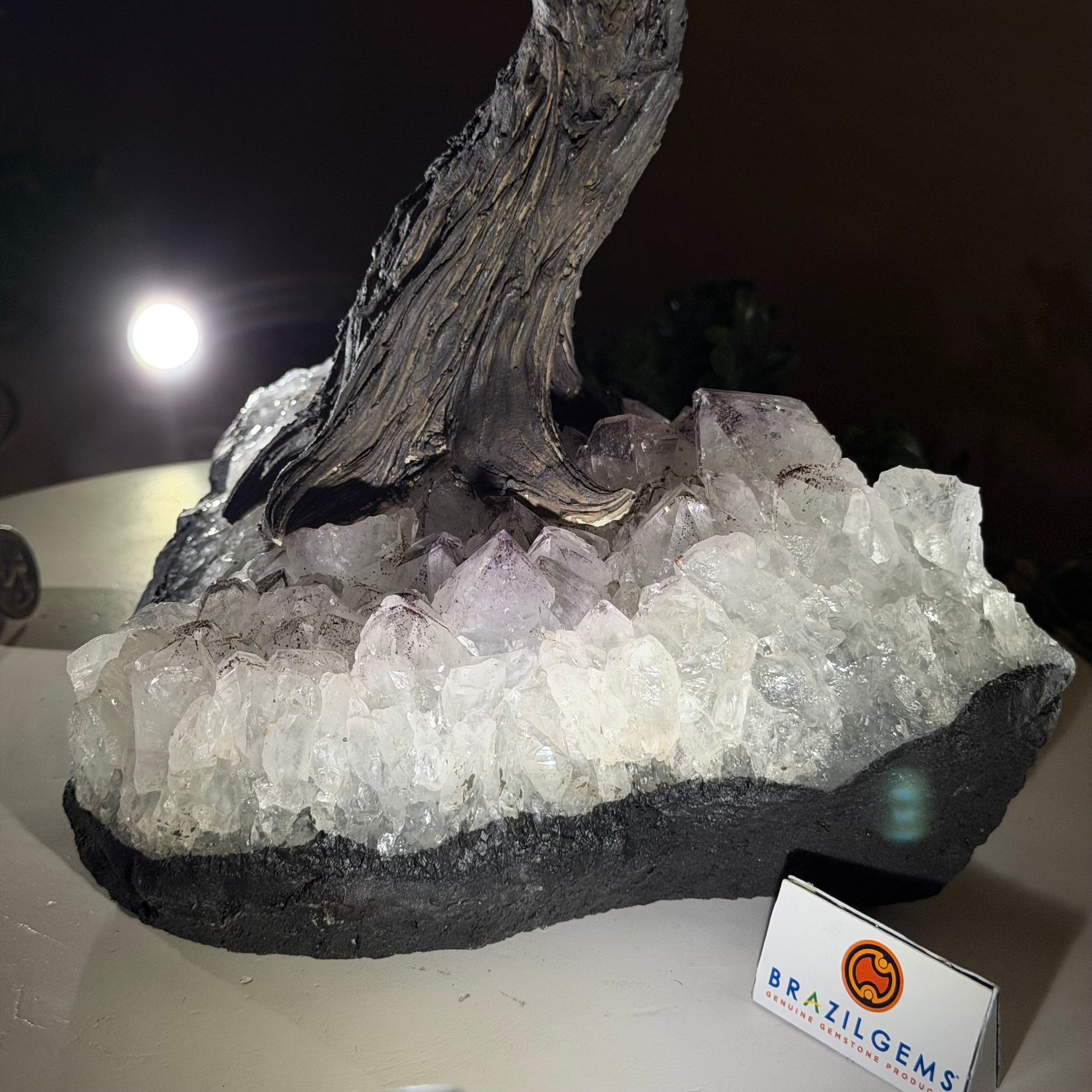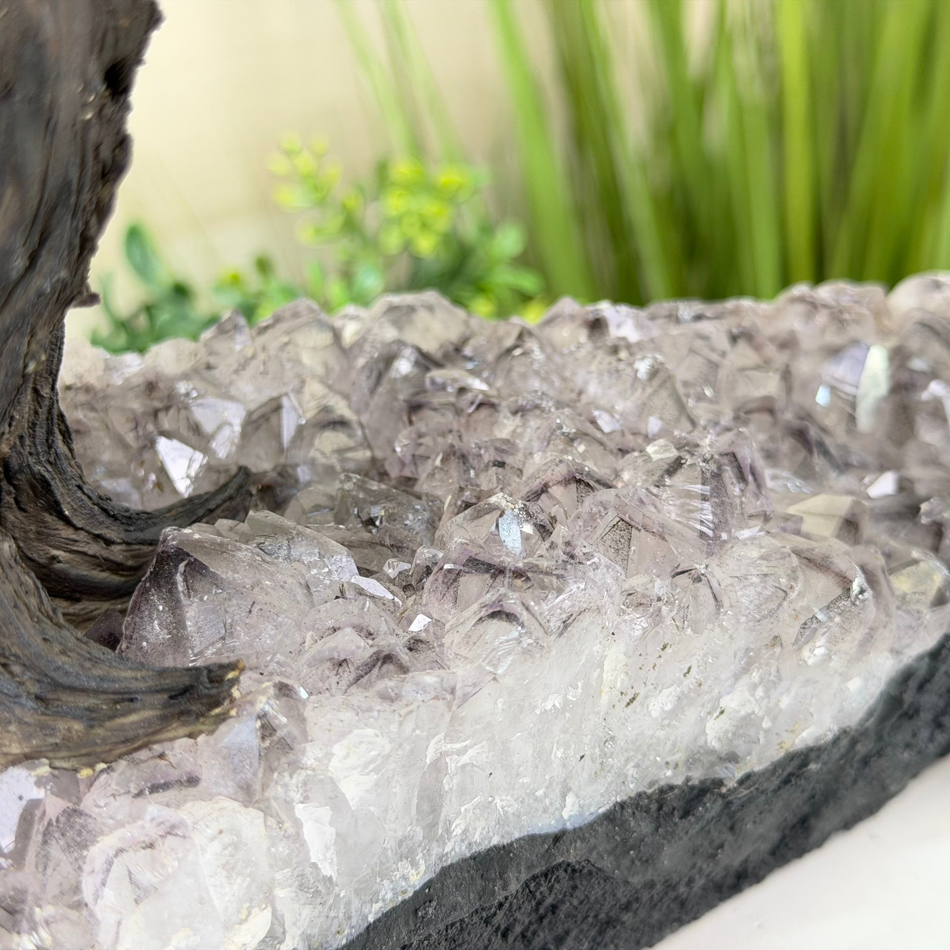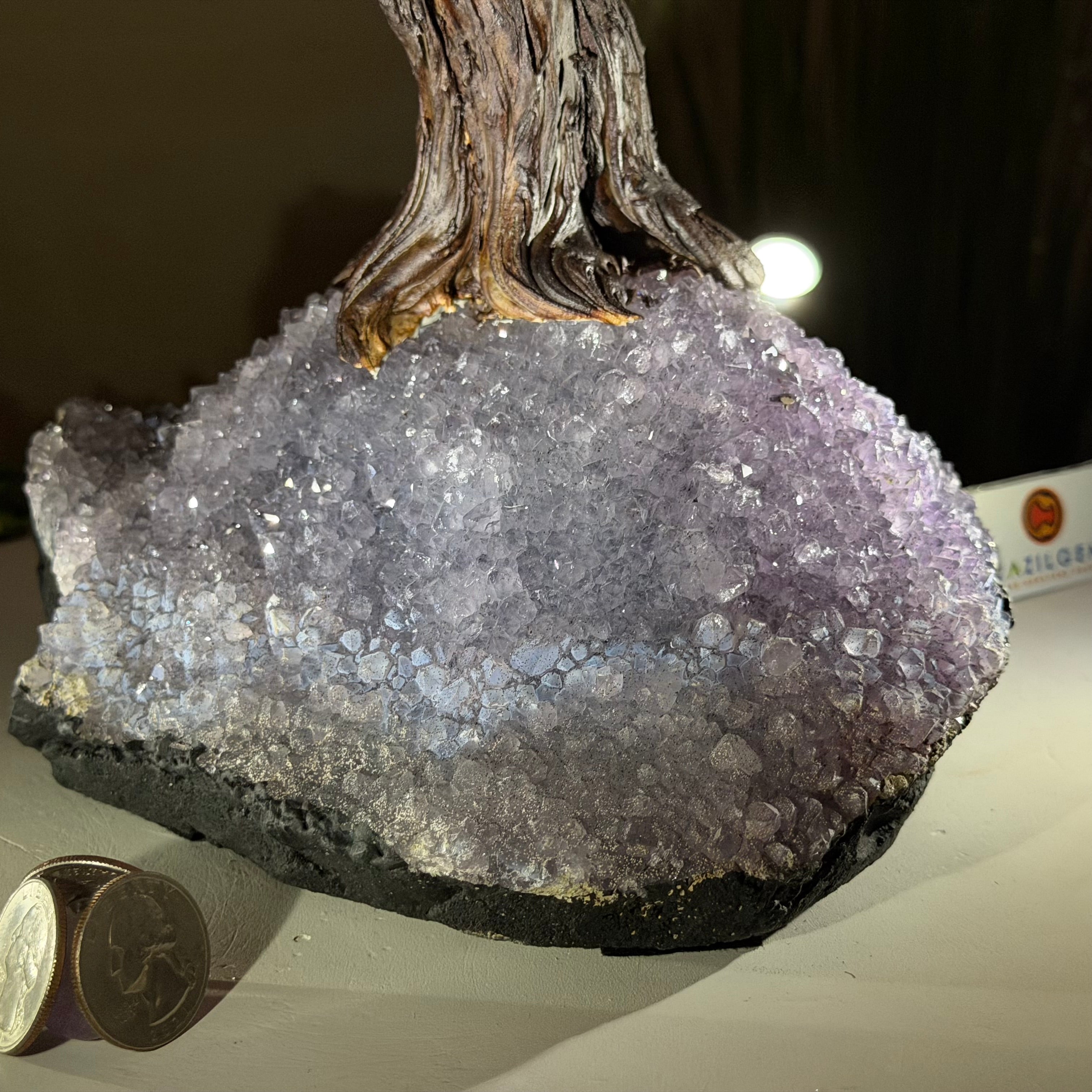 21.1" Tall Clear Quartz Gemstone Tree on an Amethyst Base, 540 gems #5406CQ-011