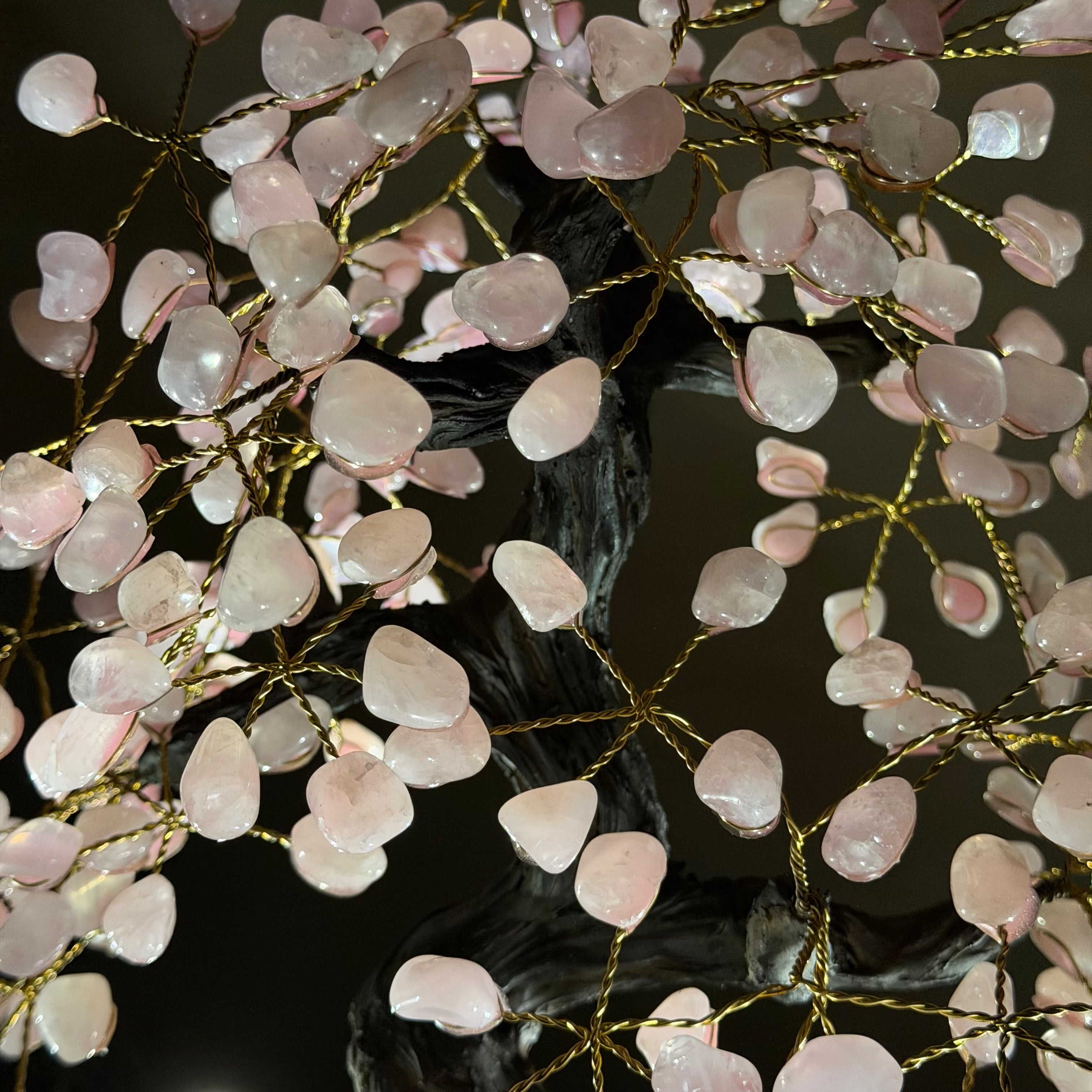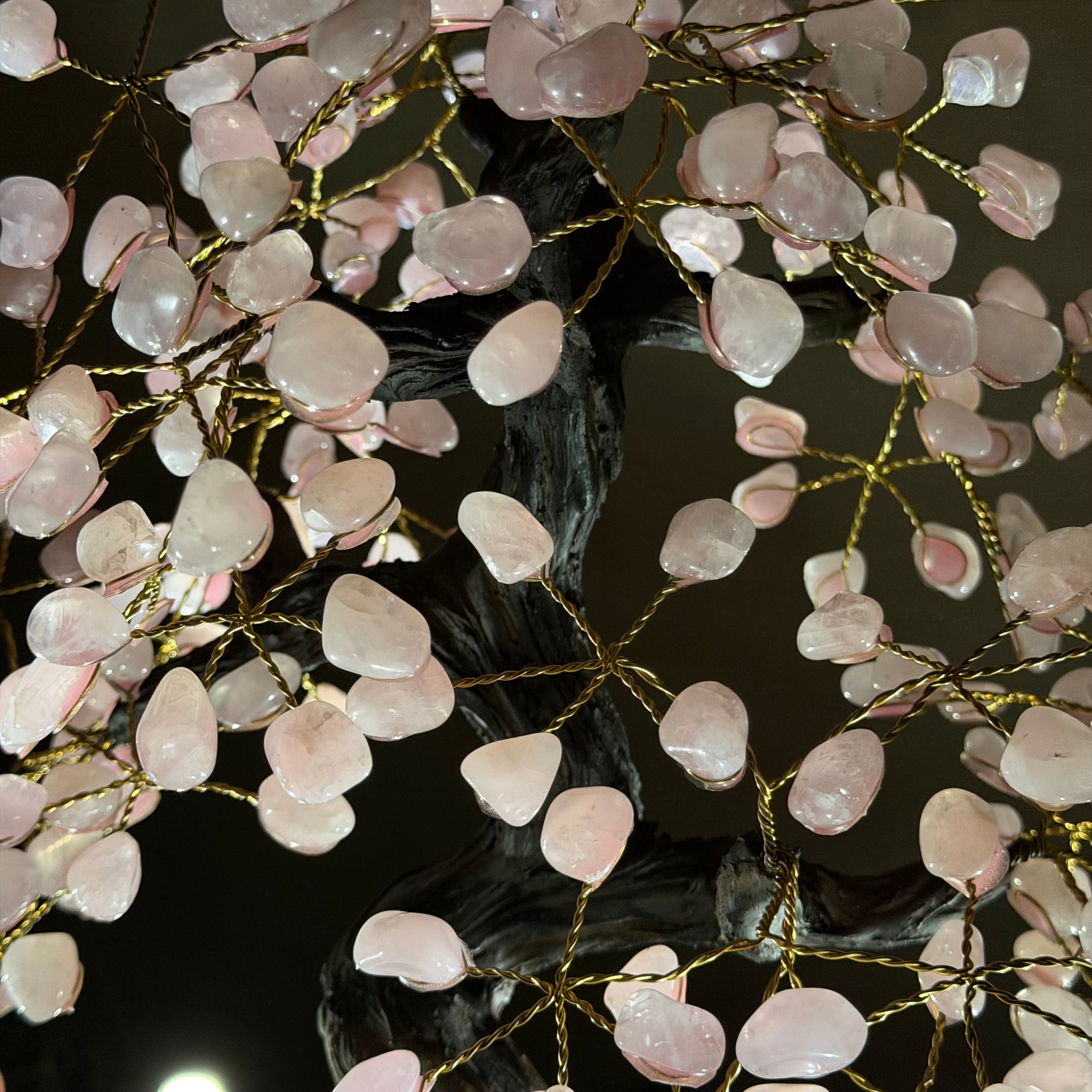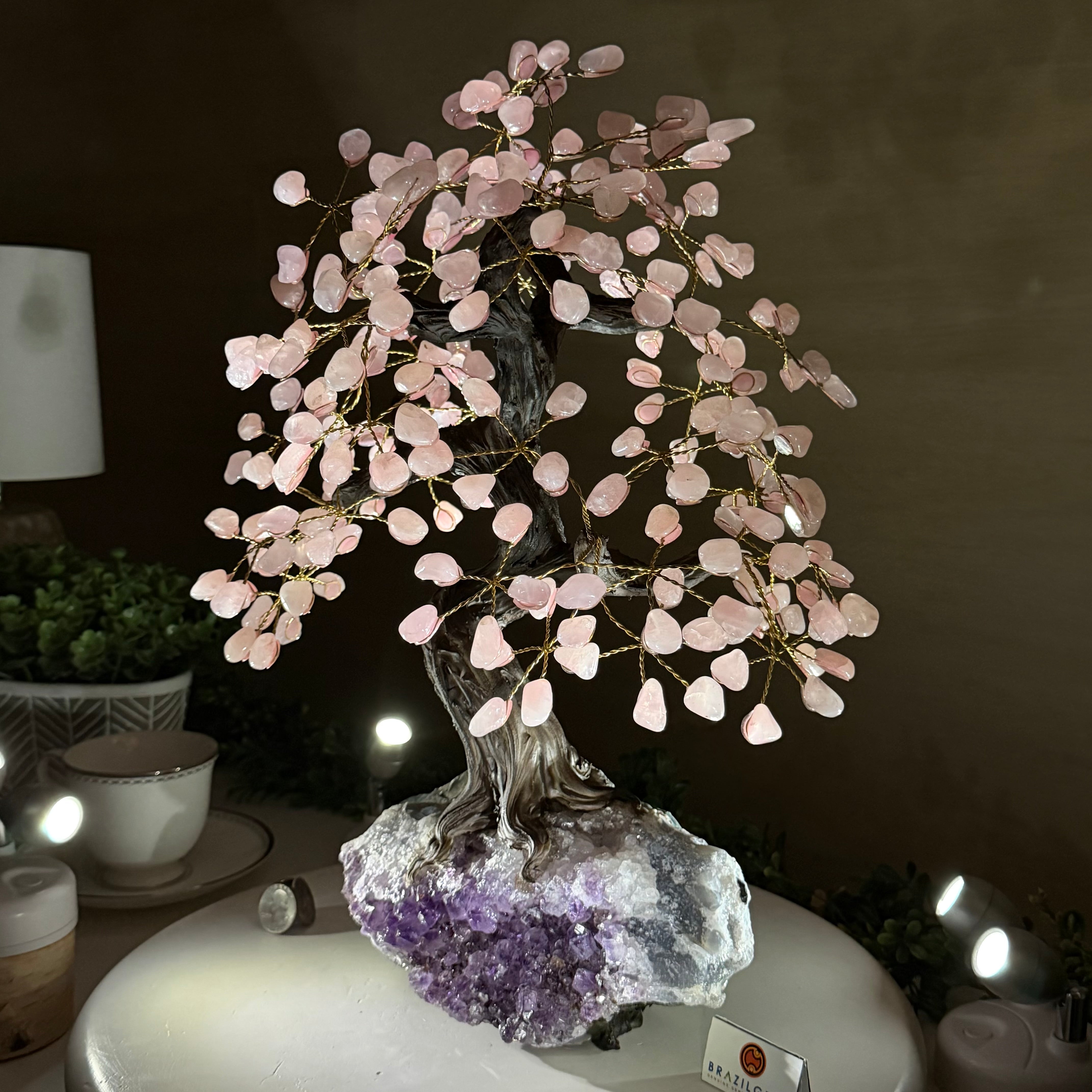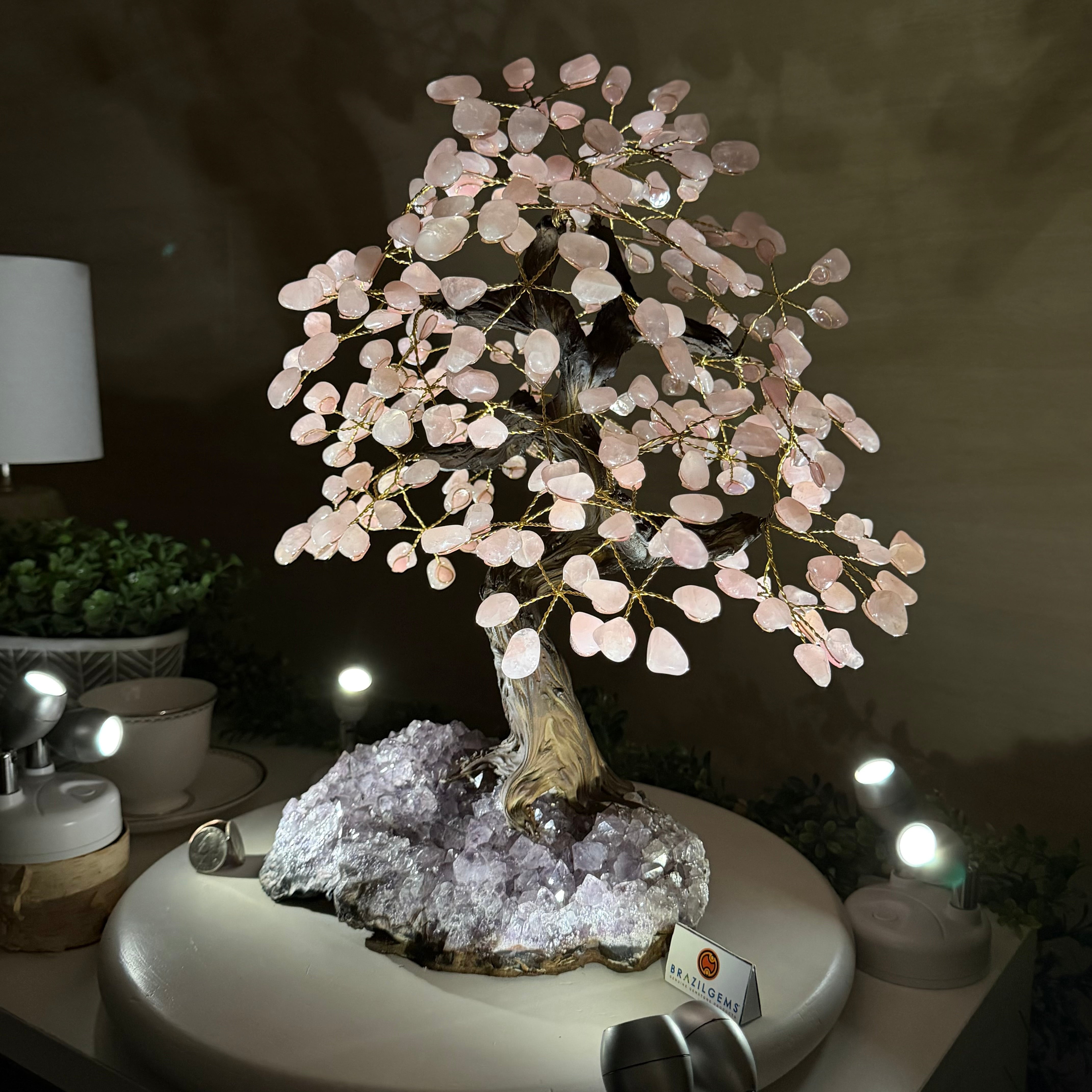 17" Tall Rose Quartz Bonsai Gemstone Tree, Amethyst Base, 240 Gems #5405ROSQ-001