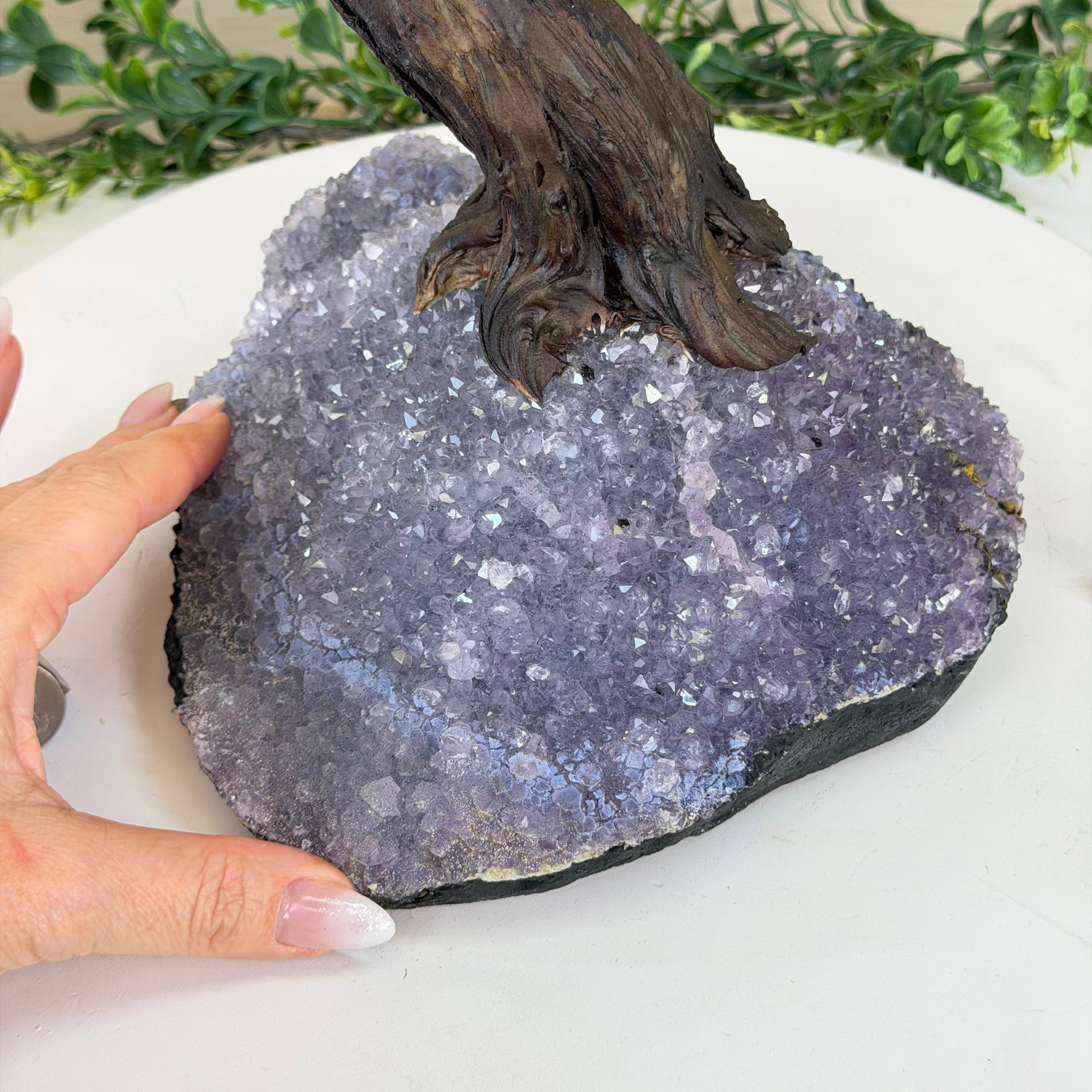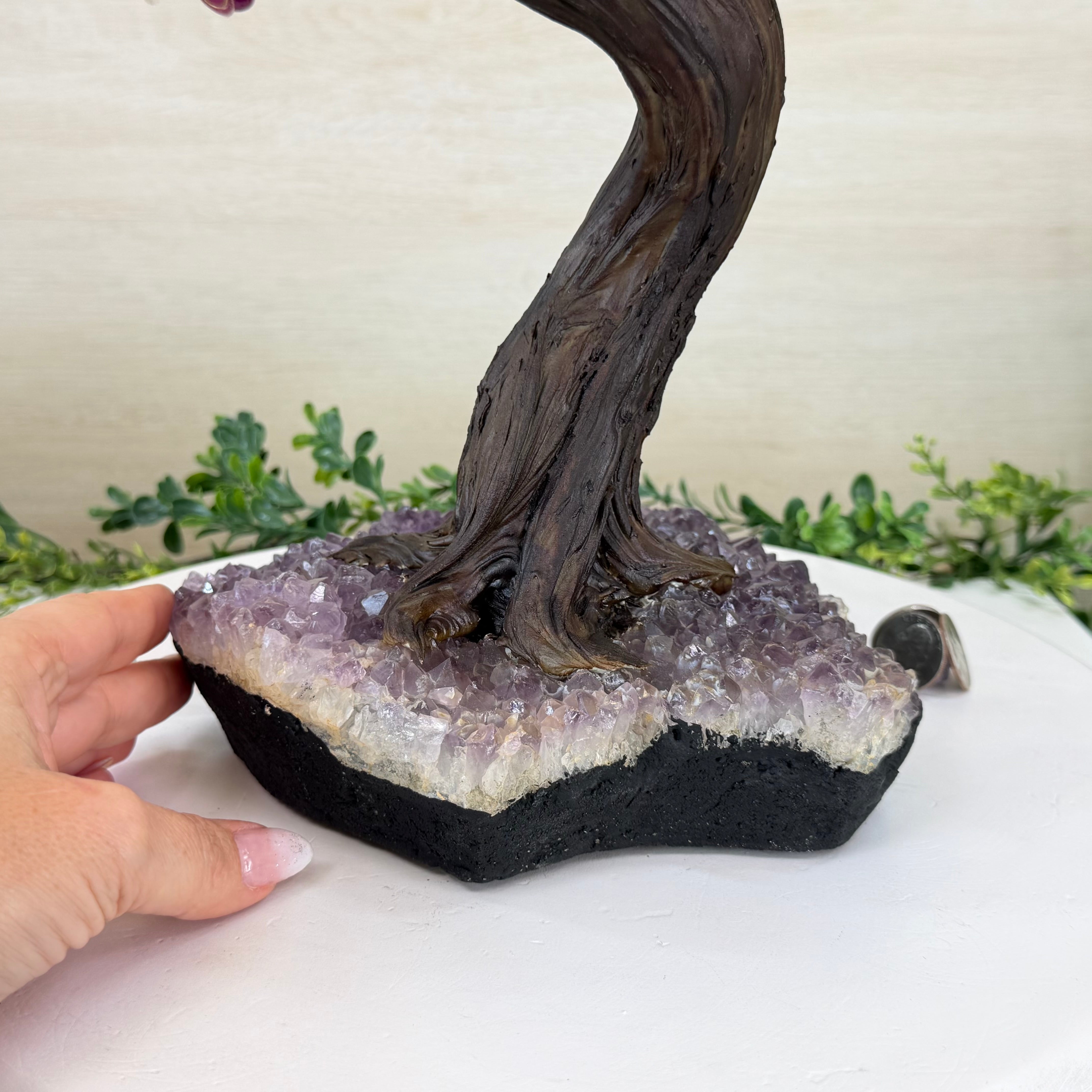 17" Tall Hematite Bonsai Gemstone Tree, Amethyst Base, 240 Gems #5405HEMA-002