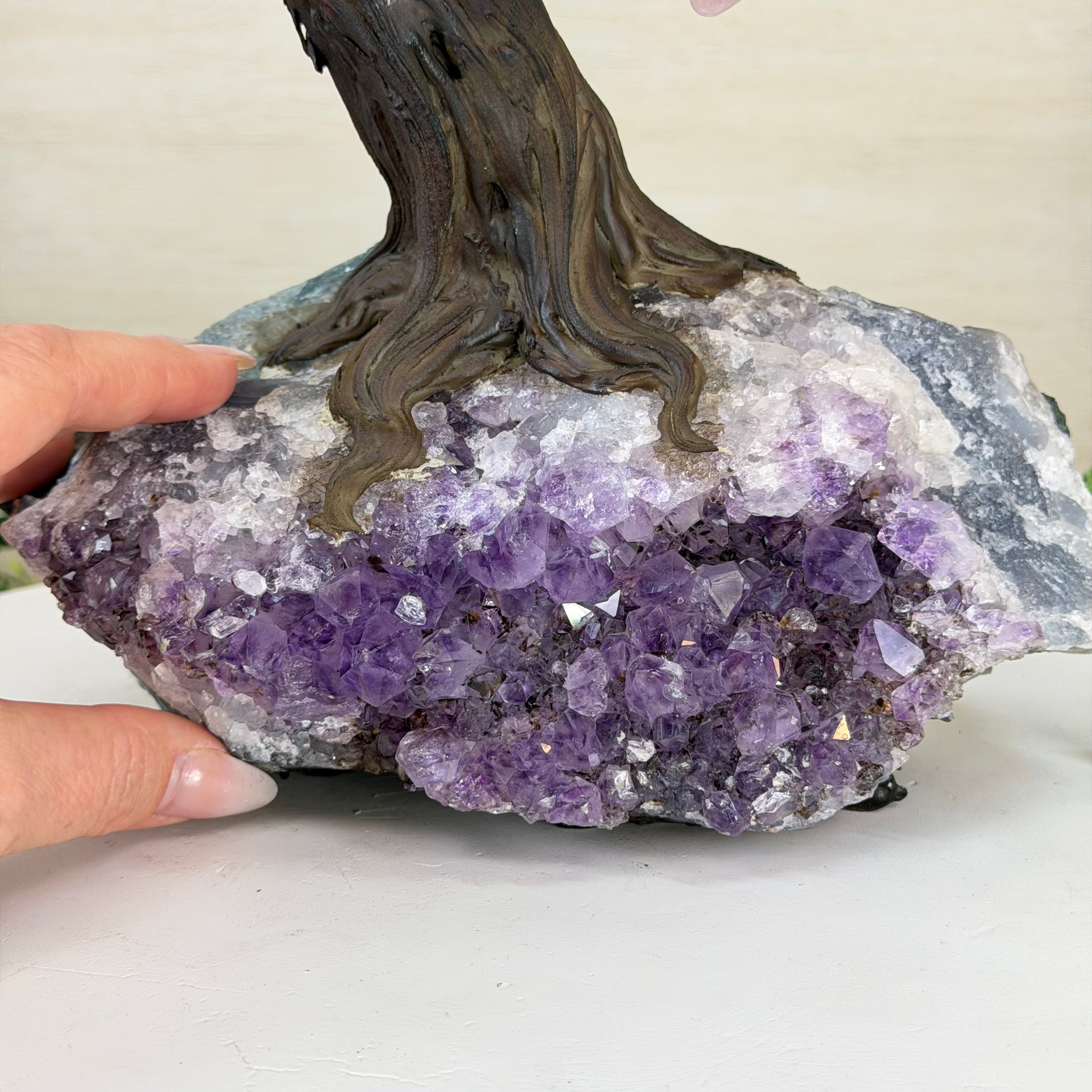 17" Tall Sodalite Bonsai Gemstone Tree, Amethyst base, 240 Gems #5405SODA-001