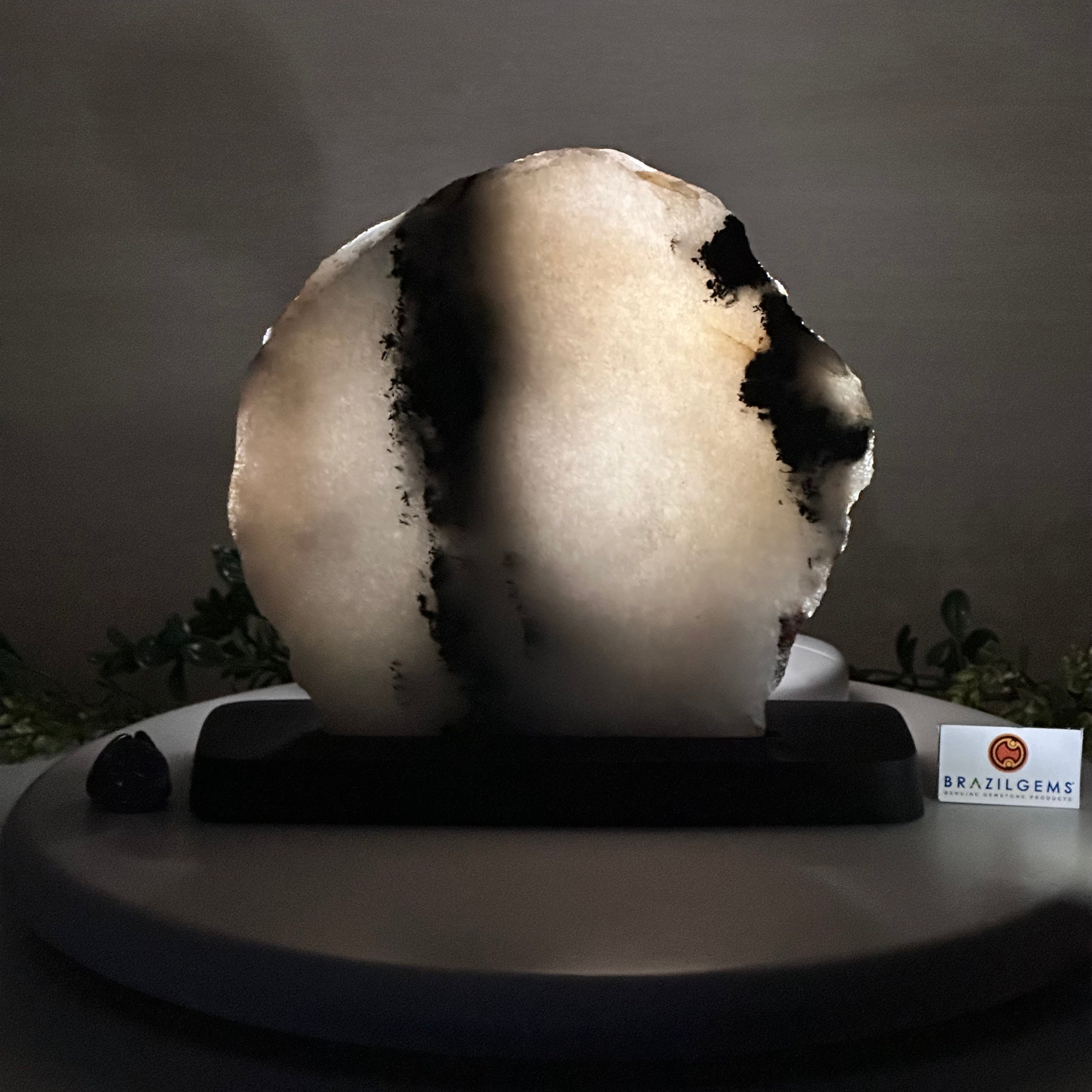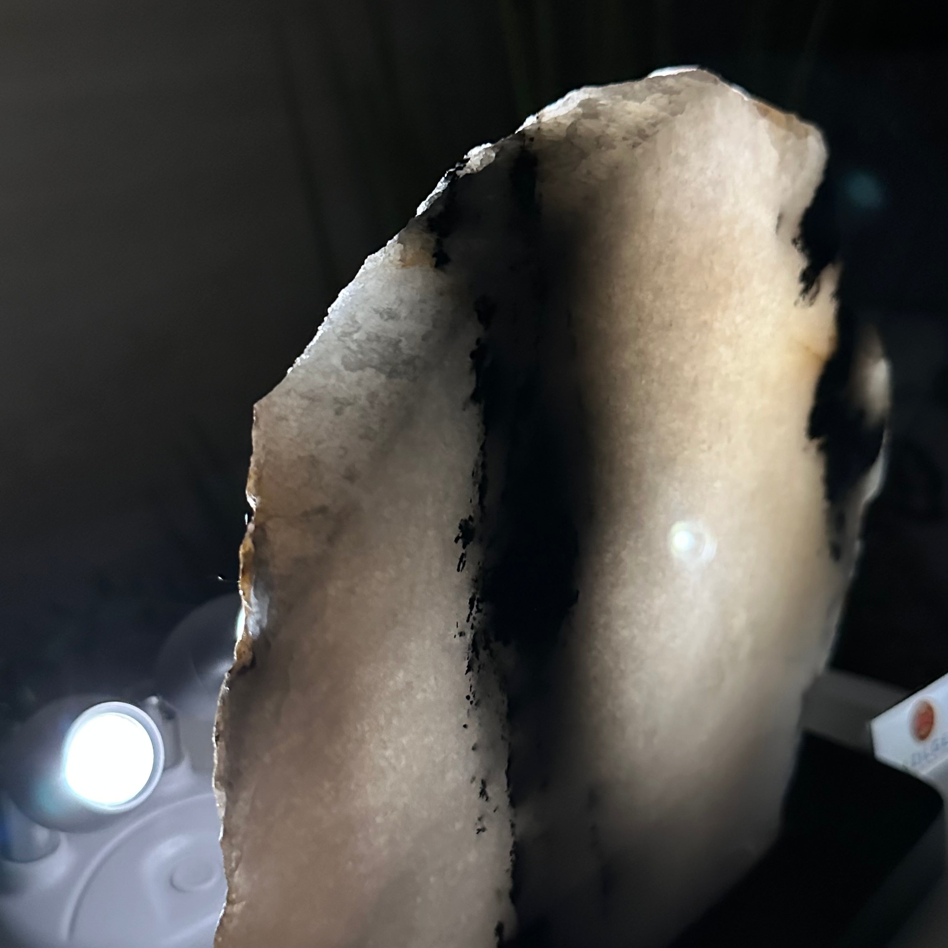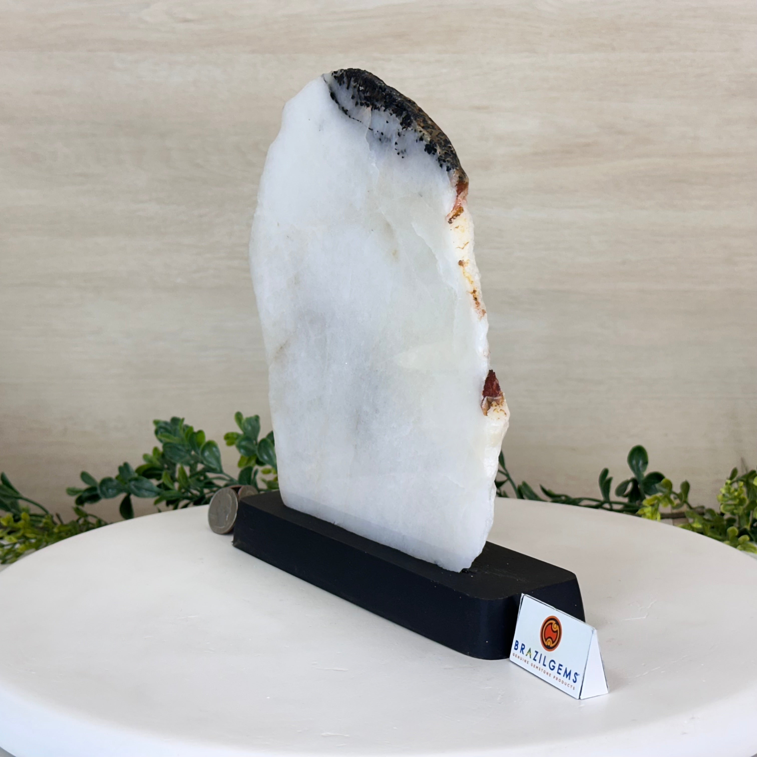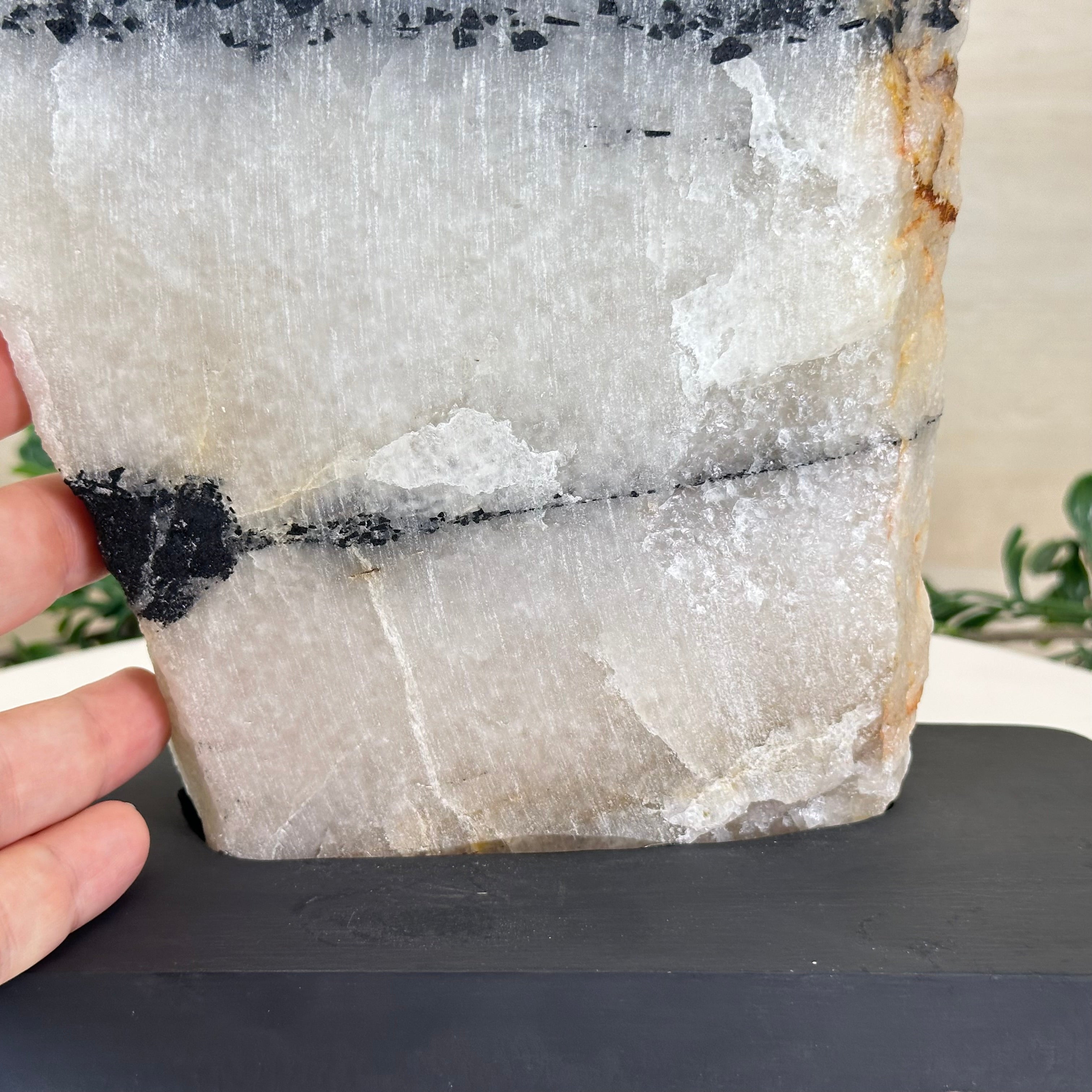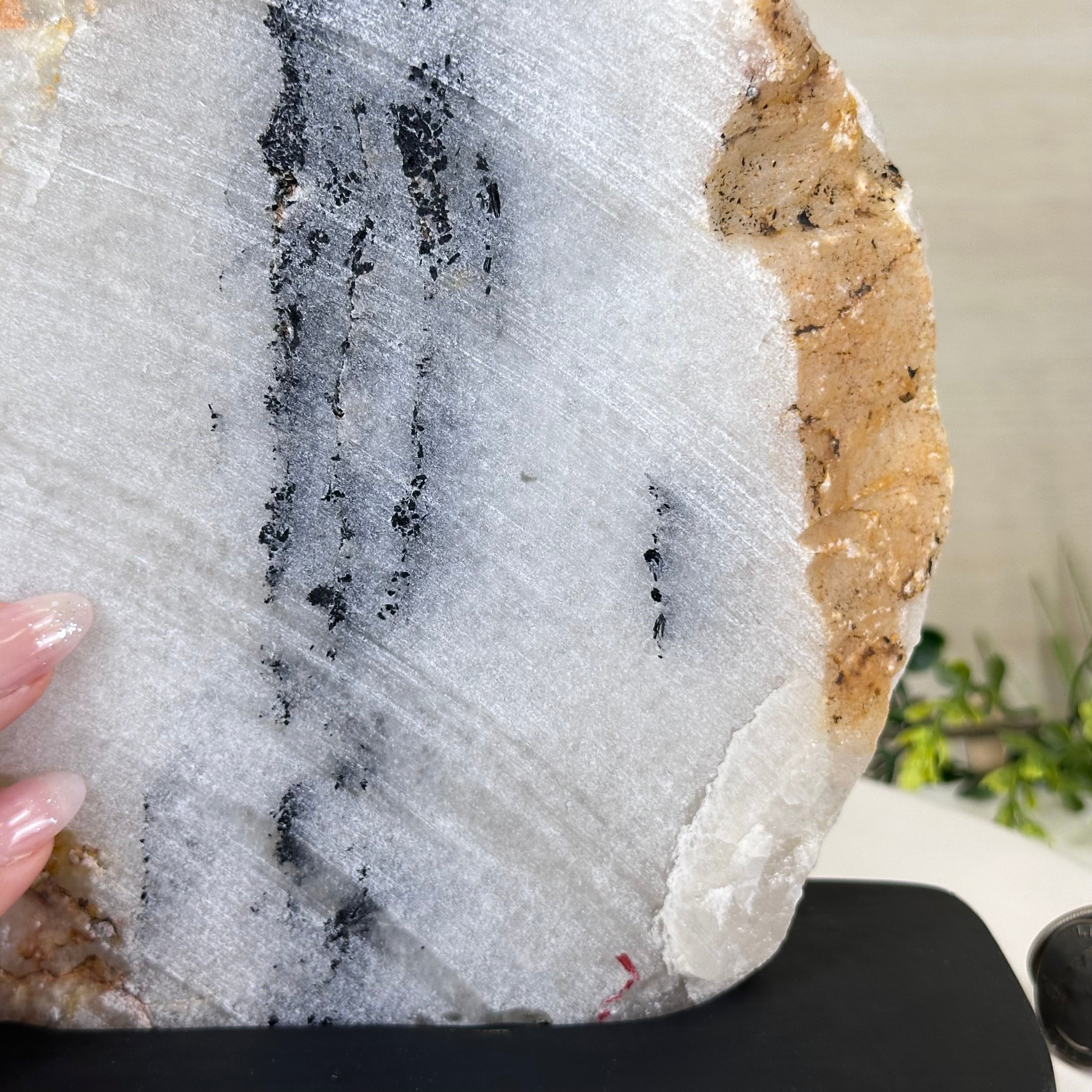 Tourmalinated Quartz Polished Slice on a Wood Base 9.3" Tall #6100TQ-004
