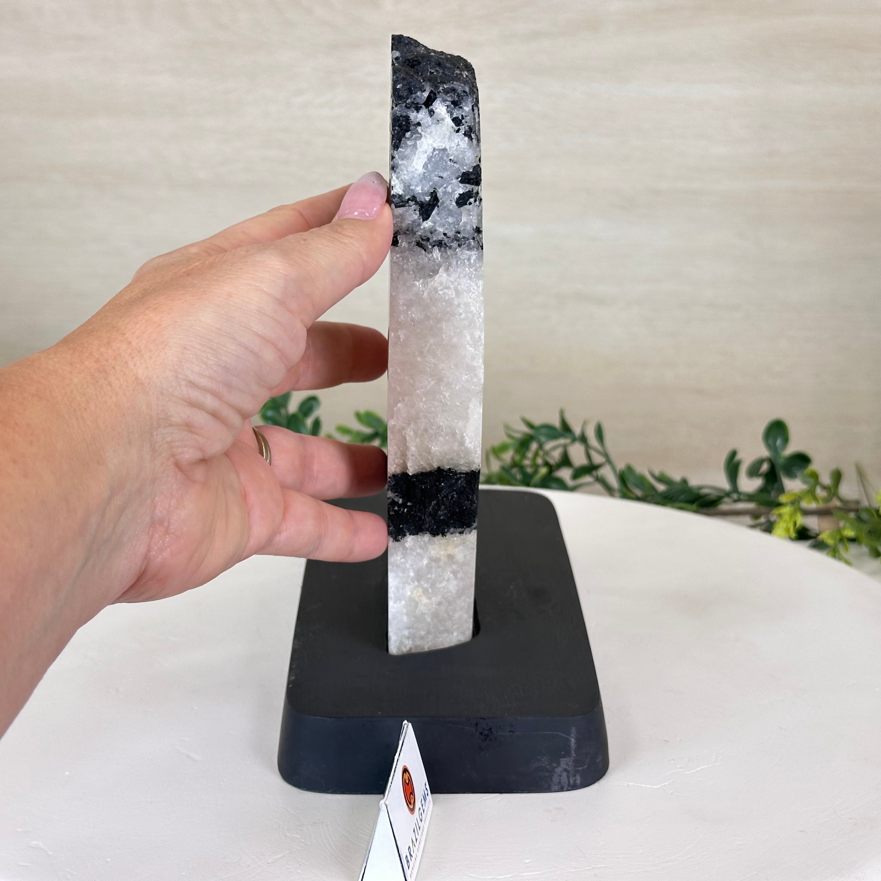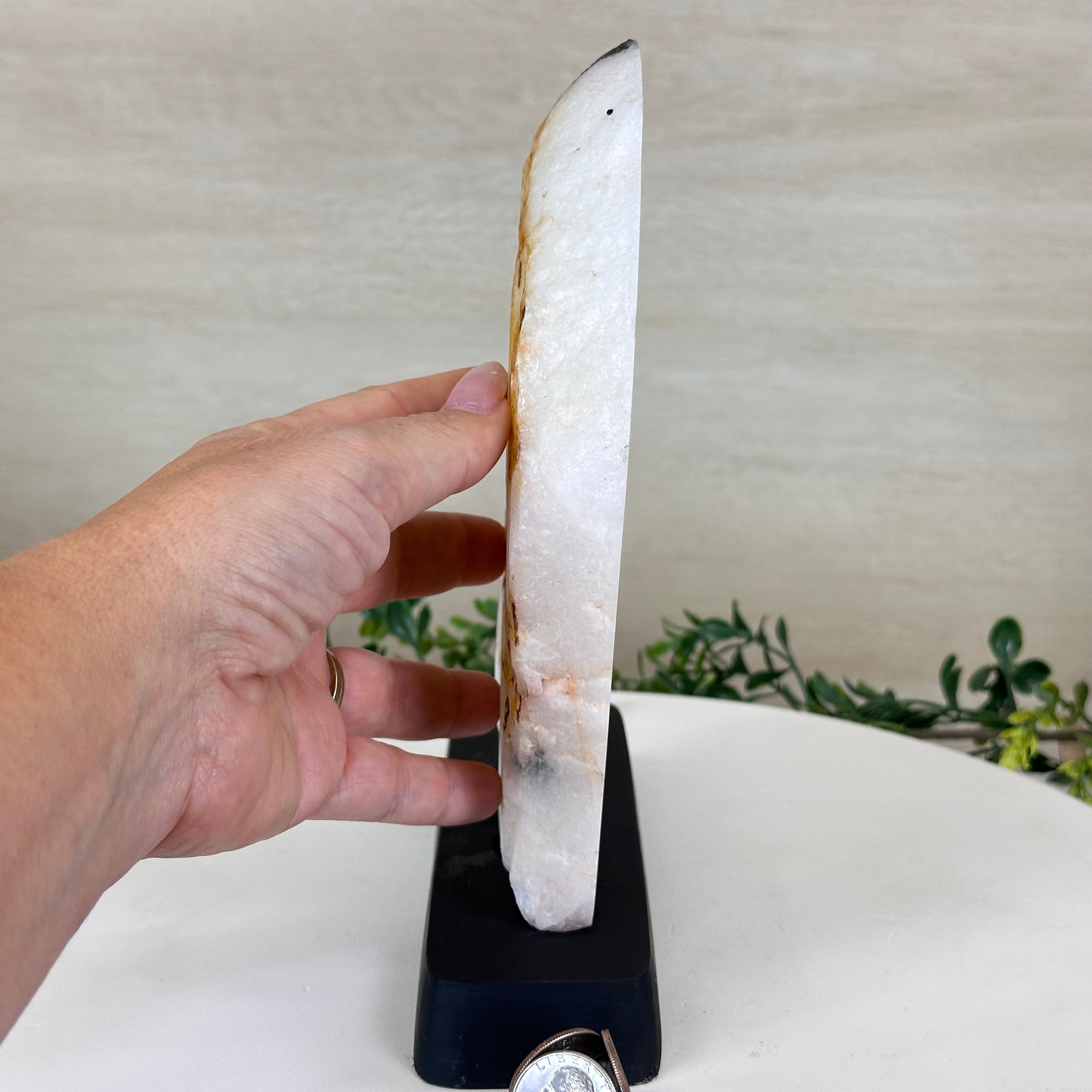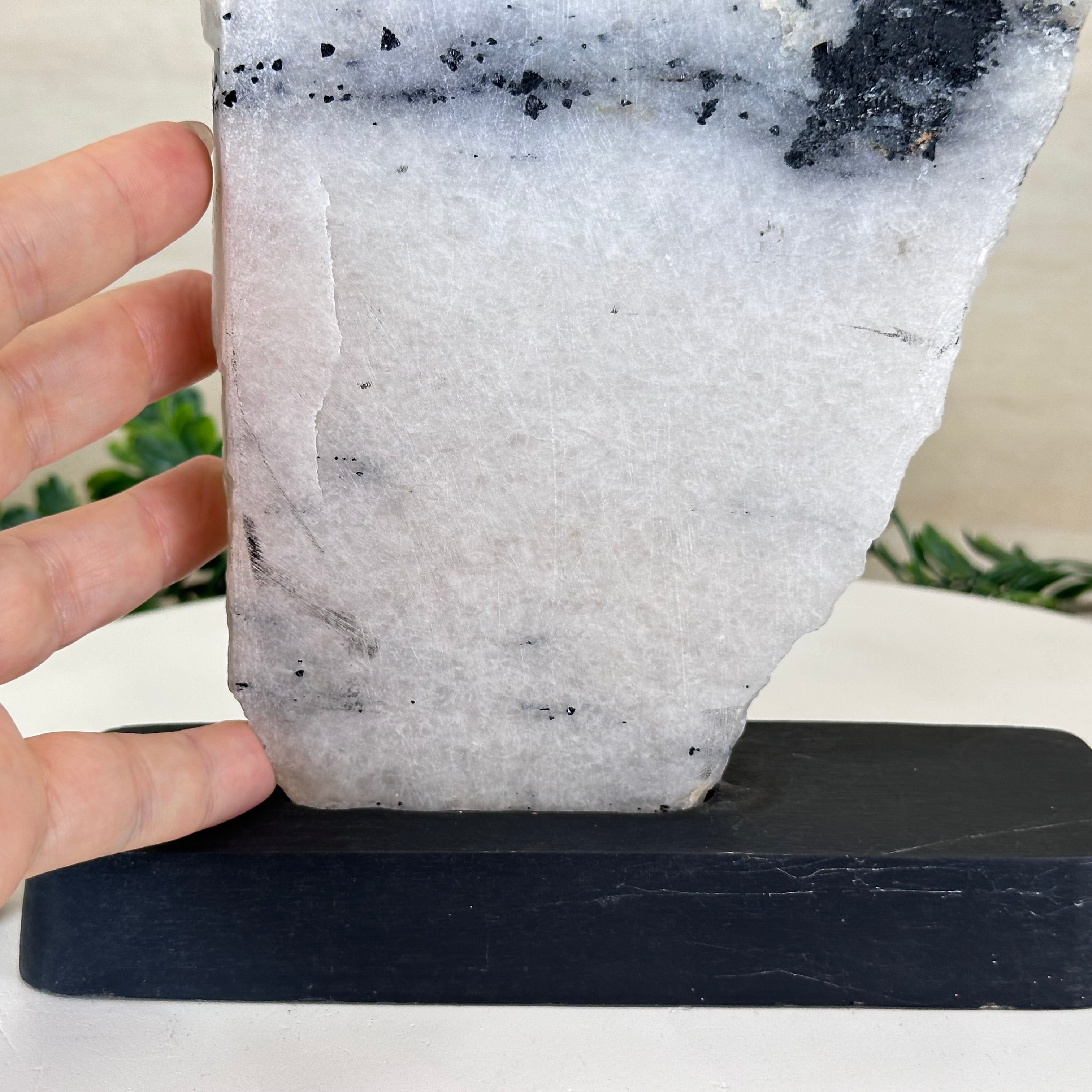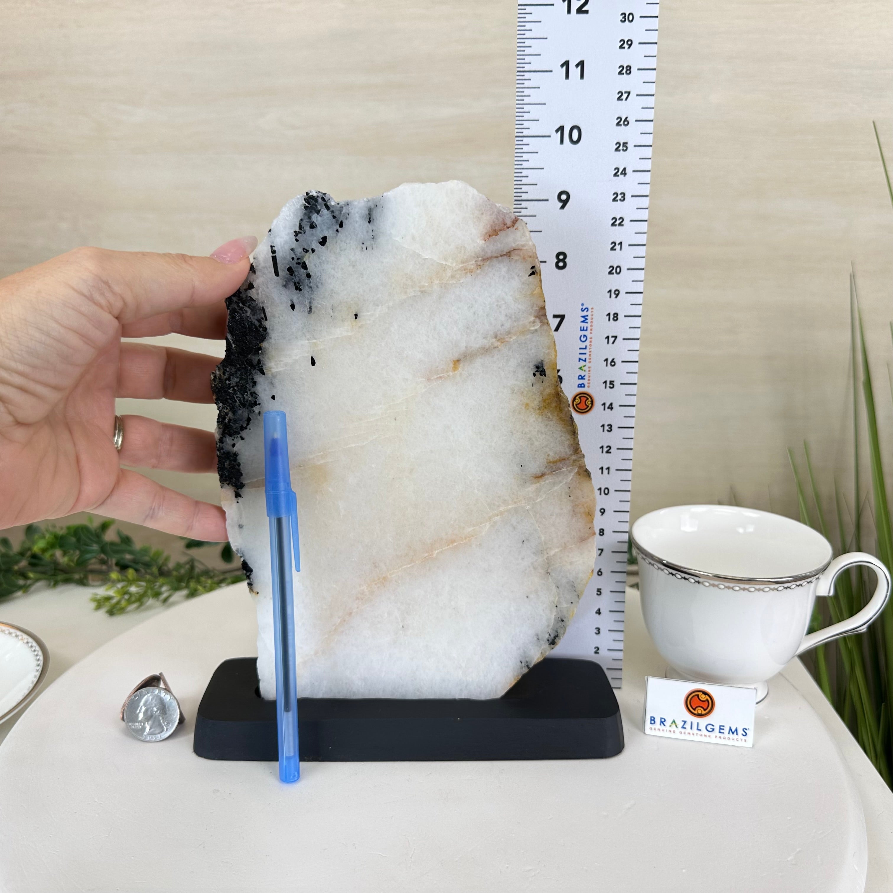 Tourmalinated Quartz Polished Slice on a Wood Base 8.4" Tall #6100TQ-002