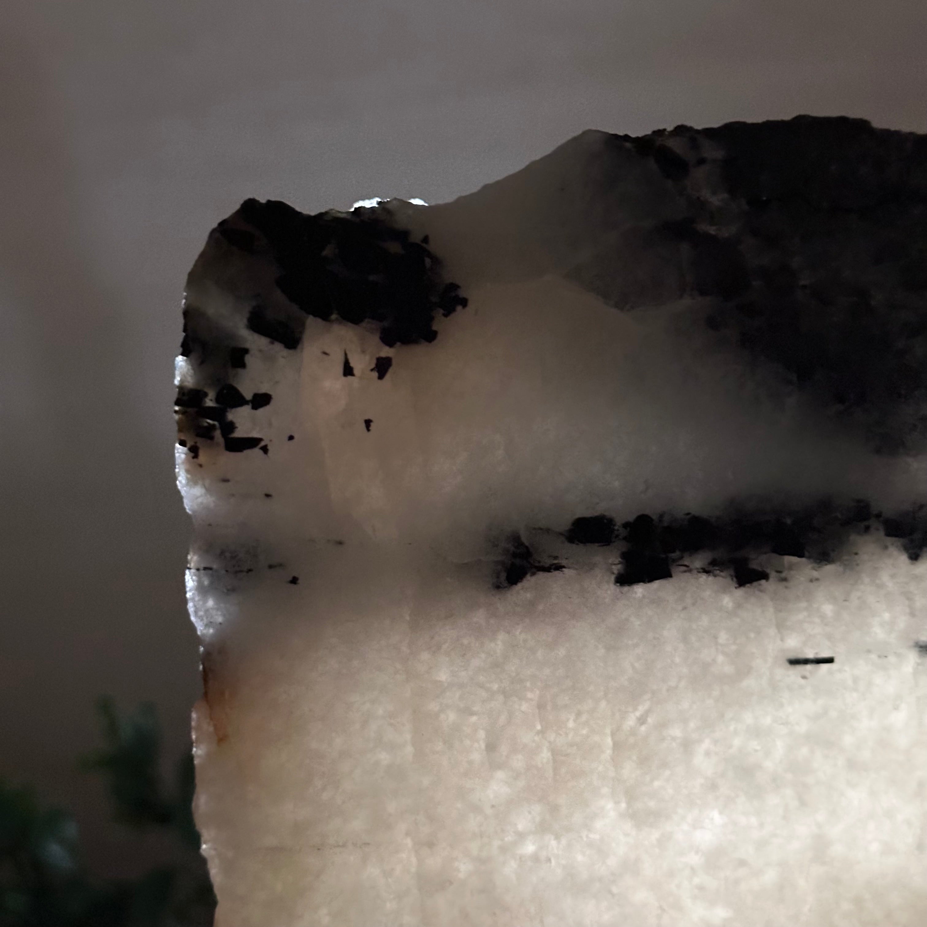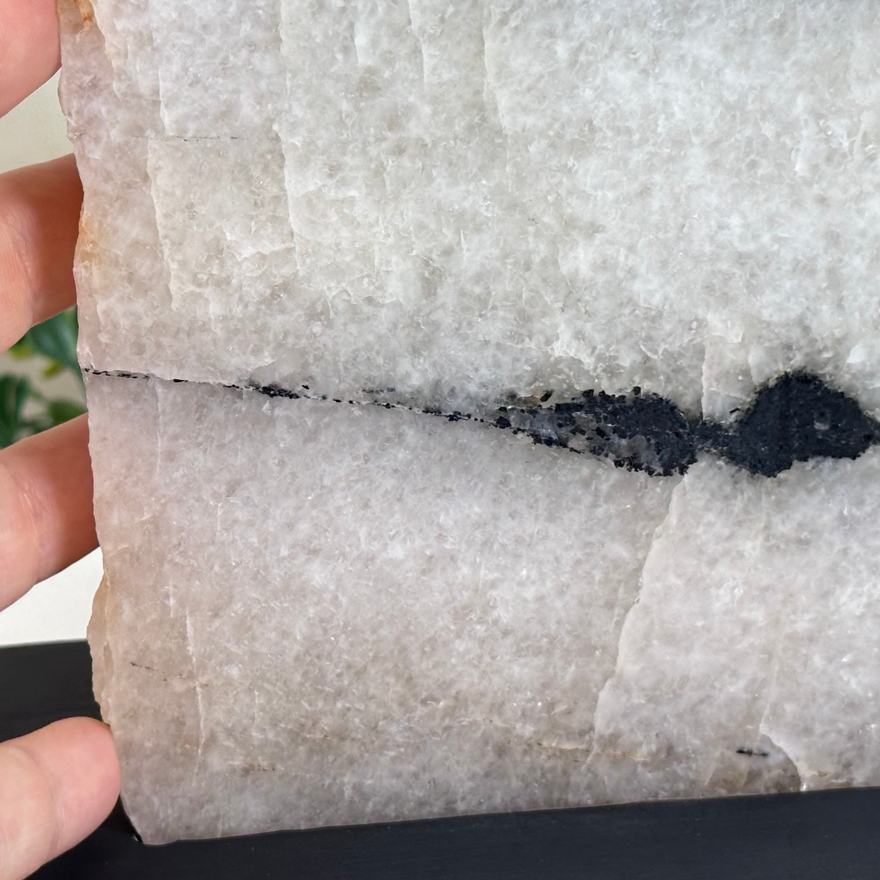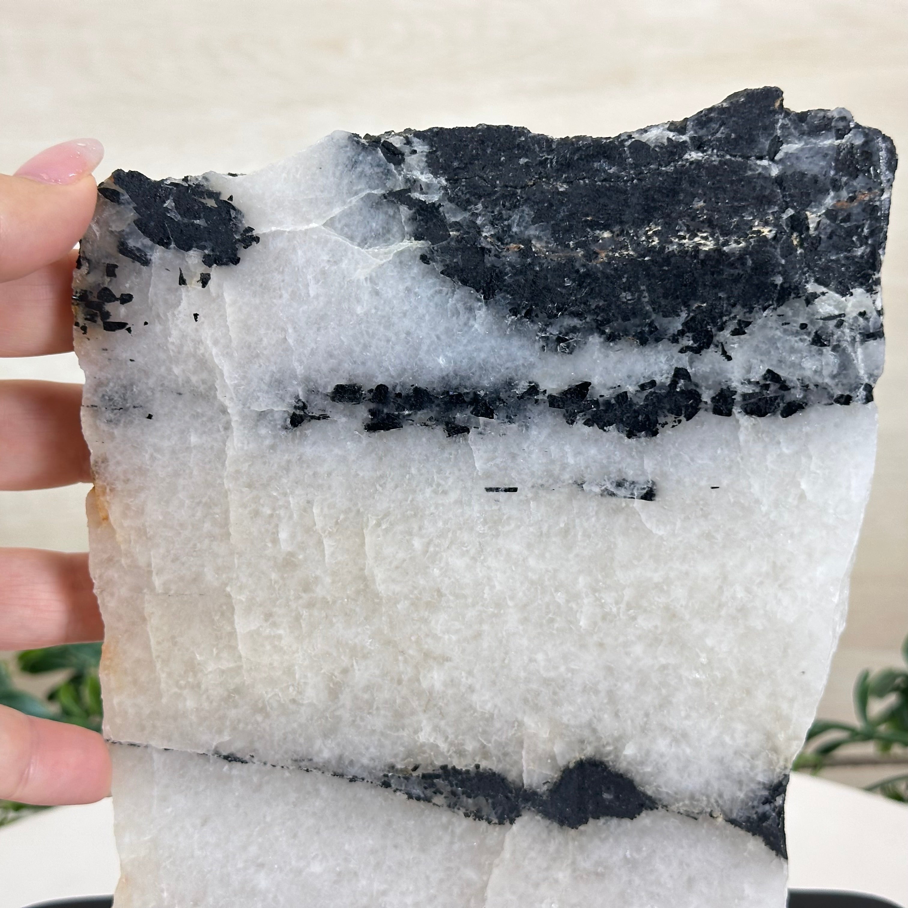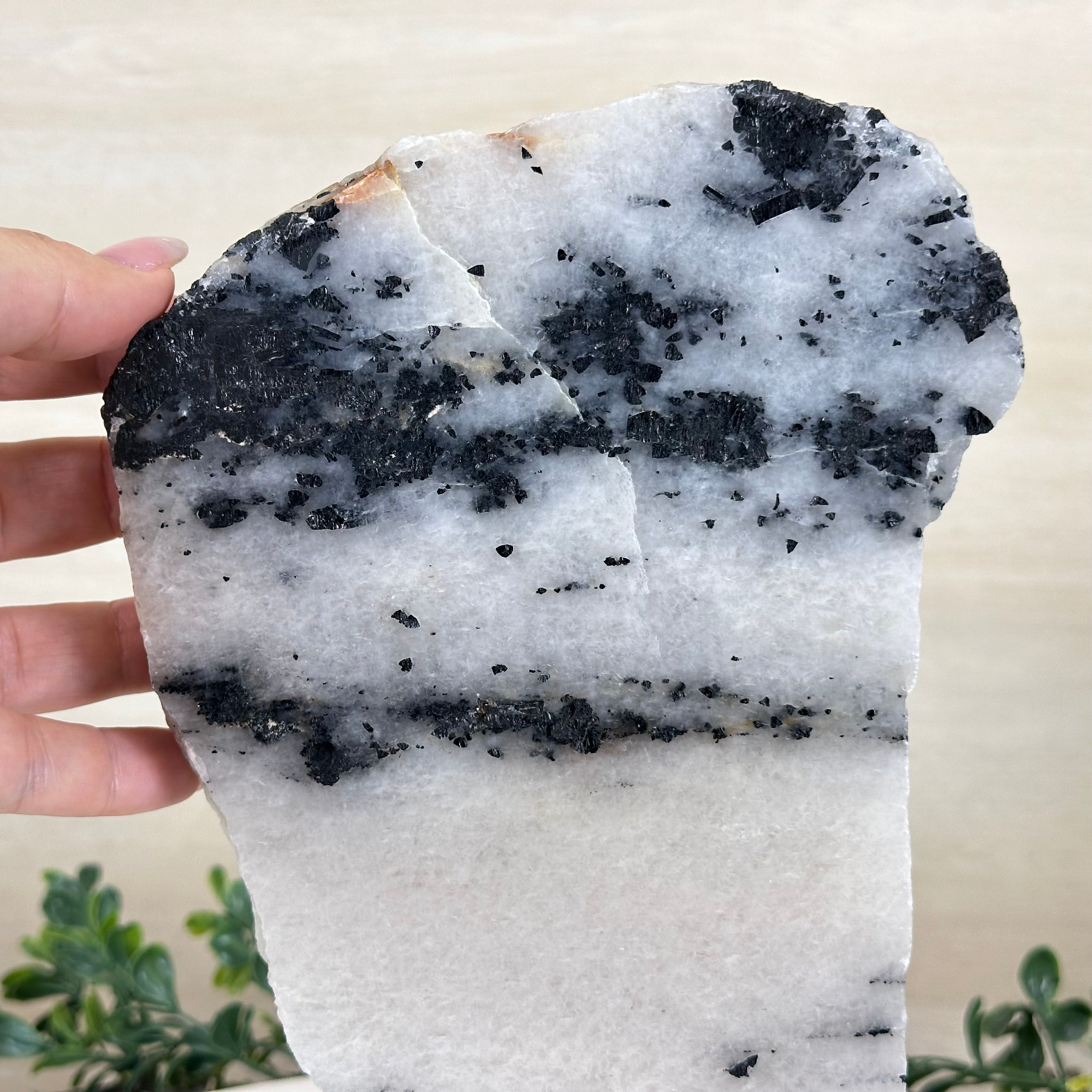 Tourmalinated Quartz Polished Slice on a Wood Base 8.4" Tall #6100TQ-002