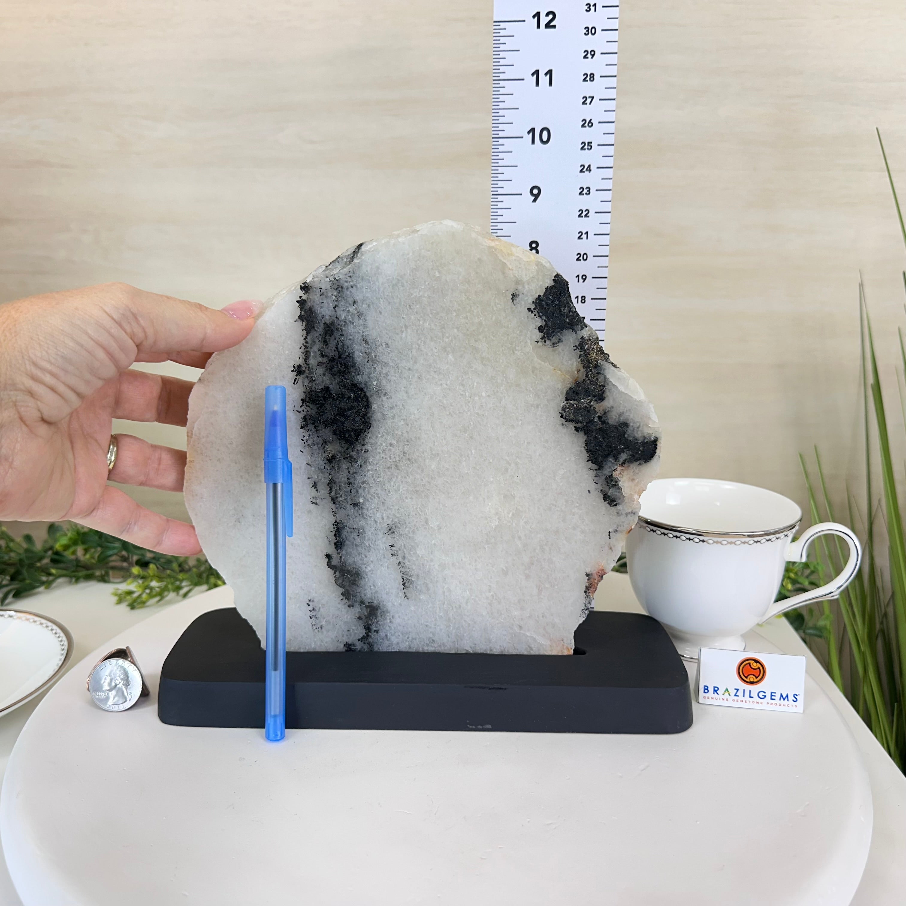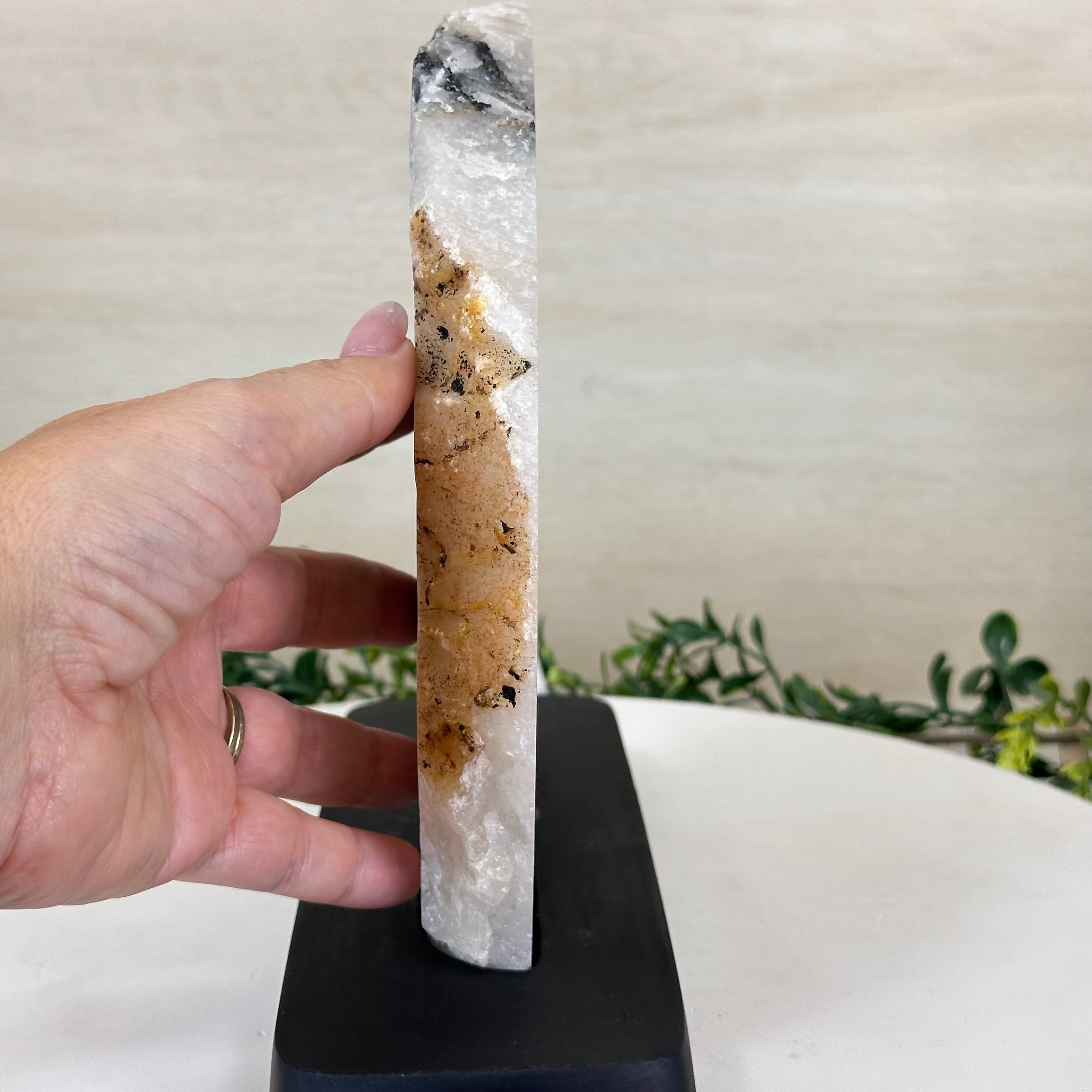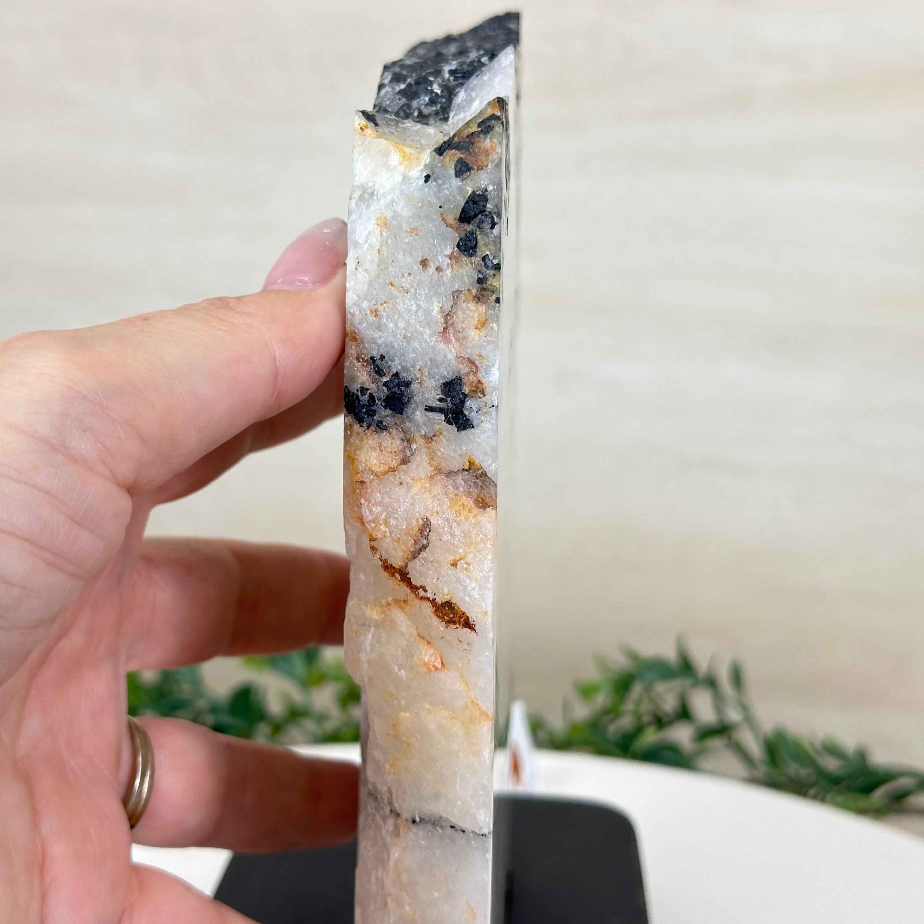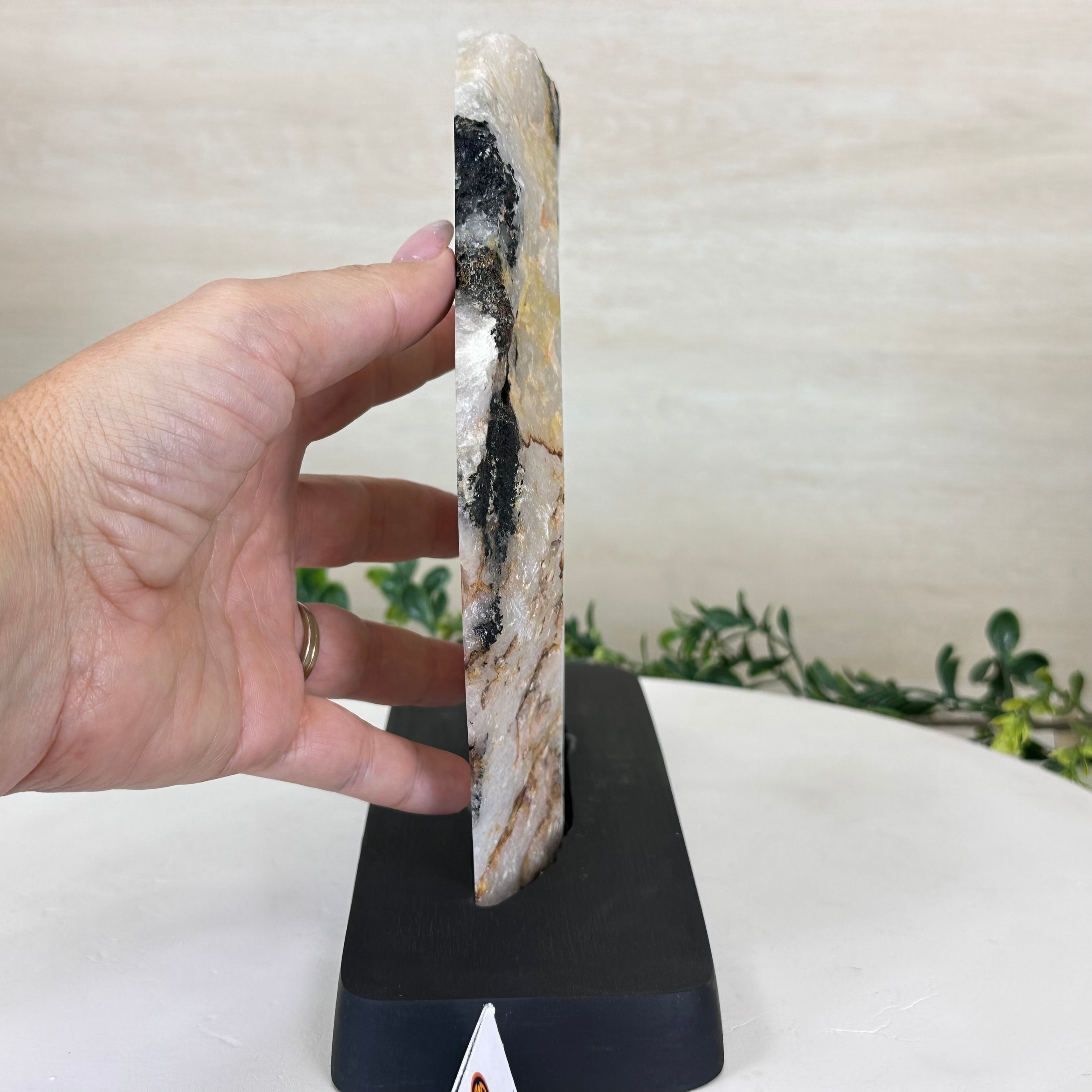 Tourmalinated Quartz Polished Slice on a Wood Base 9" Tall #6100TQ-003