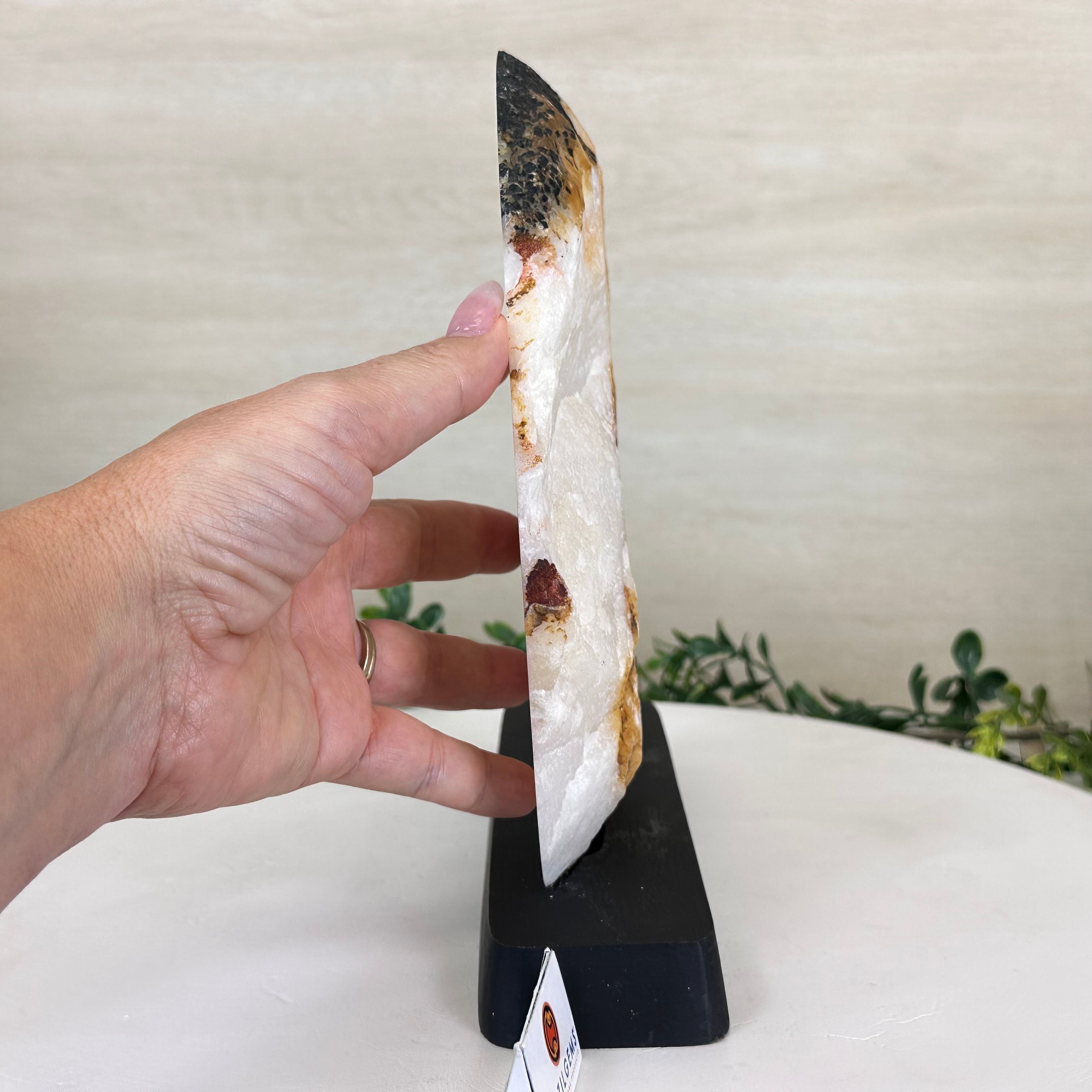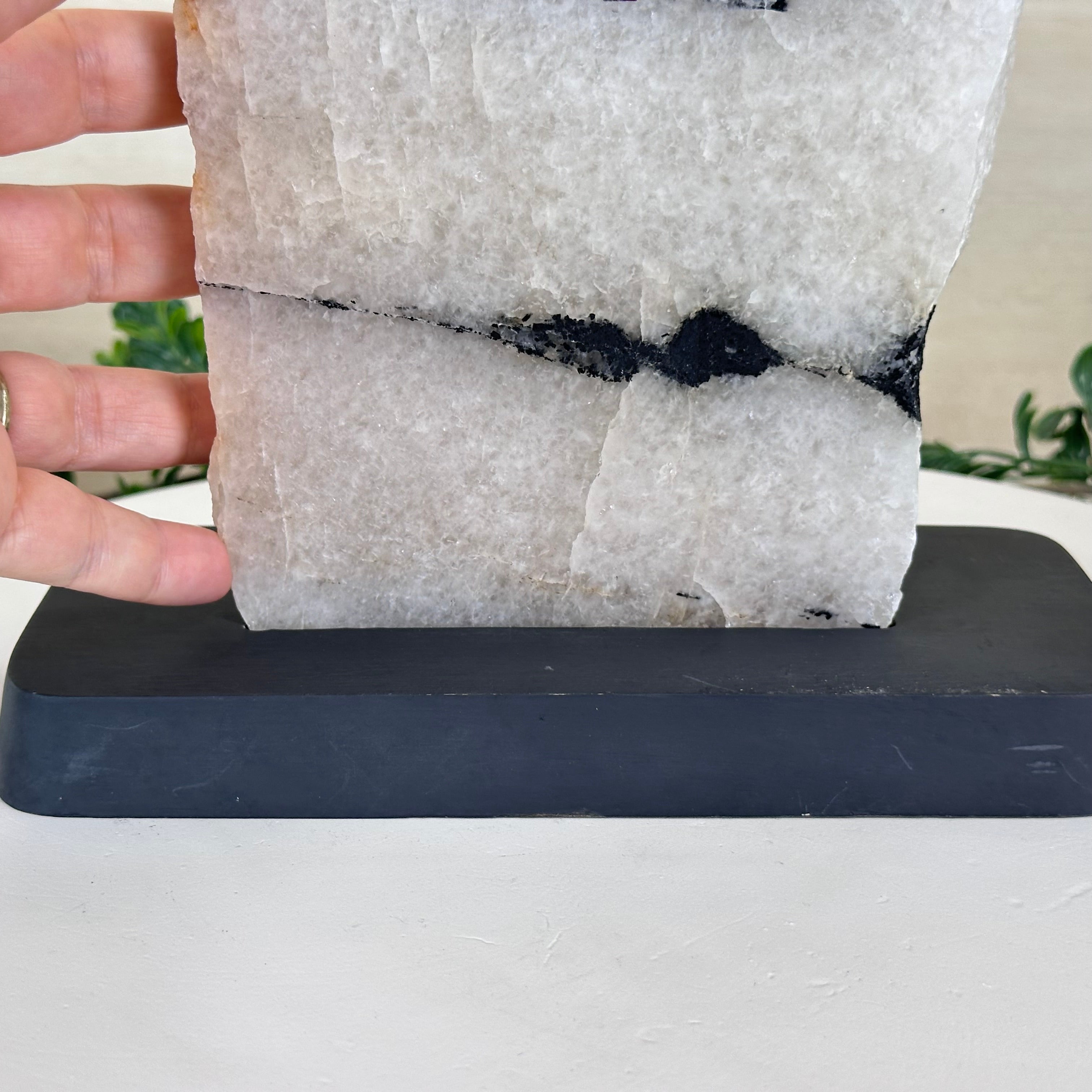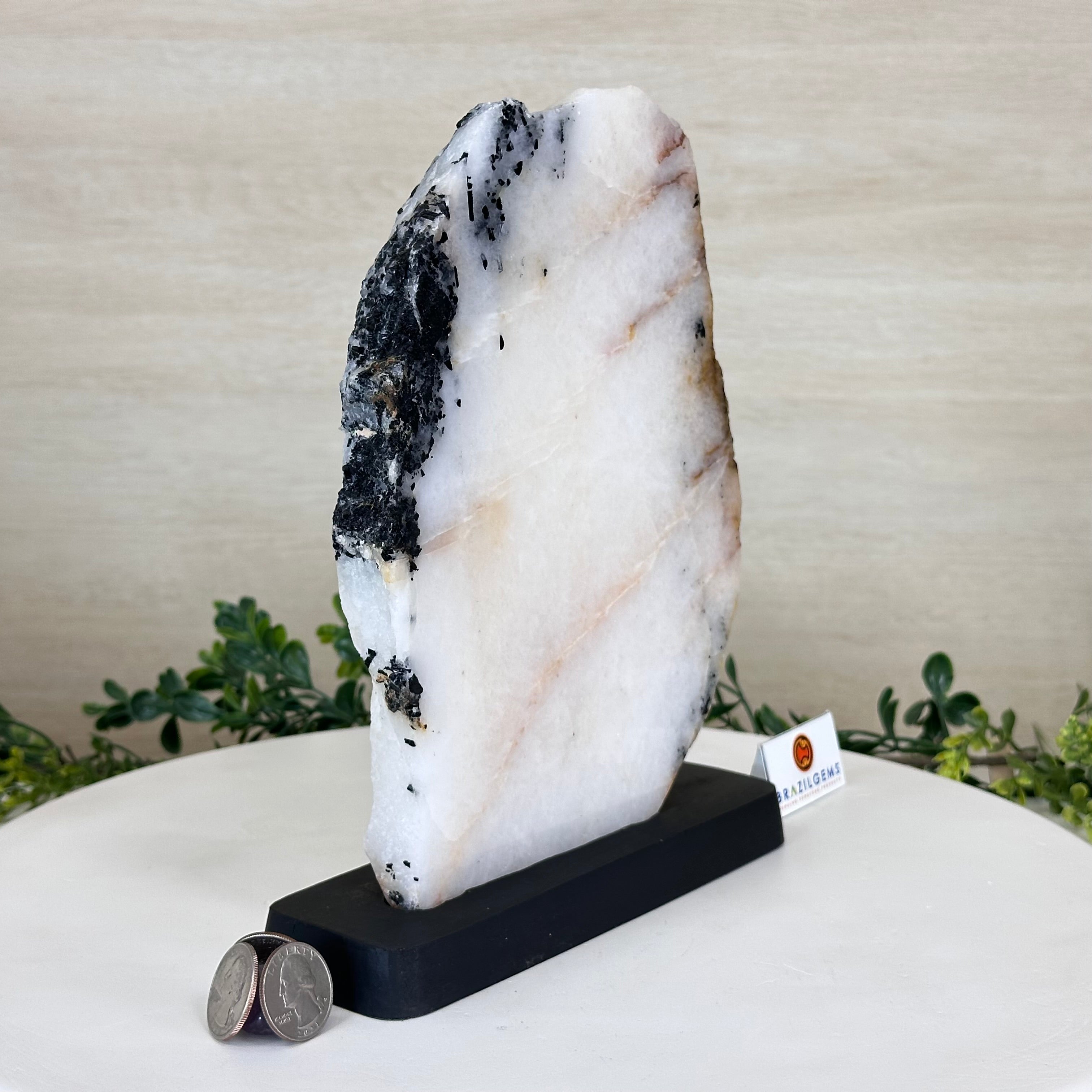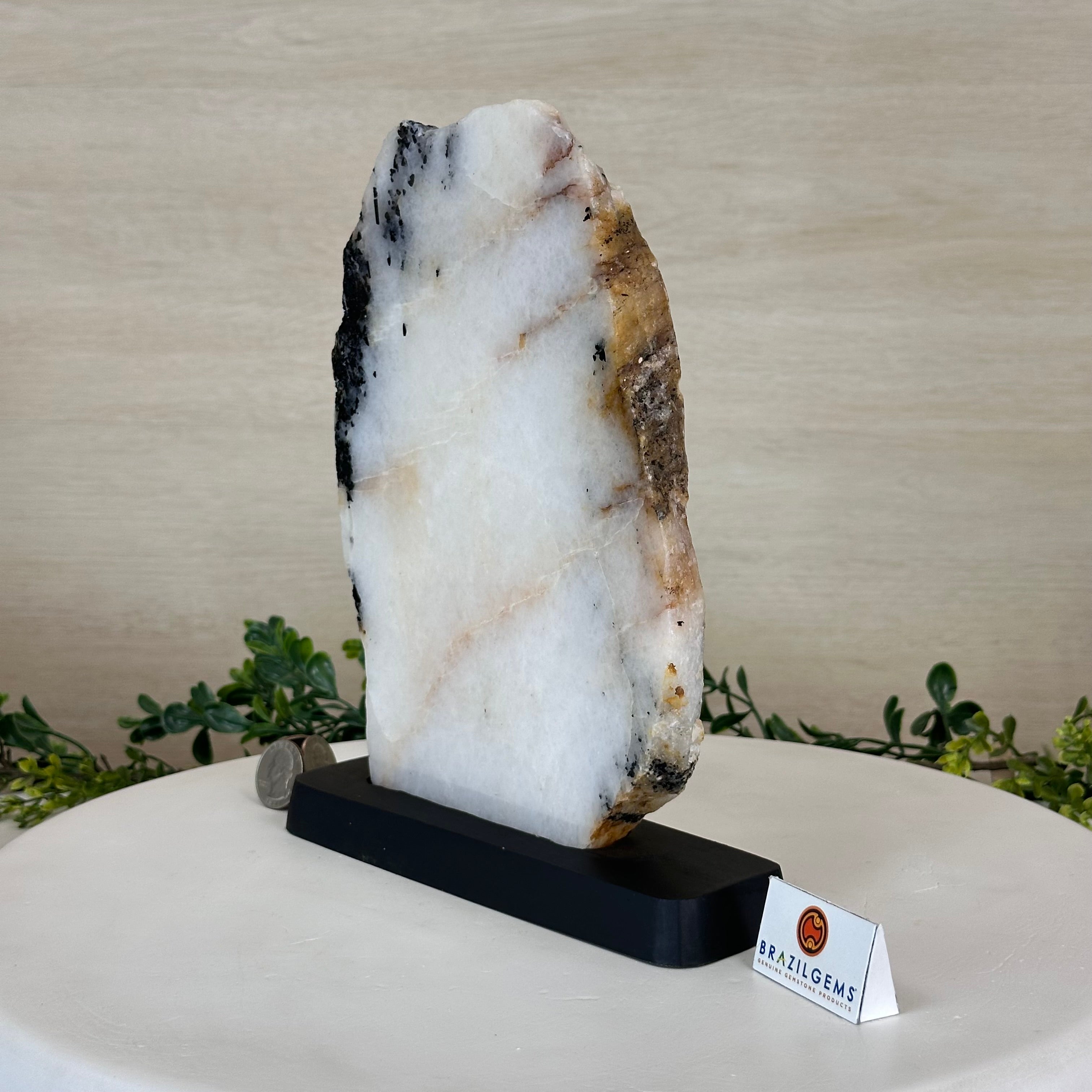 Tourmalinated Quartz Polished Slice on a Wood Base 9" Tall #6100TQ-003