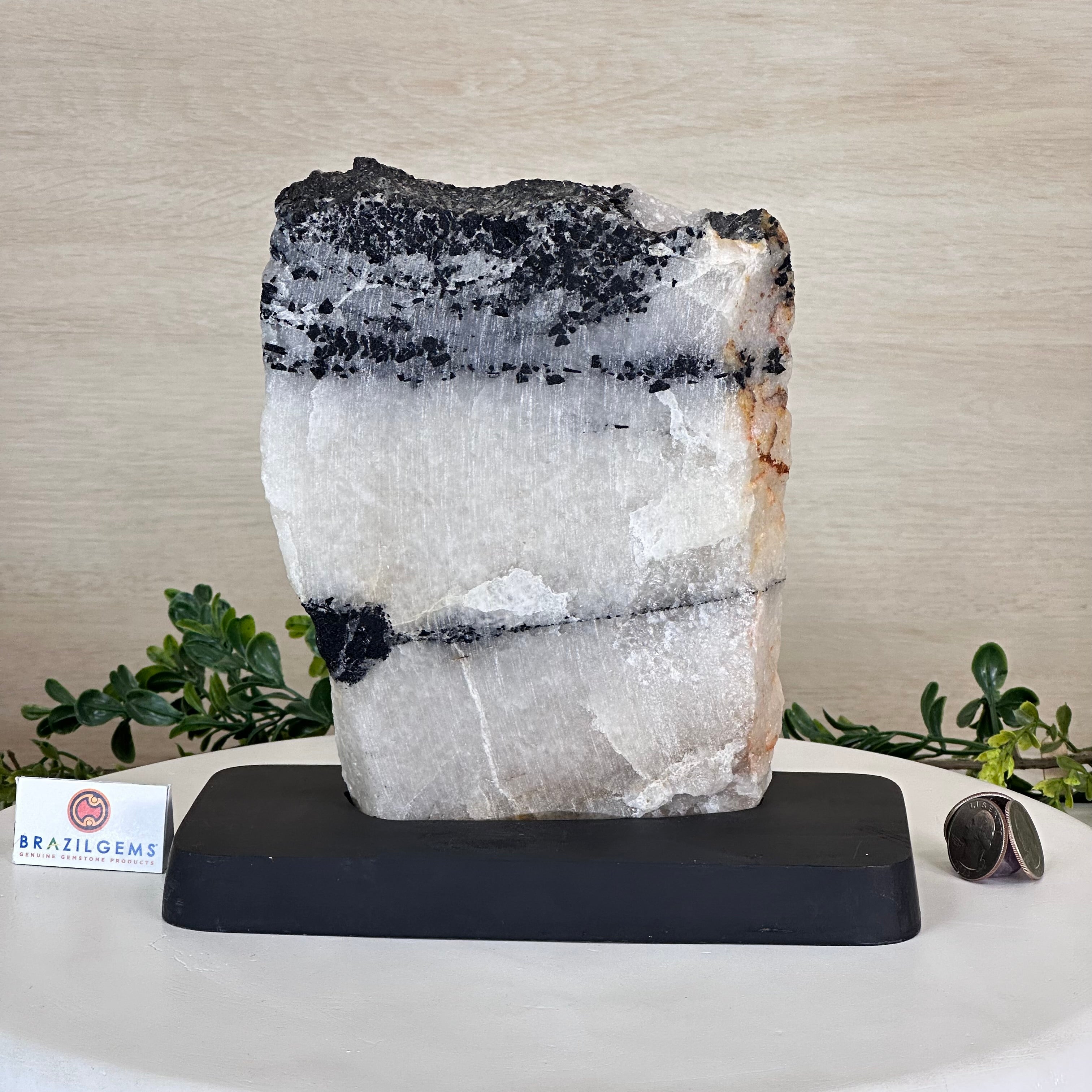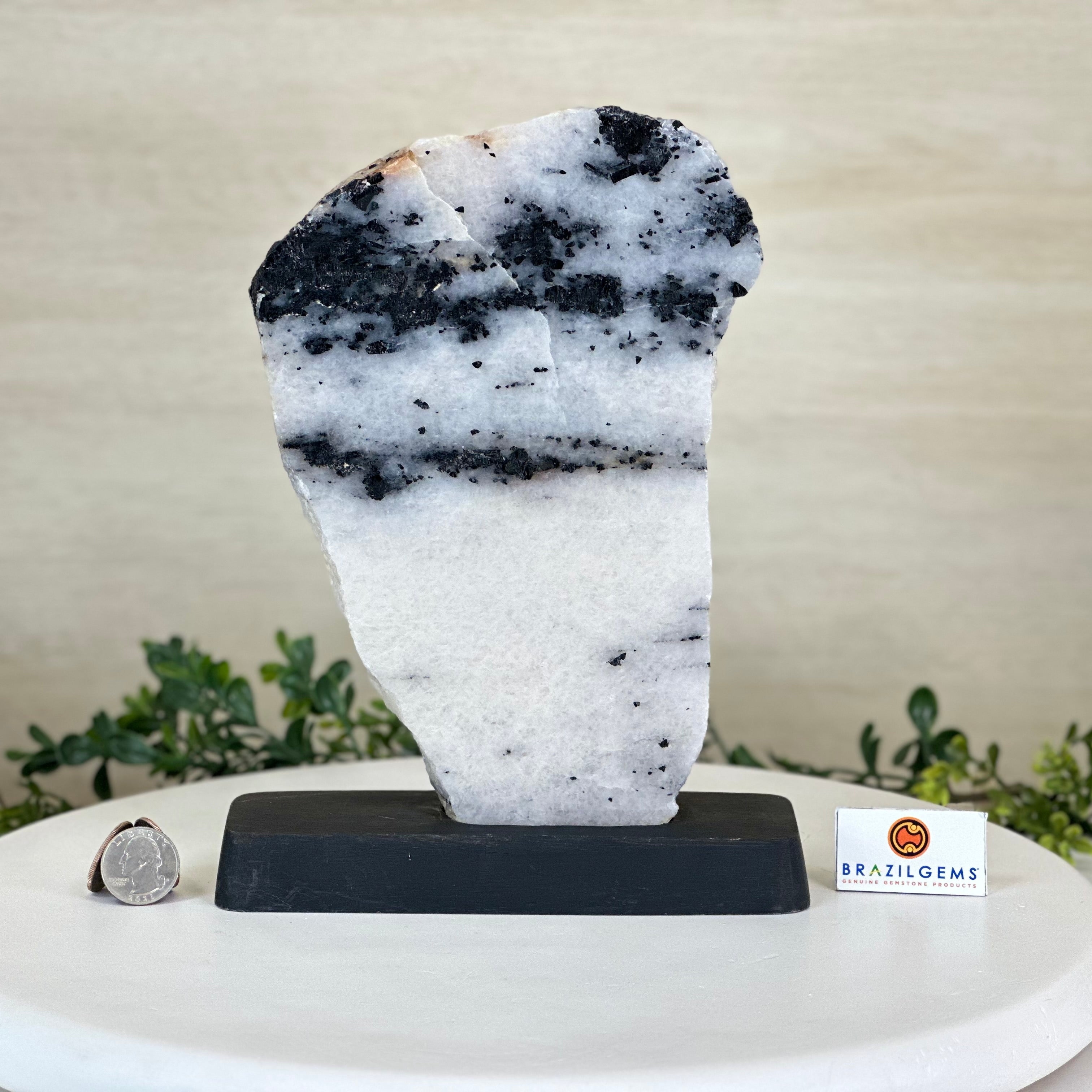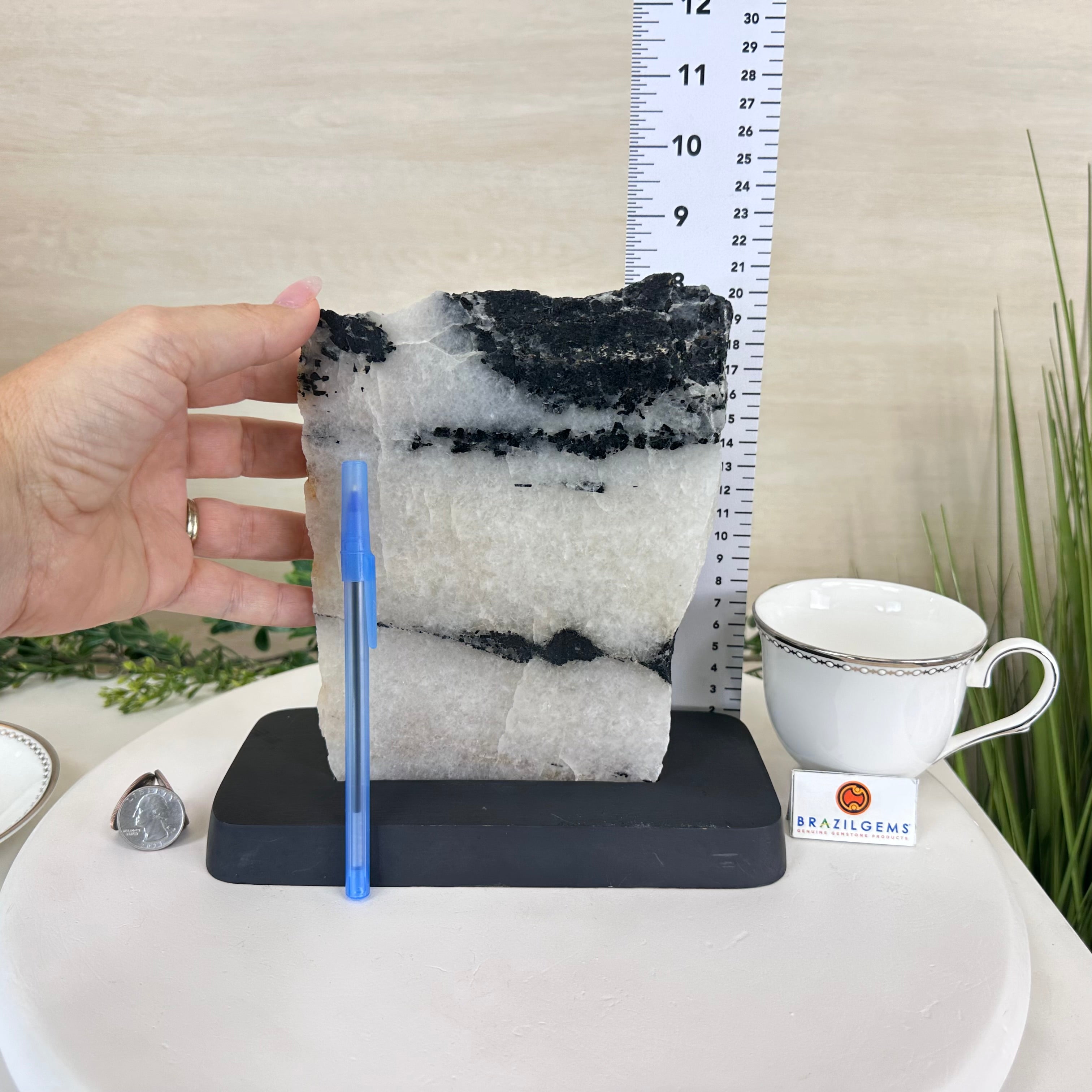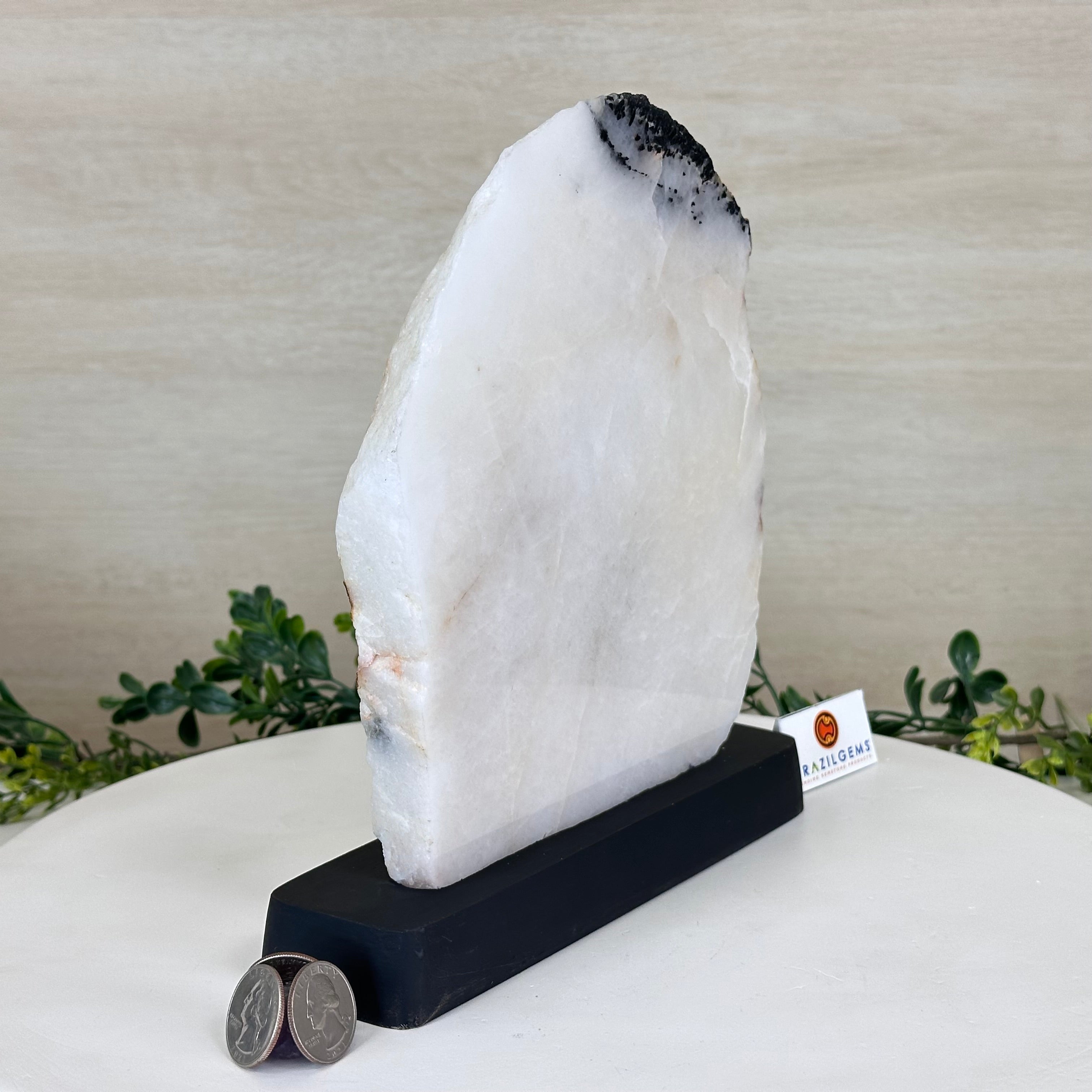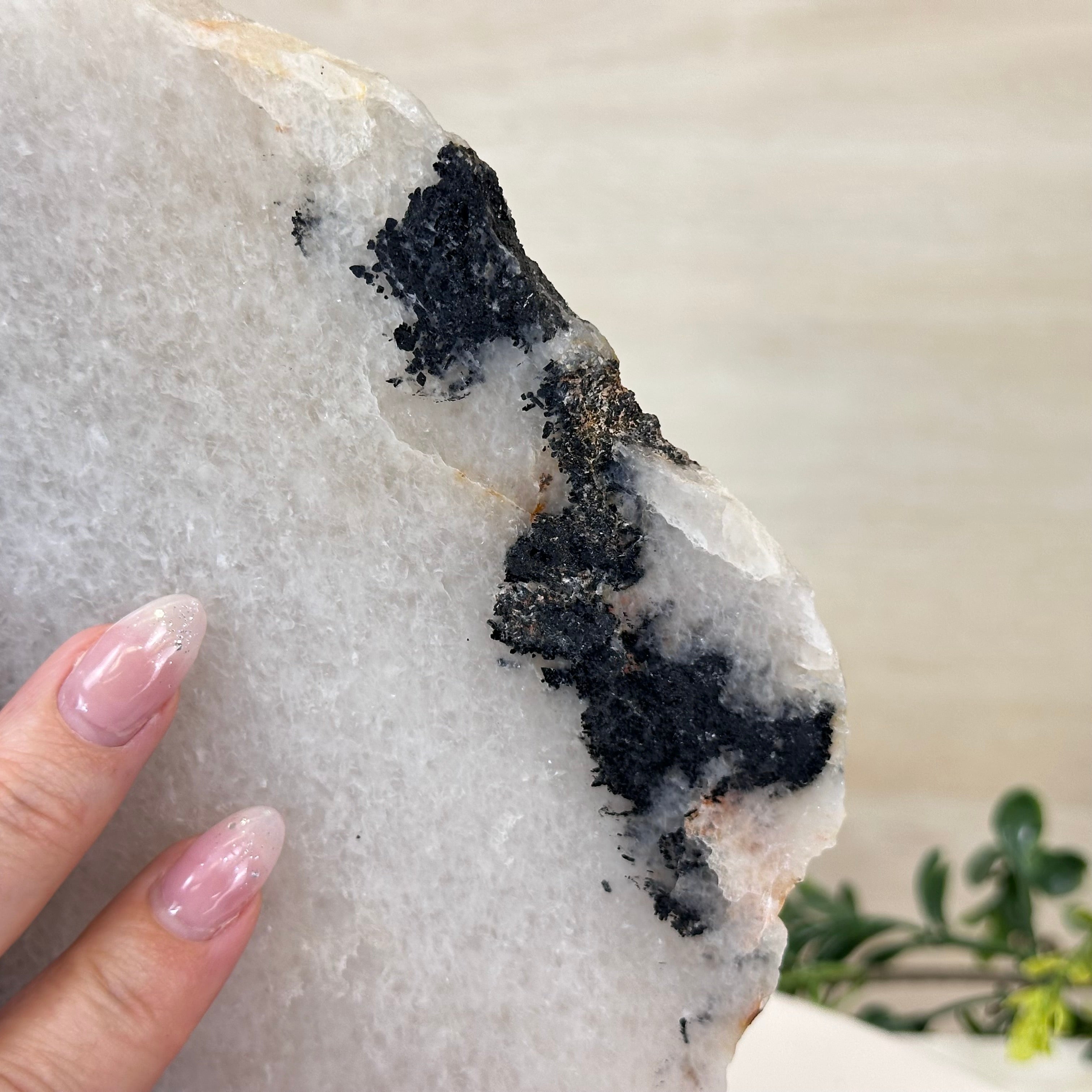 Tourmalinated Quartz Polished Slice on a Wood Base 9" Tall #6100TQ-003