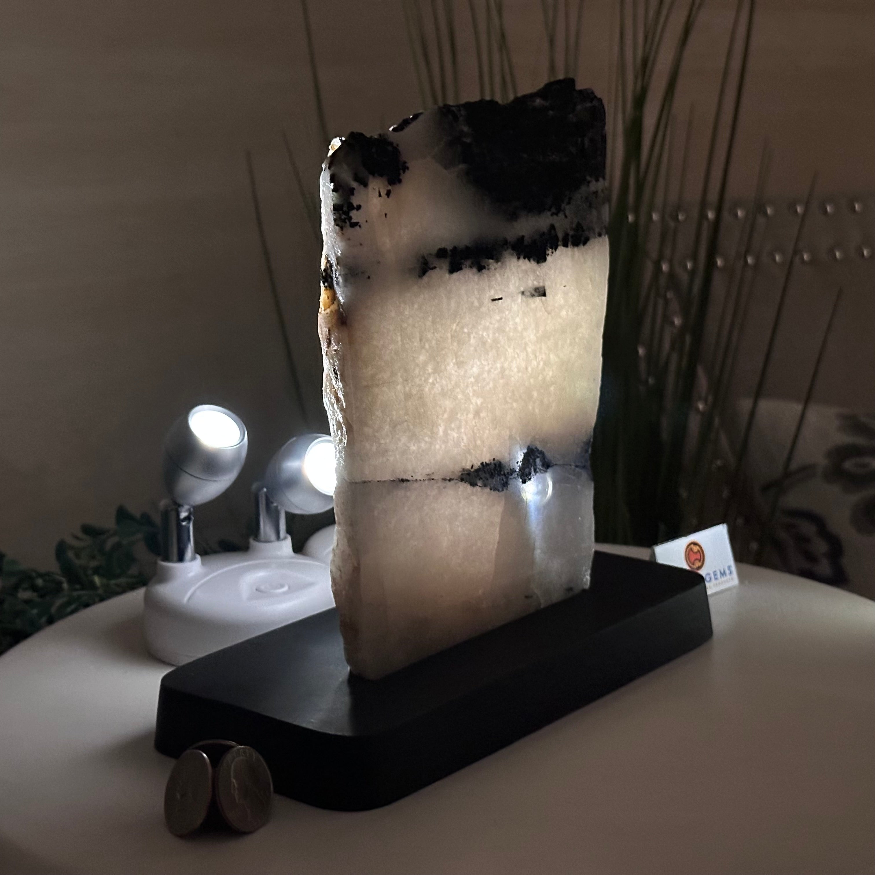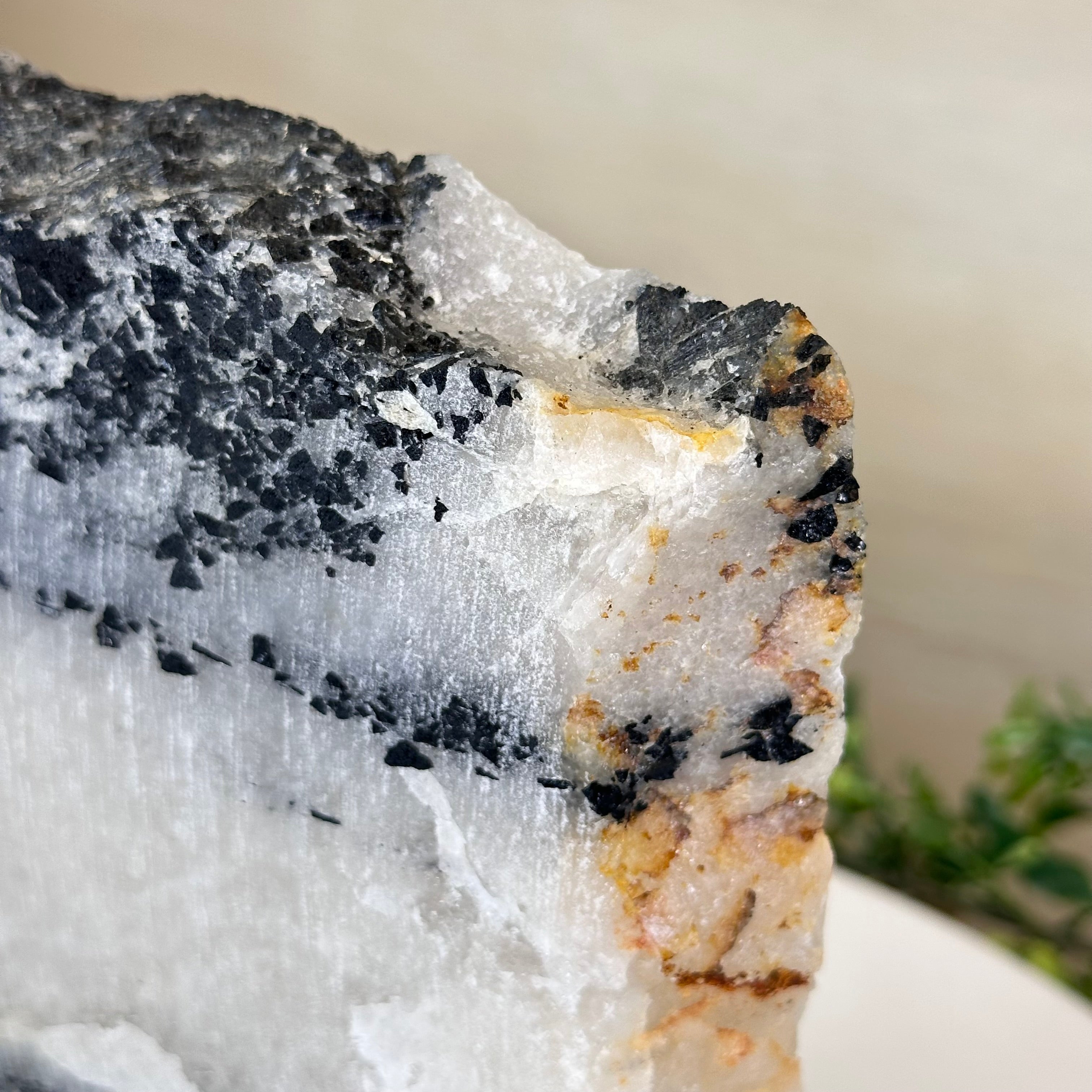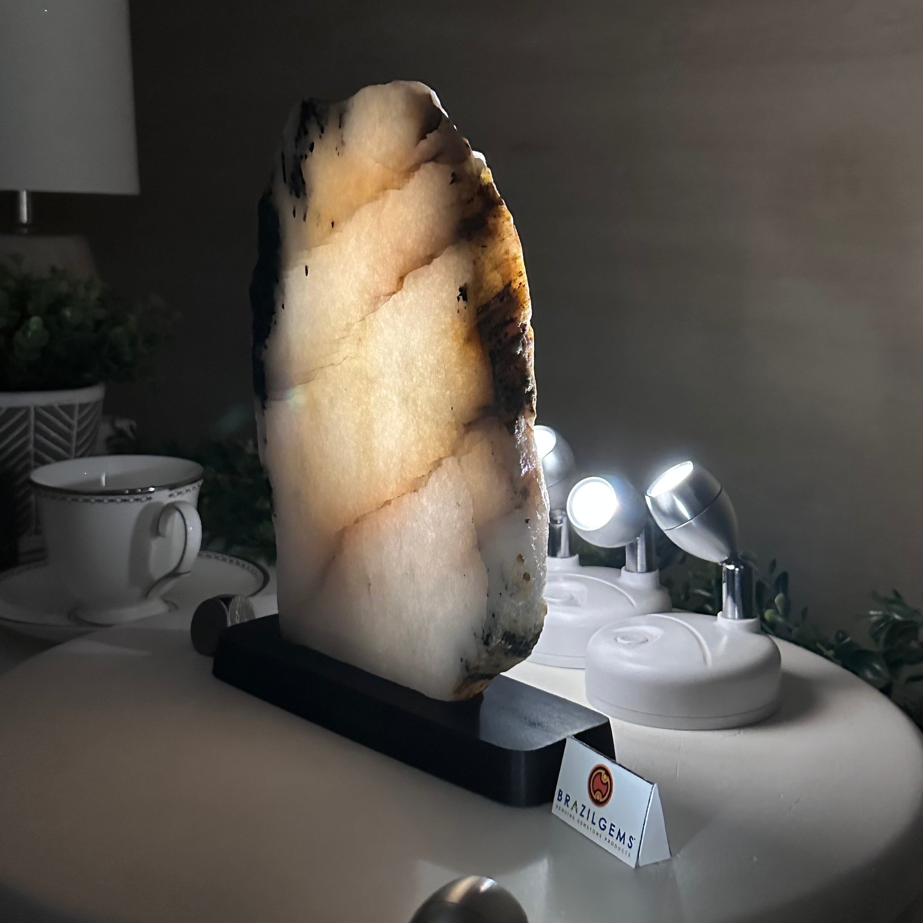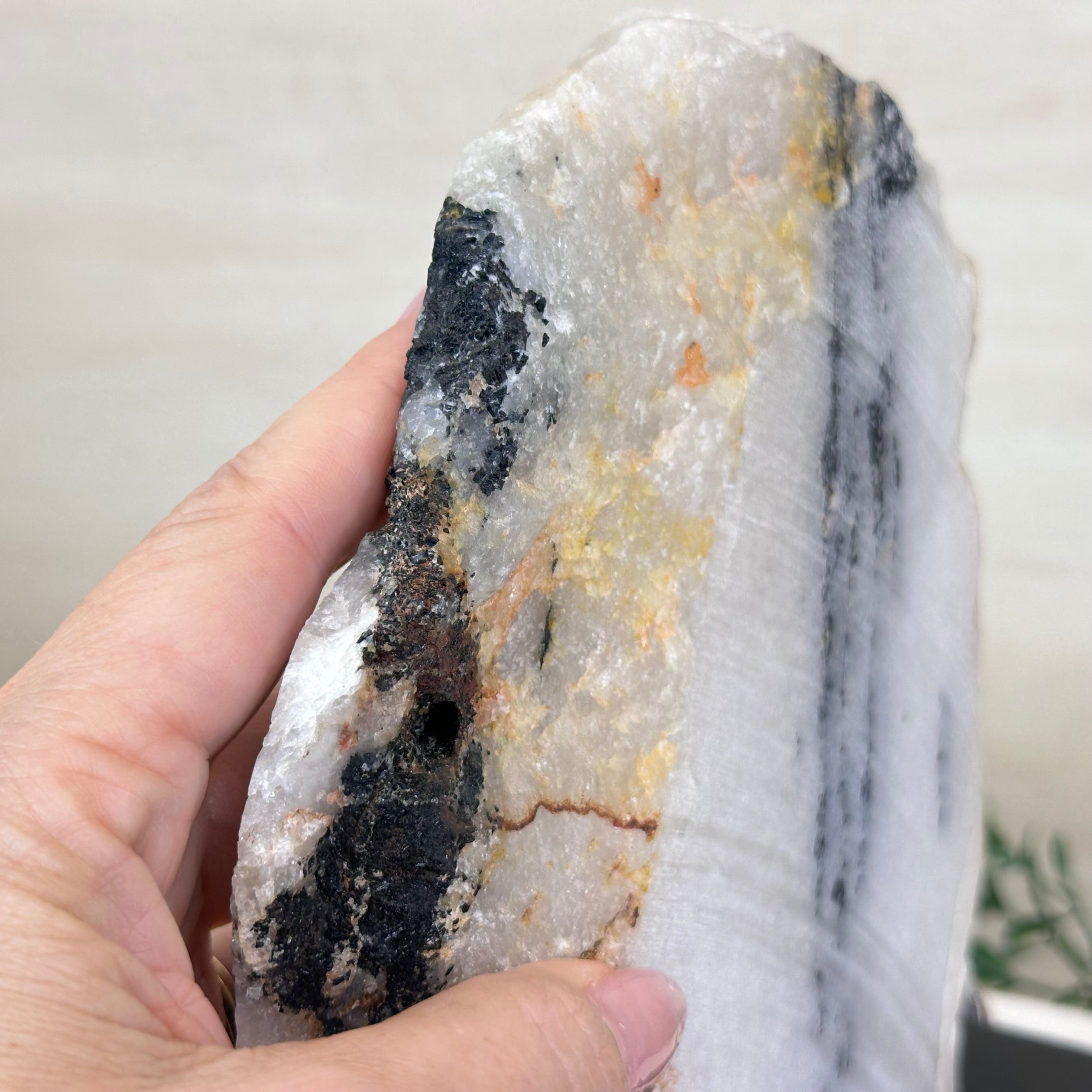 Tourmalinated Quartz Polished Slice on a Wood Base 9" Tall #6100TQ-003