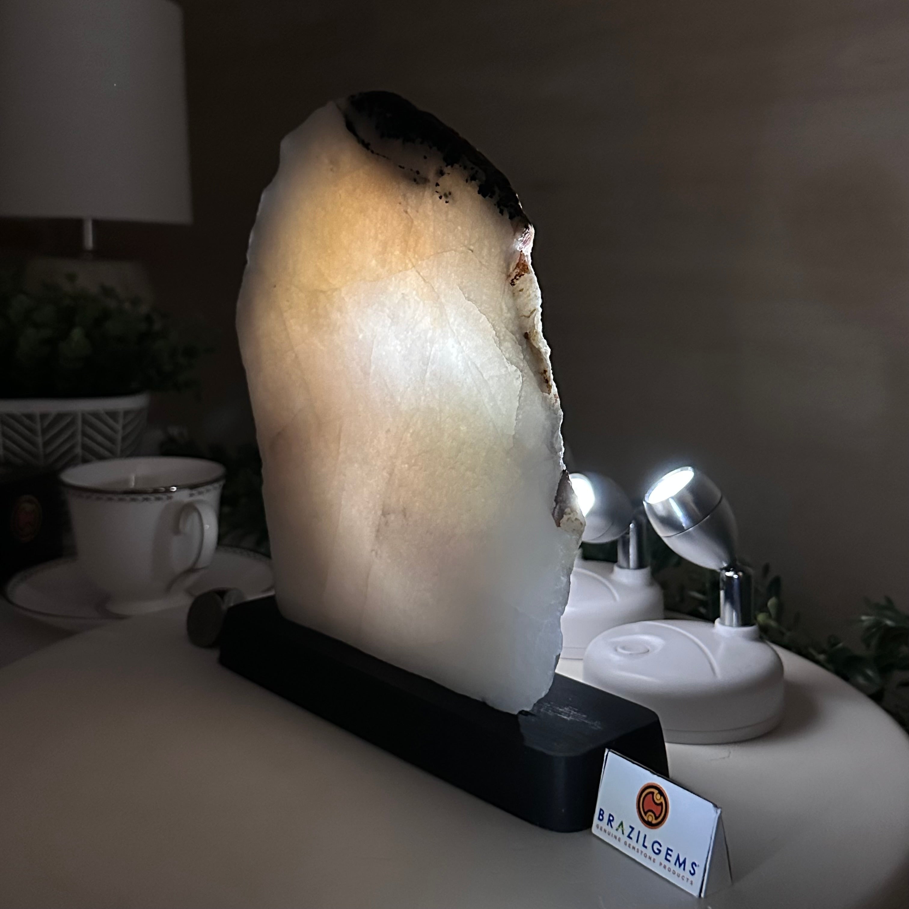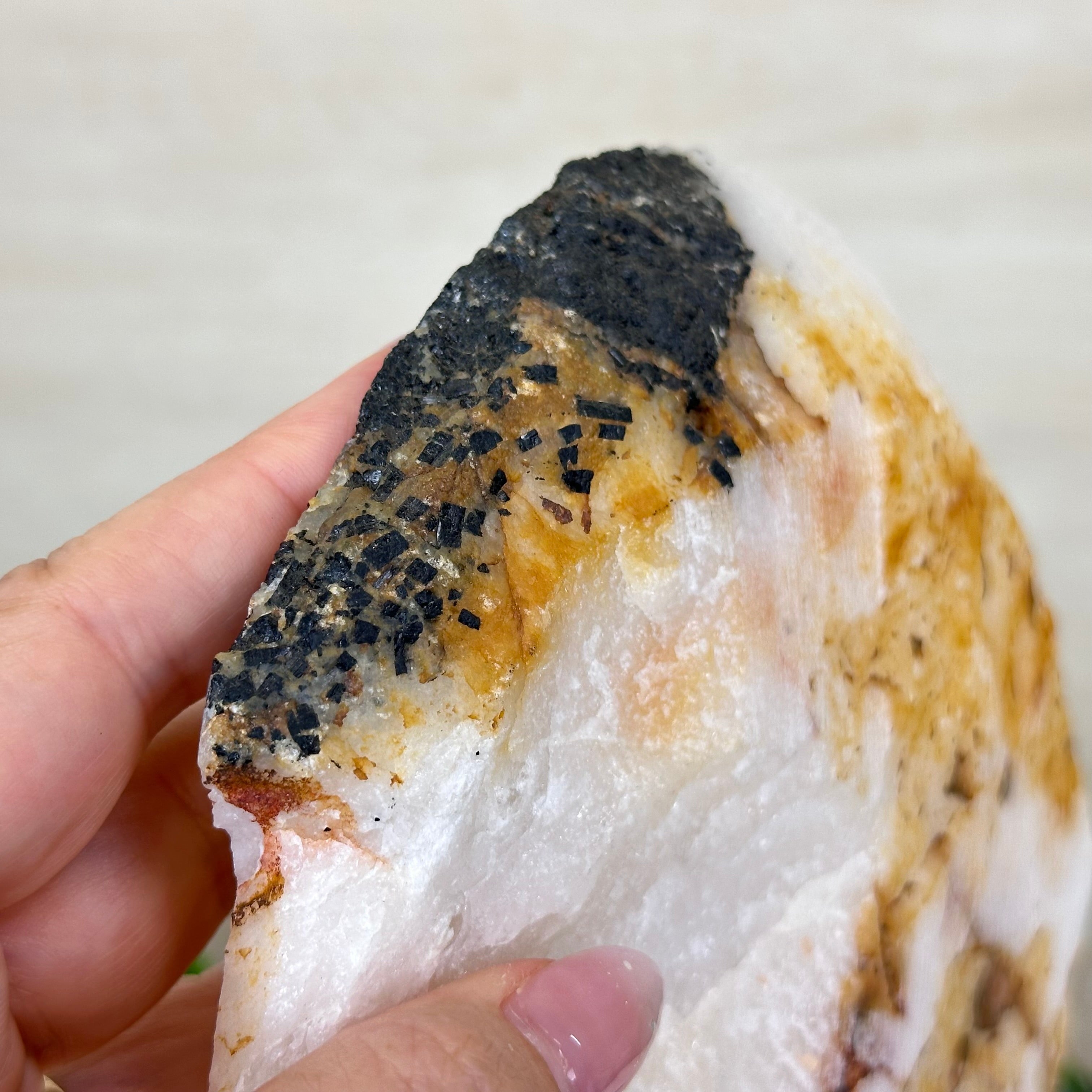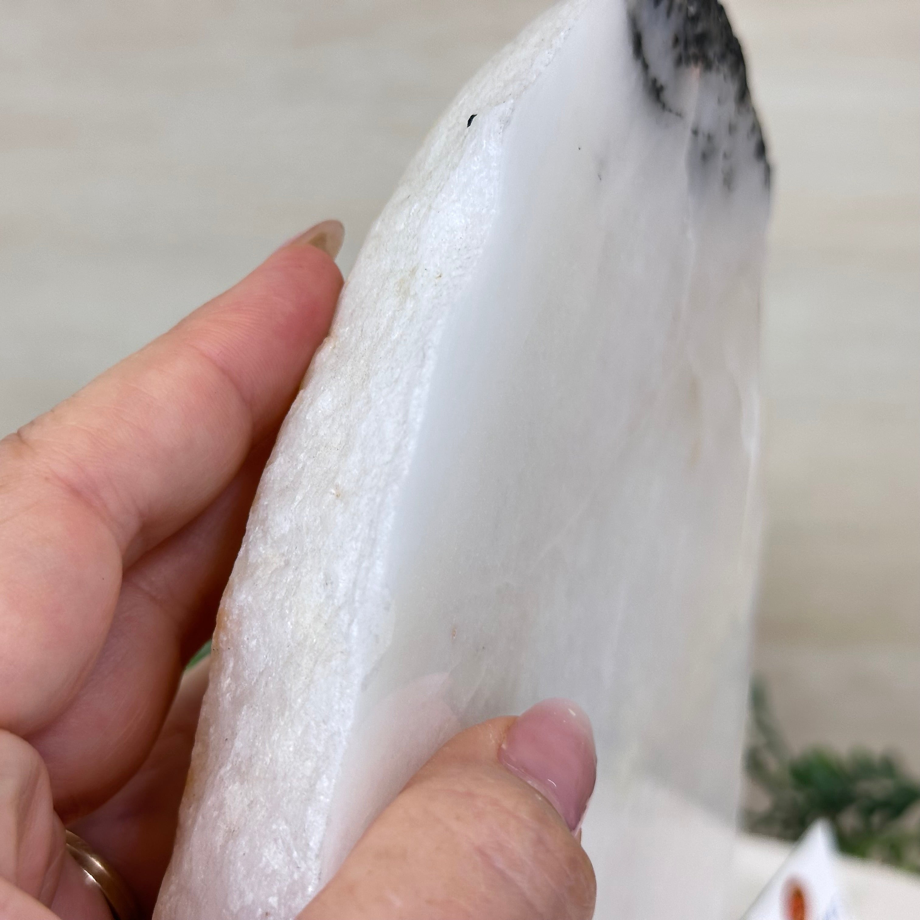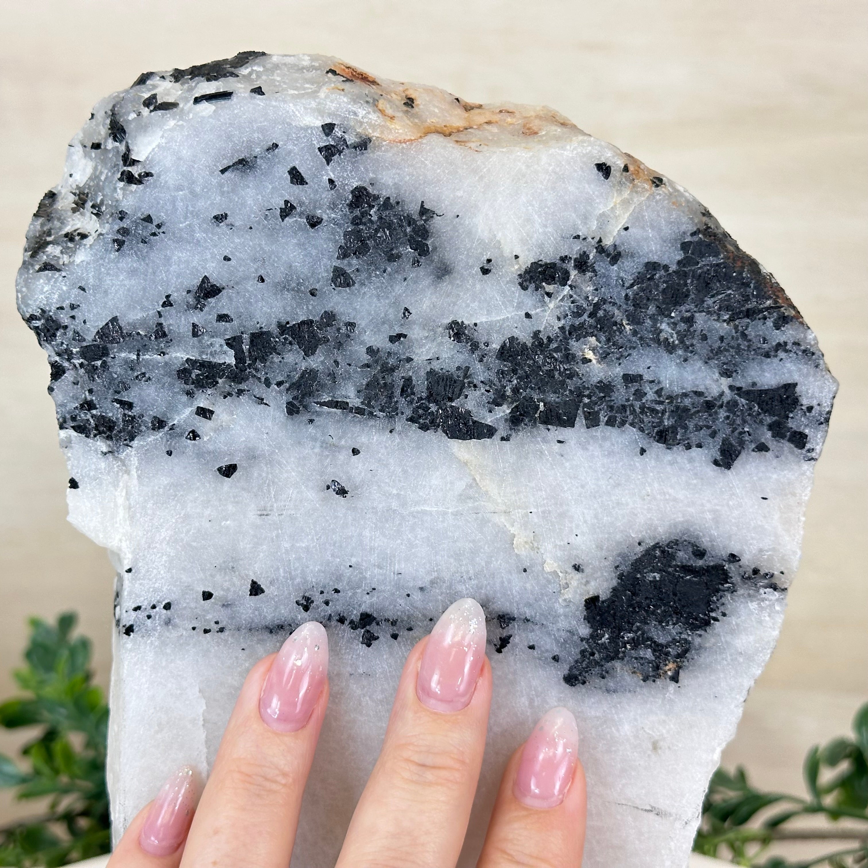 Tourmalinated Quartz Polished Slice on a Wood Base 9" Tall #6100TQ-003