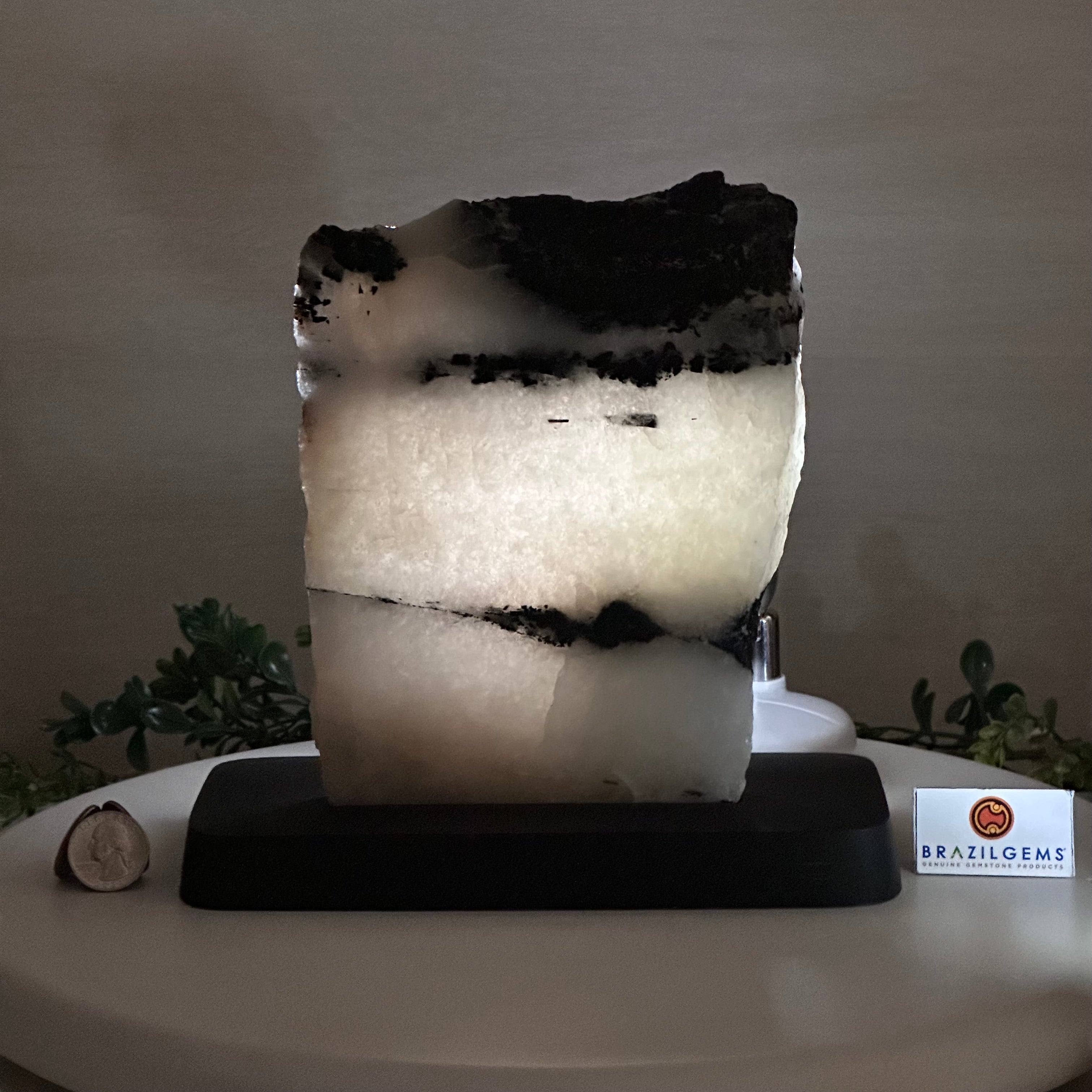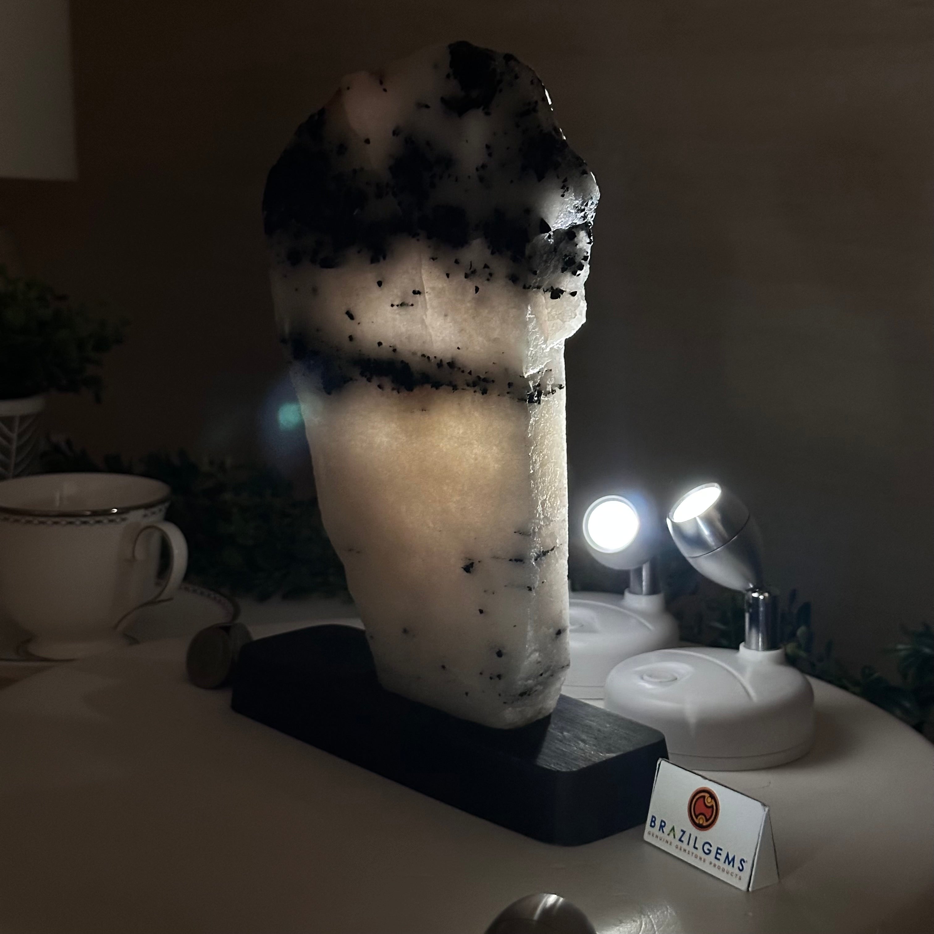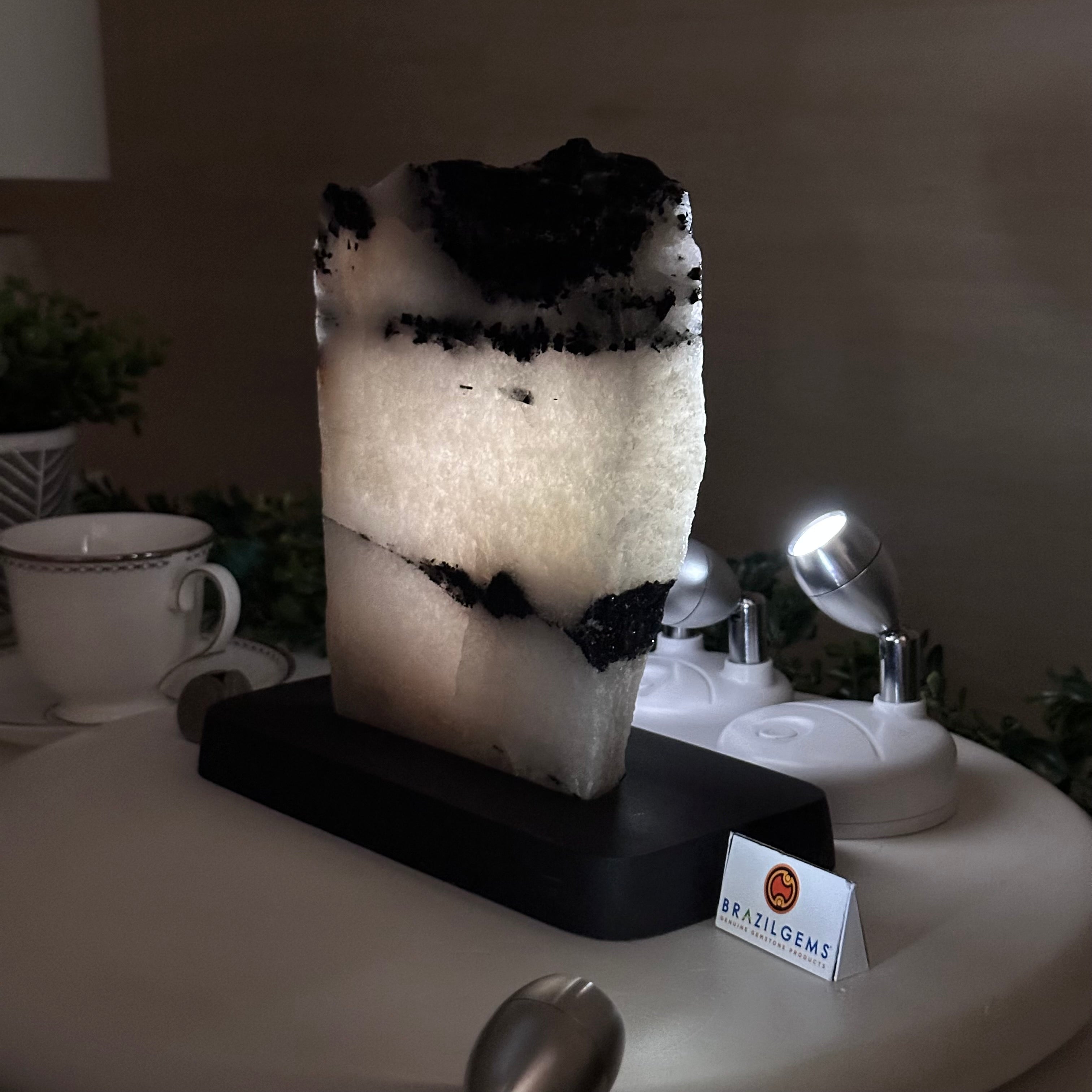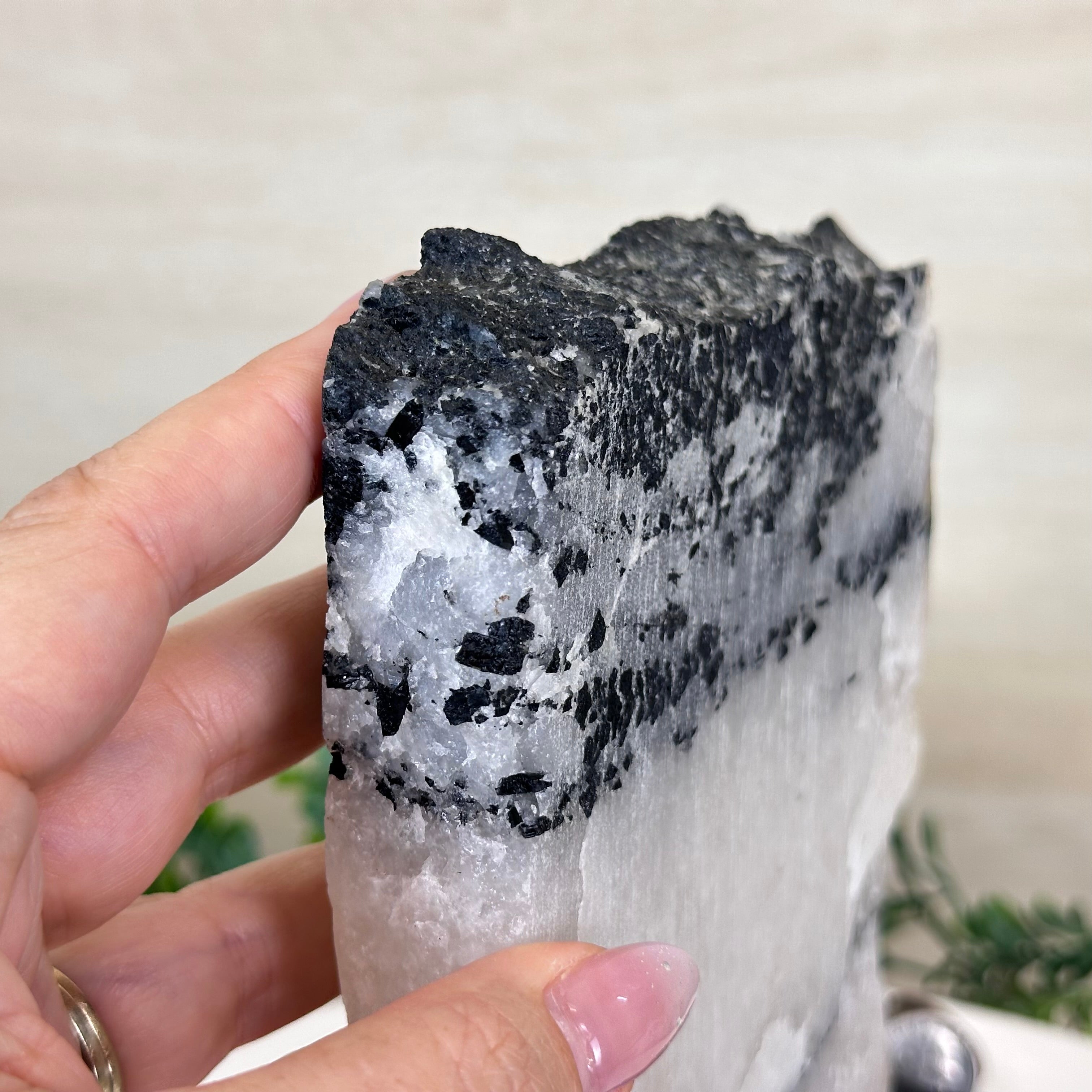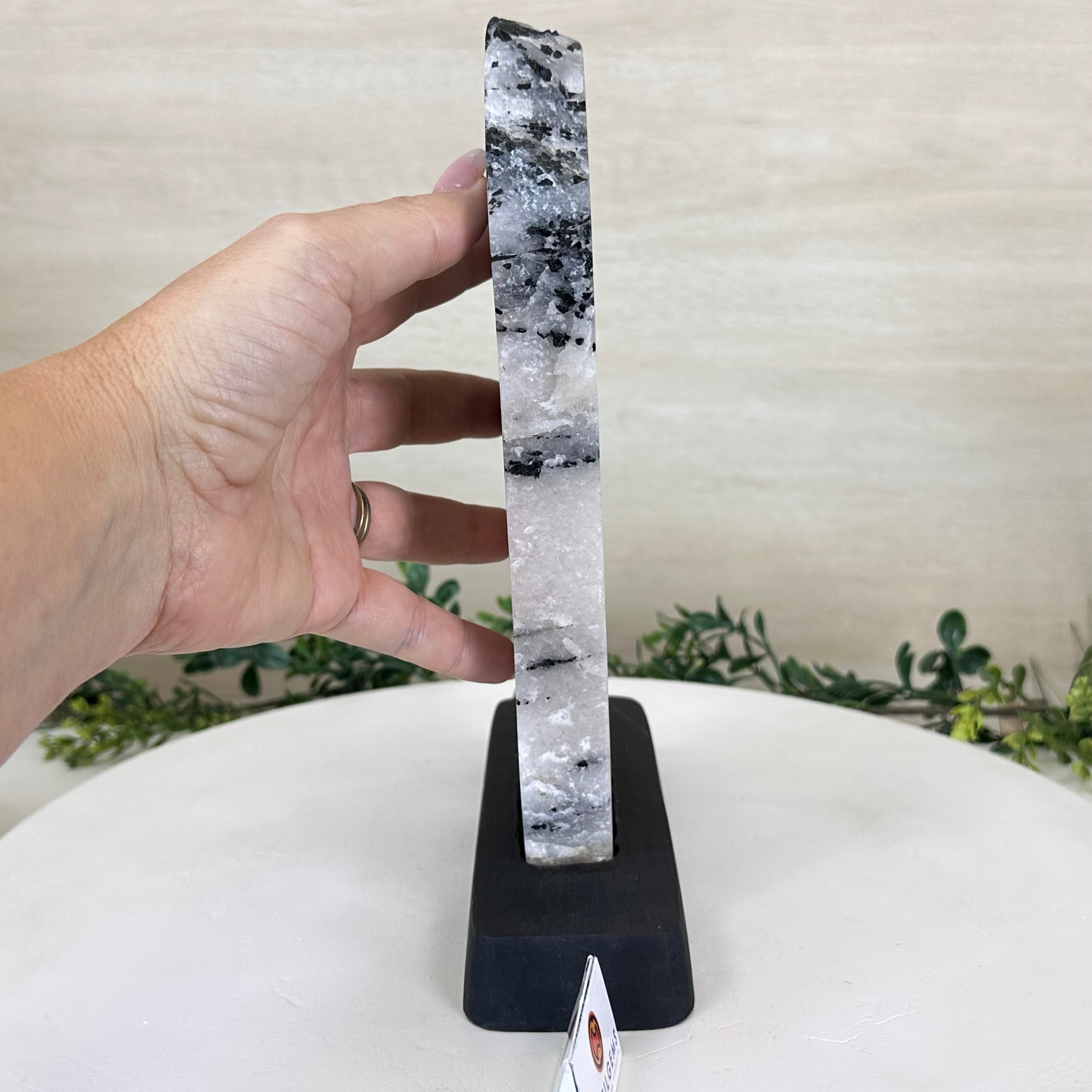 Tourmalinated Quartz Polished Slice on a Wood Base 9.7" Tall #6100TQ-001